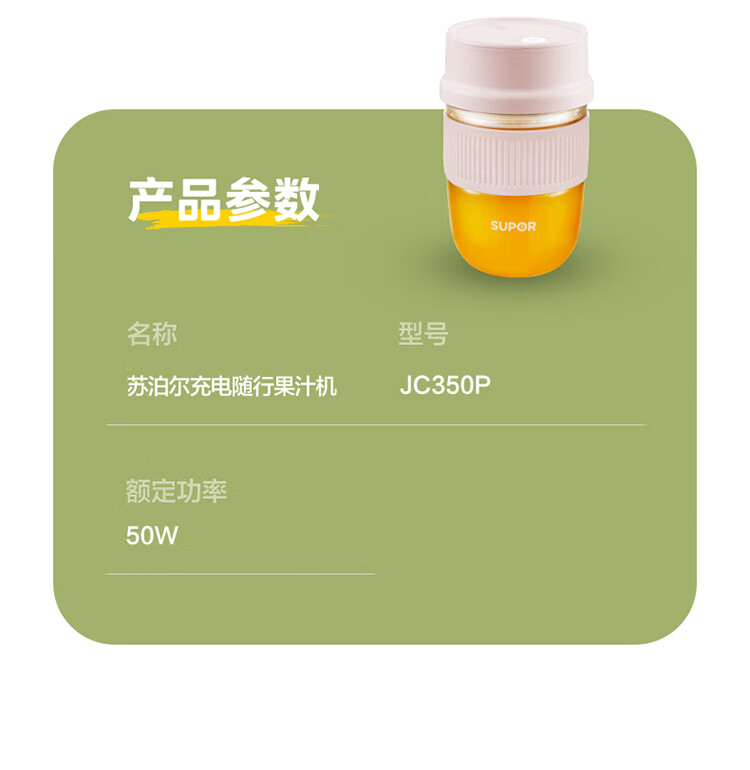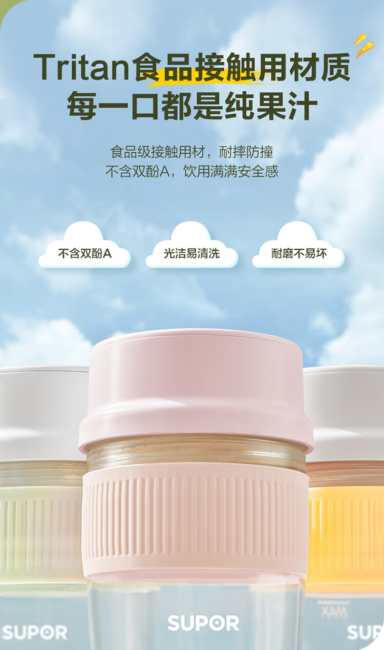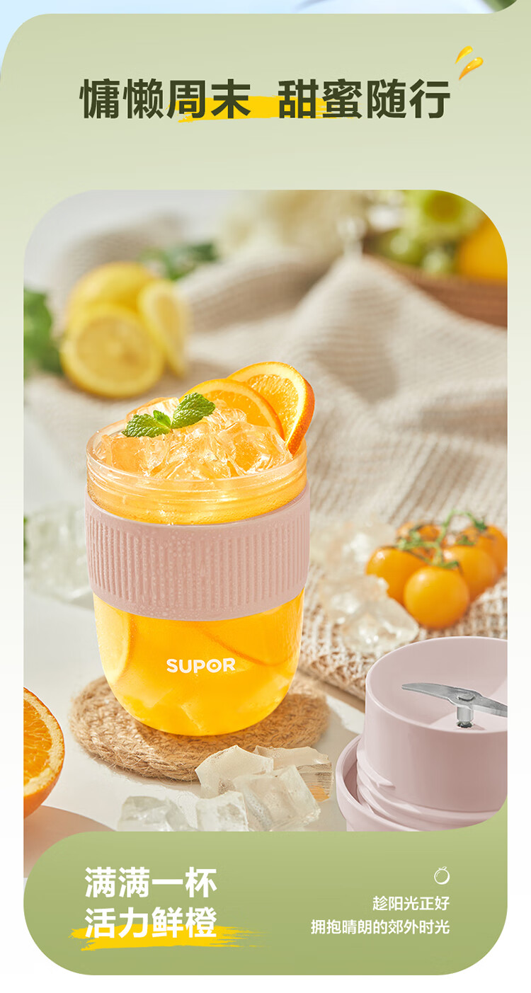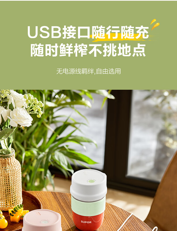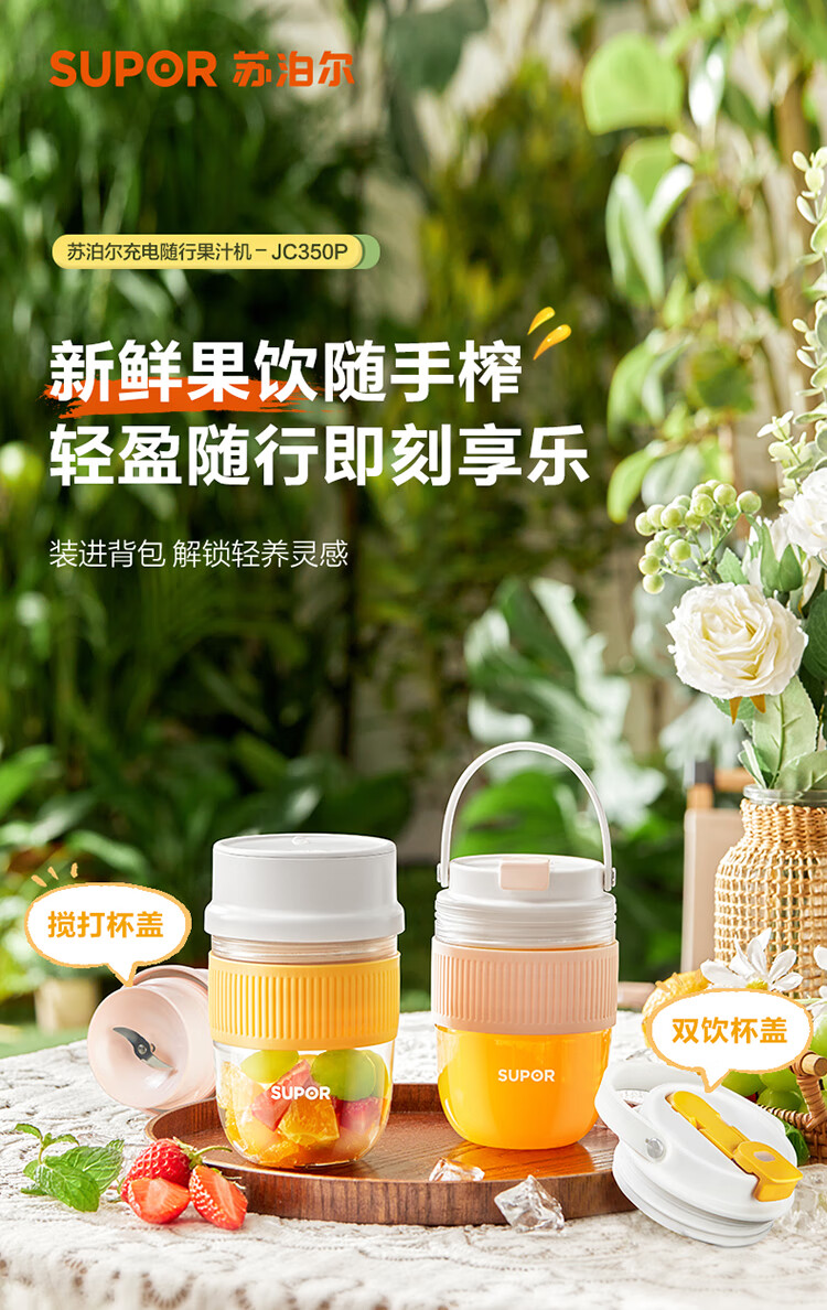 苏泊尔(SUPOR)榨汁机随行杯 便携式充电果汁机 JC350 黄 直饮450毫升/榨汁260毫升