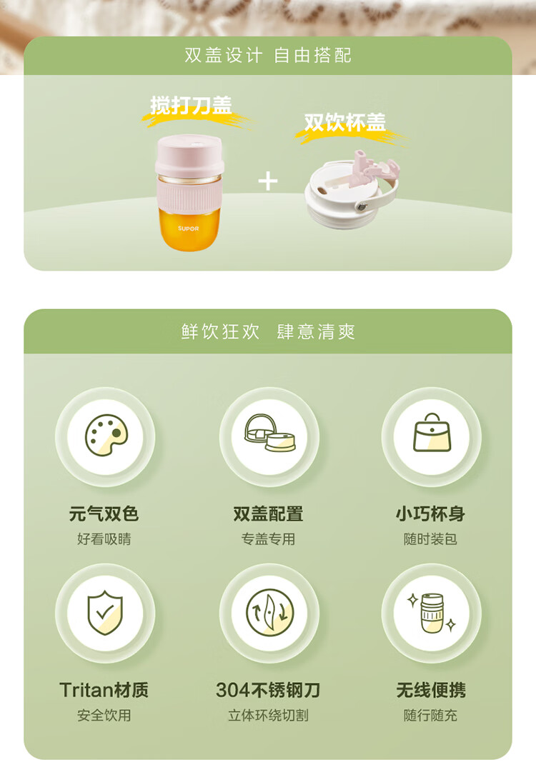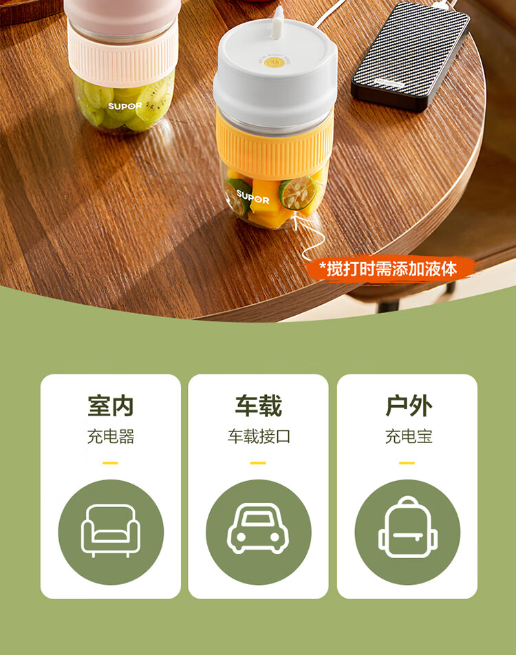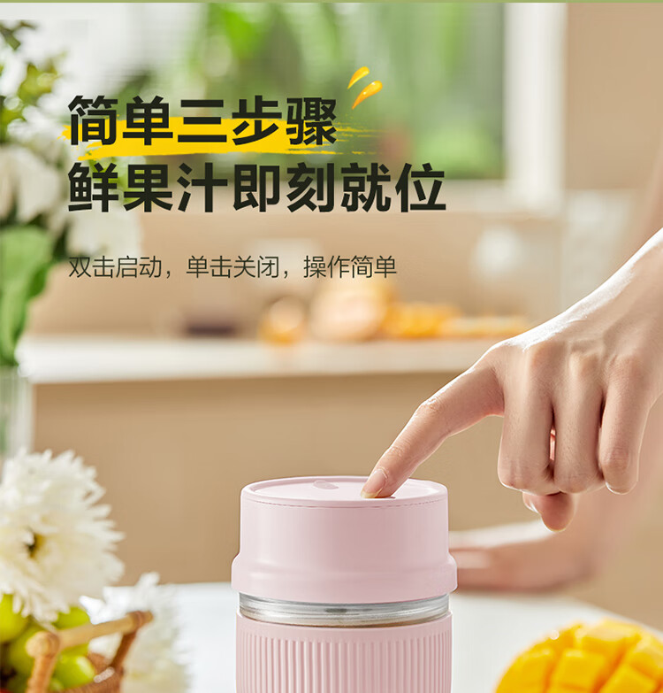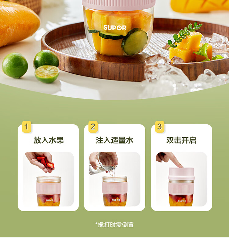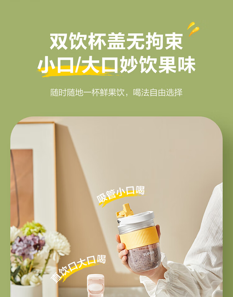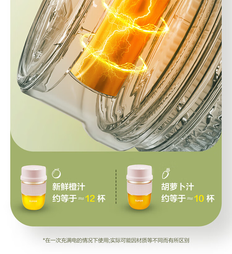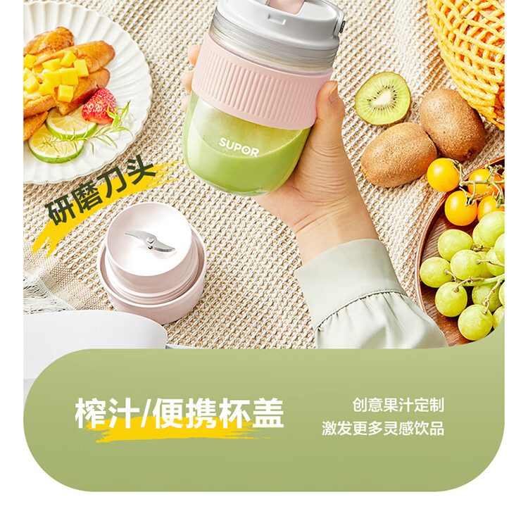 苏泊尔(SUPOR)榨汁机随行杯 便携式充电果汁机 JC350 黄 直饮450毫升/榨汁260毫升