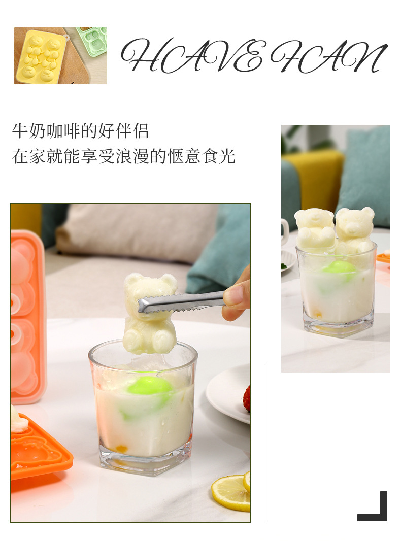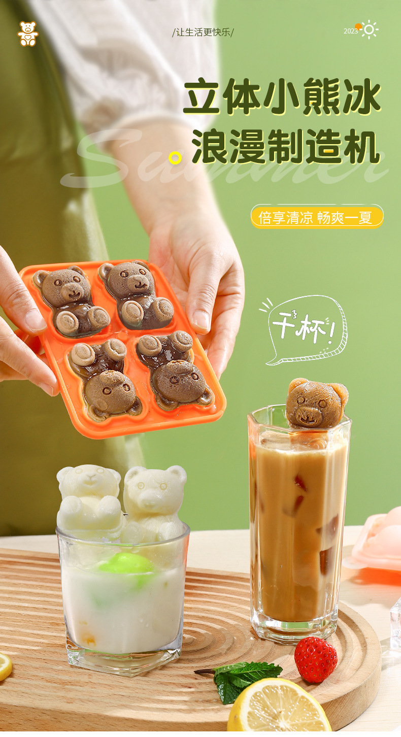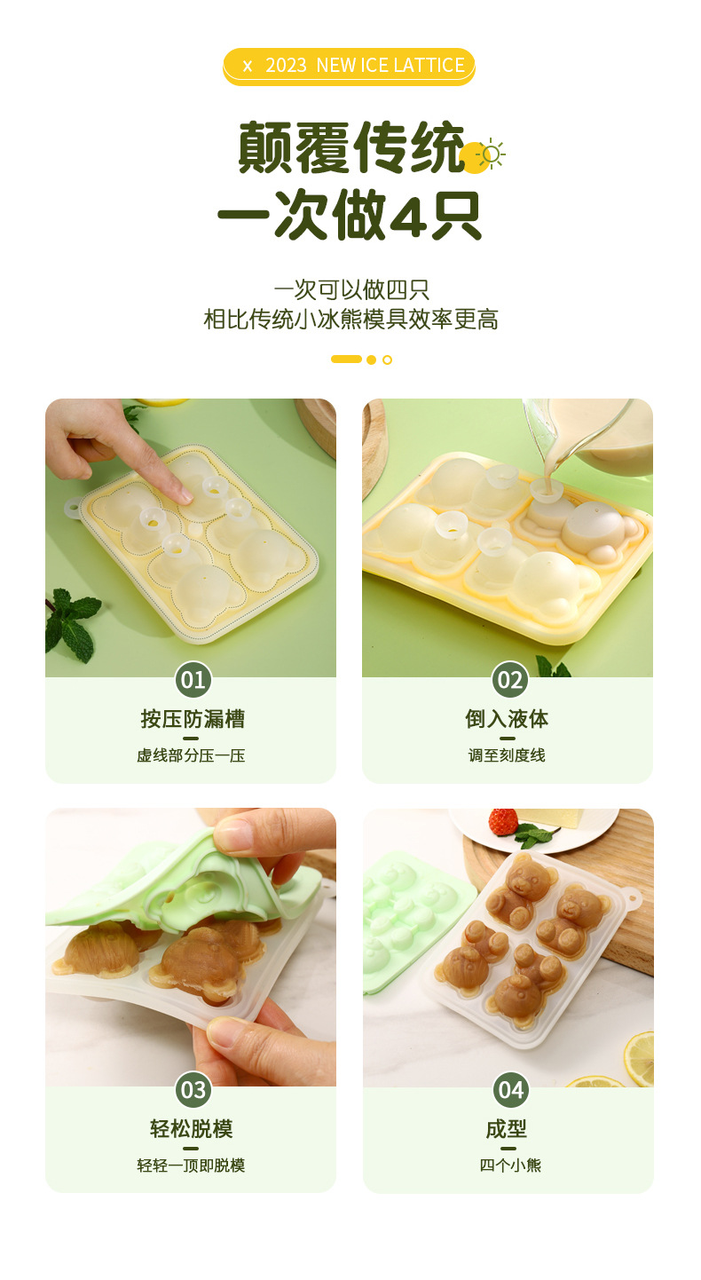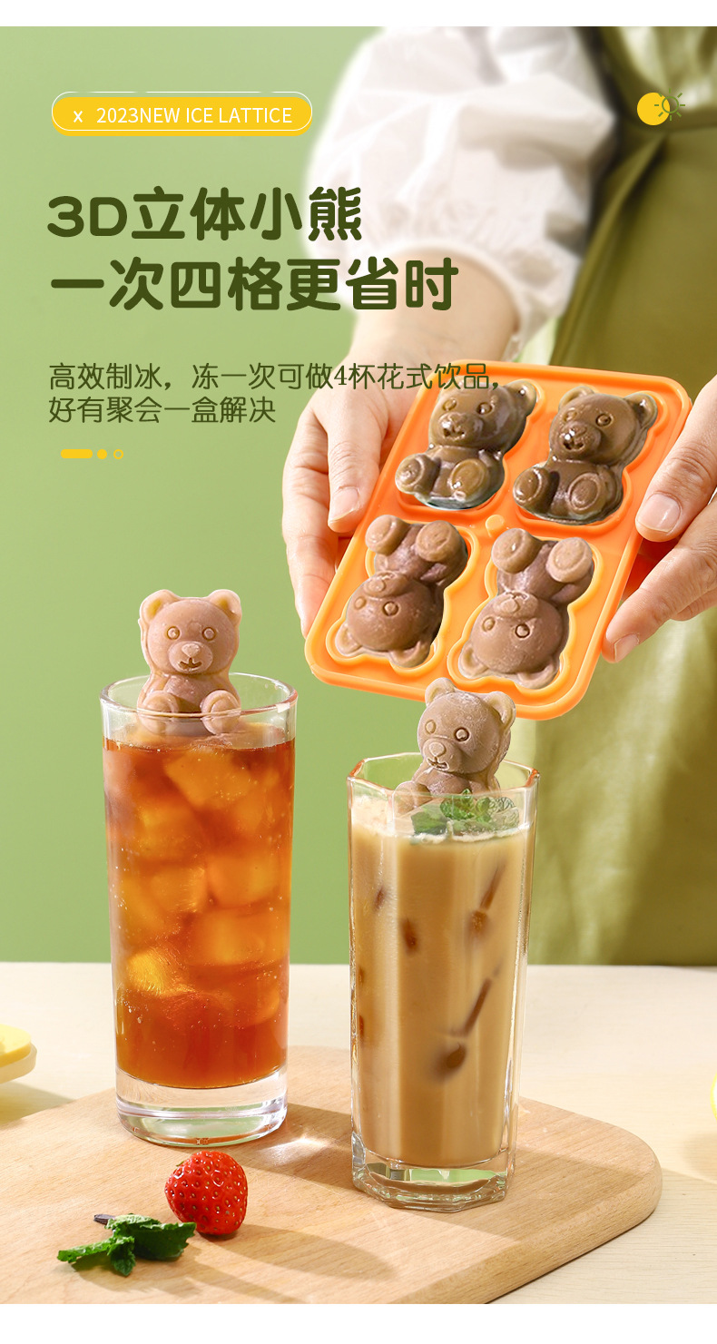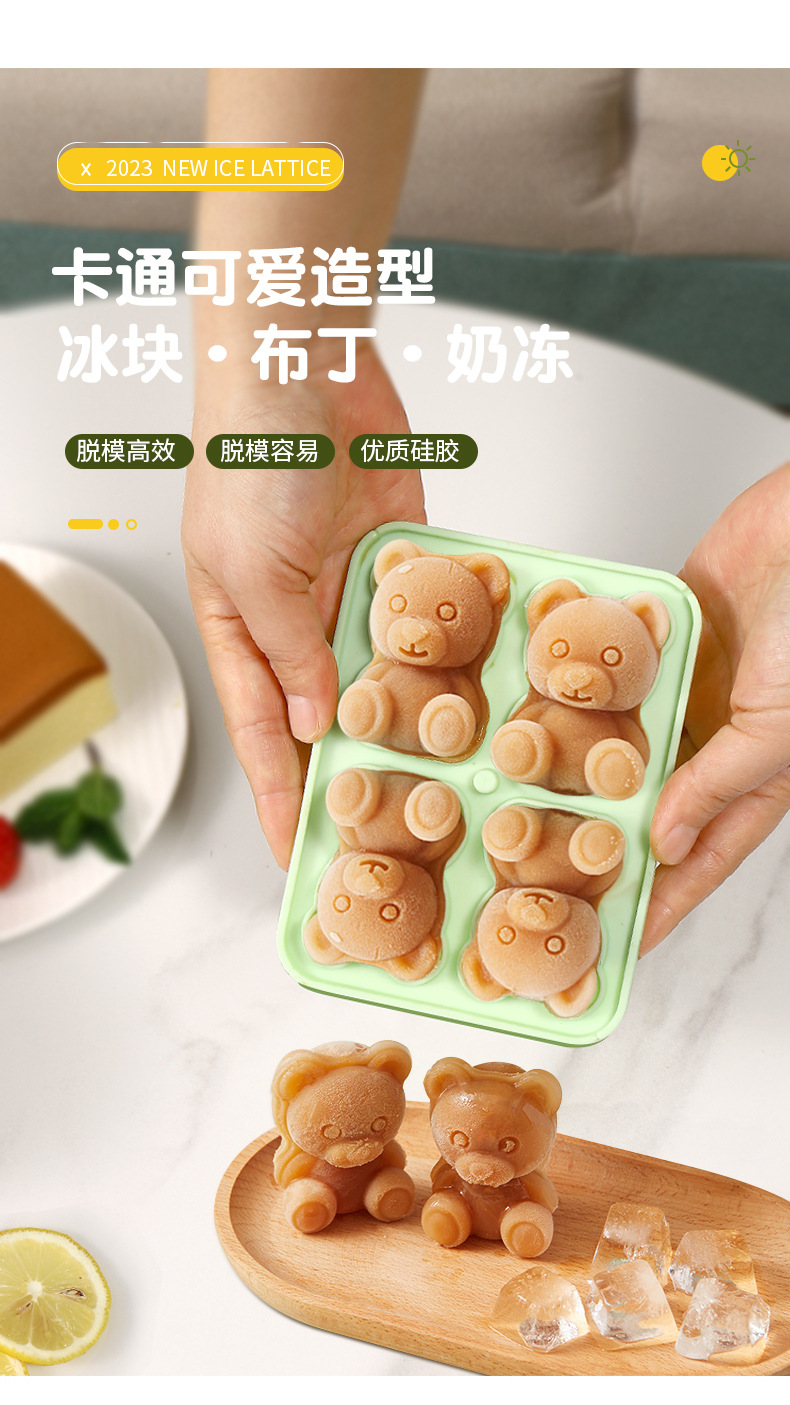 【立体小熊冰 织造浪漫❗️新品四连小熊冰块模具硅胶冰格家用】卡通小熊、食品级硅胶、轻松脱模、方便清洗,网红雪糕冰淇淋冻冰球冰盒冰模粉丝专属