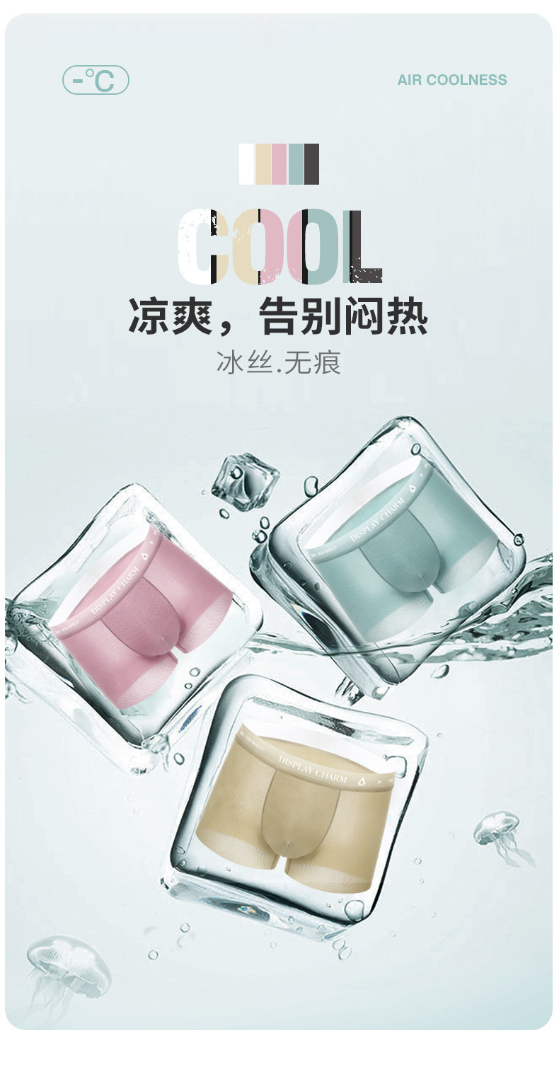 【超凉超爽!3A冰凉空气内裤】凉感冰丝,网眼透气,轻柔亲肤,冰丝男士男生无痕高弹平角裤夏季薄款透气四角裤头男