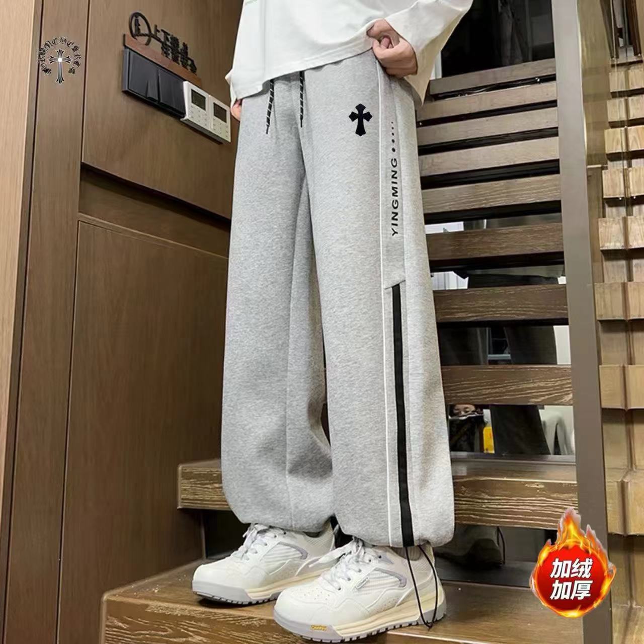 26ss新款两色高品质串标相拼加绒加厚休闲运动长裤 裤子版型宽松 细节WAN 美 全棉加绒加厚针织面料耐磨耐脏 立体裁剪宽松版型 进口机器印花反复水洗不会开裂脱落 男女同款情侣款