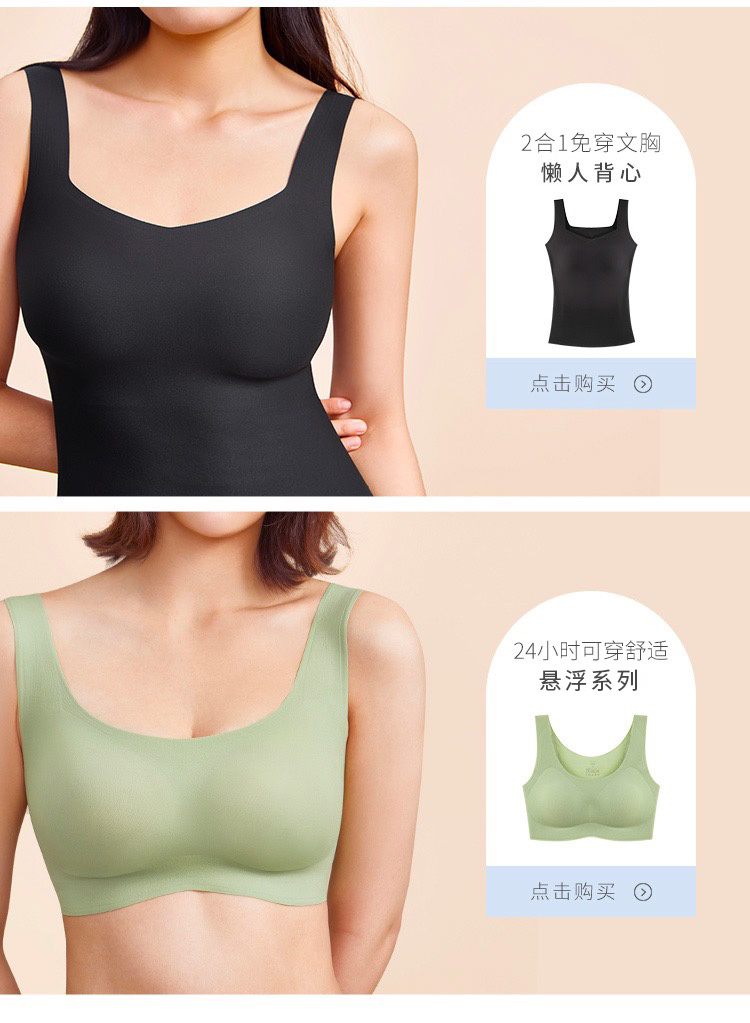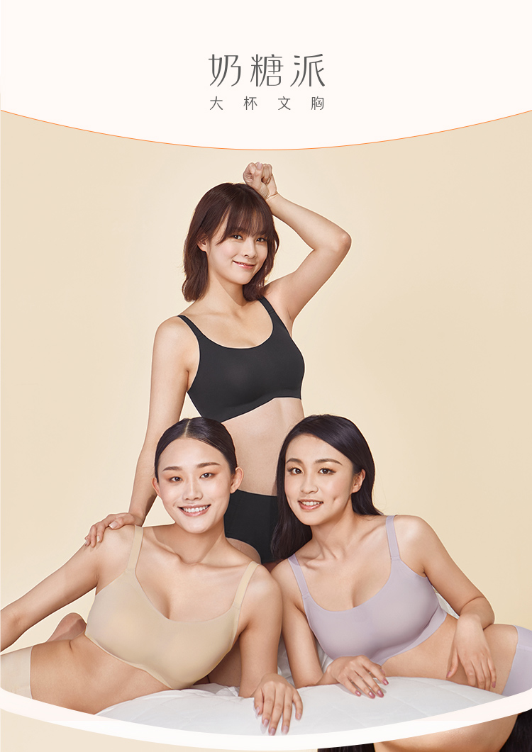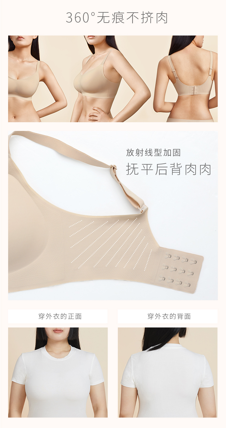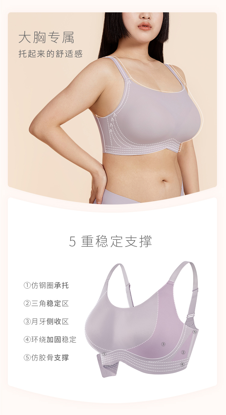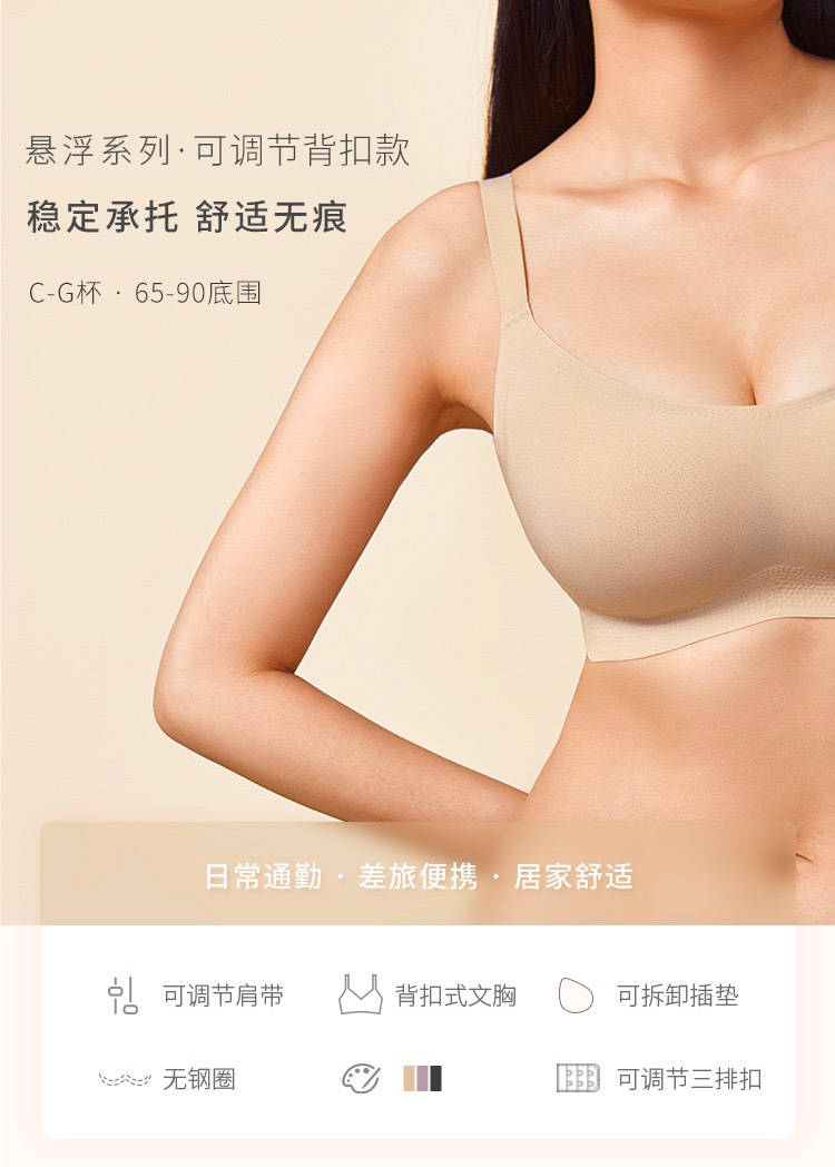 奶糖派舒适无钢圈悬浮系列可调节背扣居家大胸防下垂薄款无痕内衣