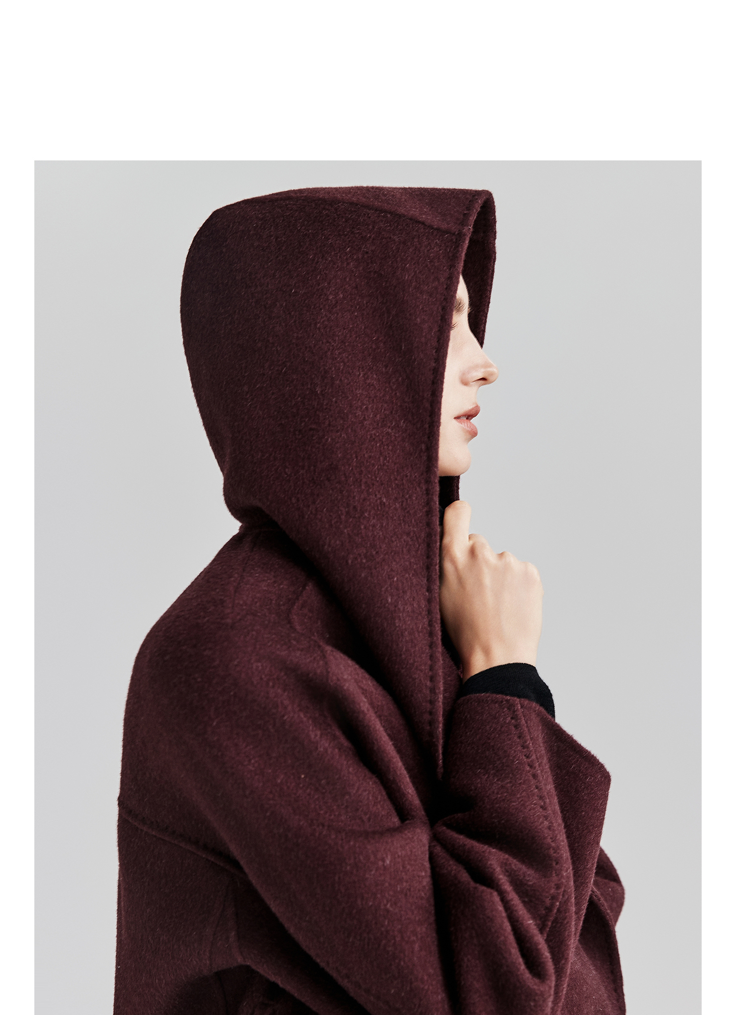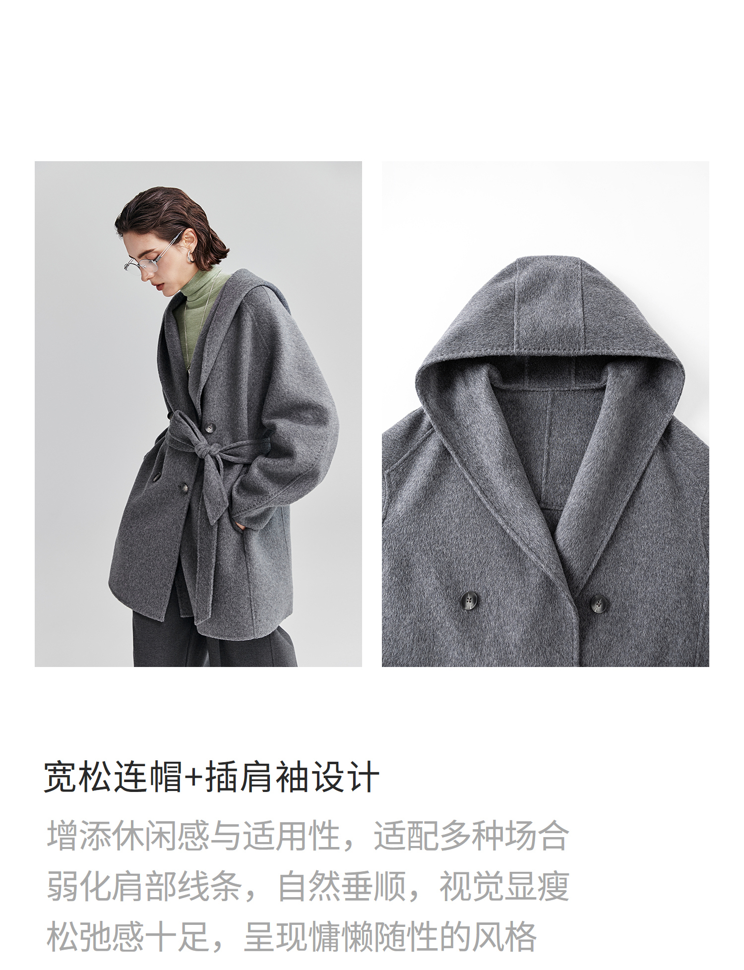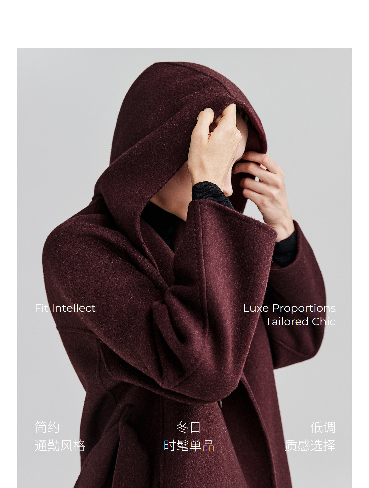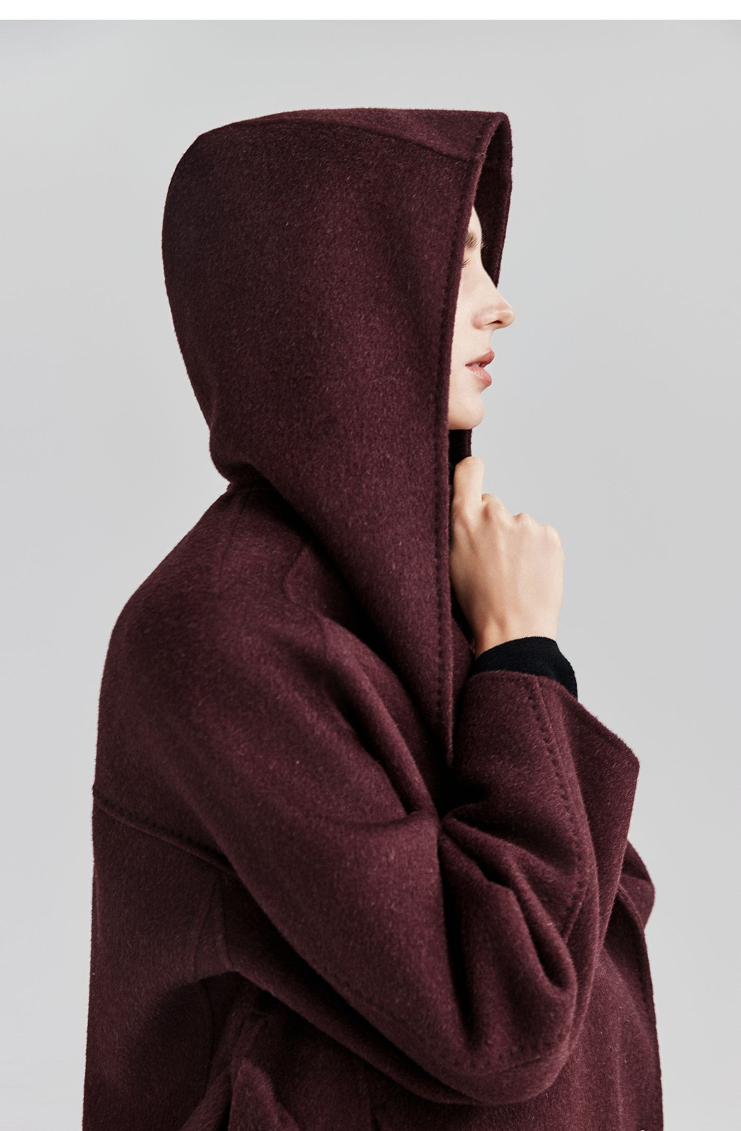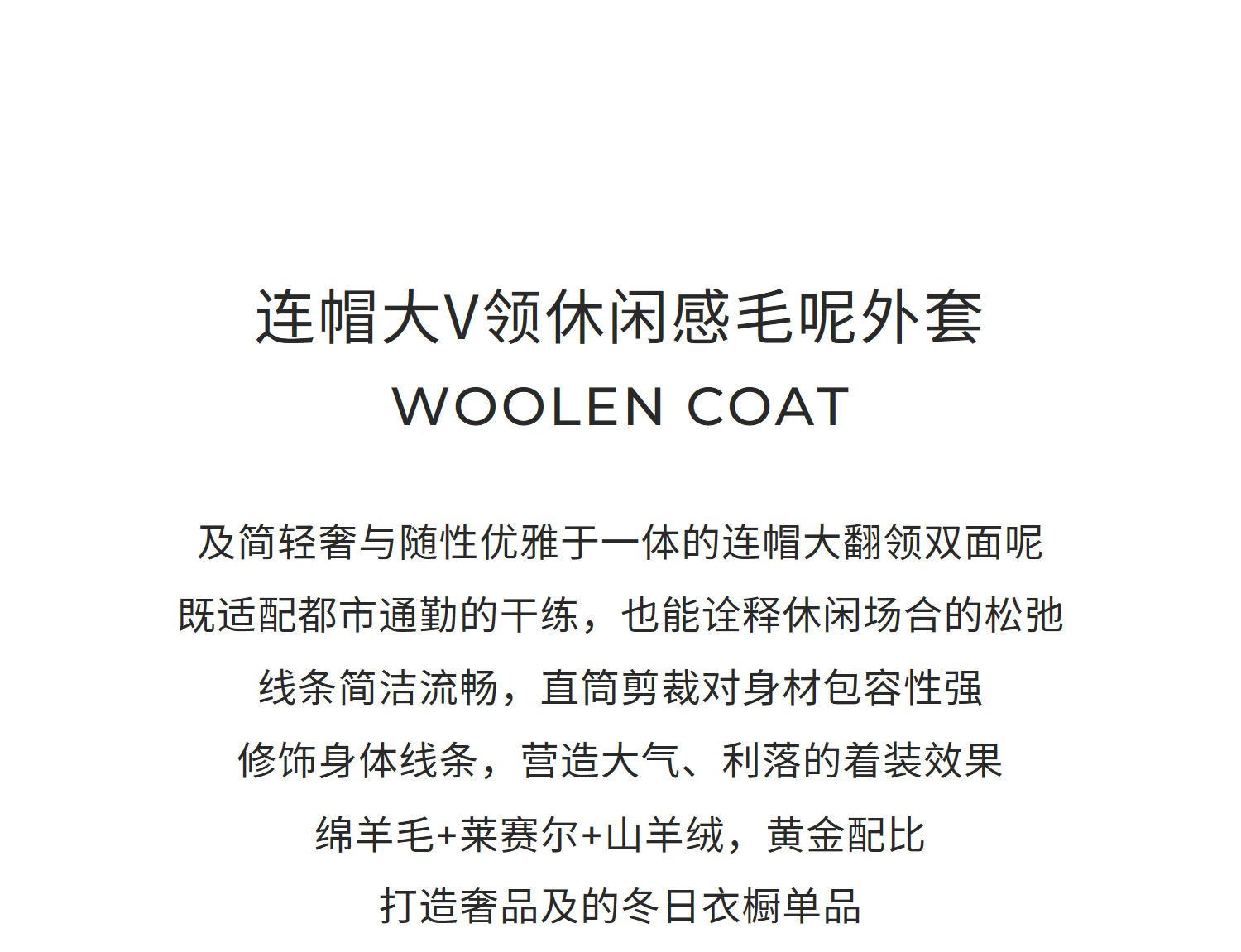 棉仓367666006-连帽大V领休闲感毛呢外套