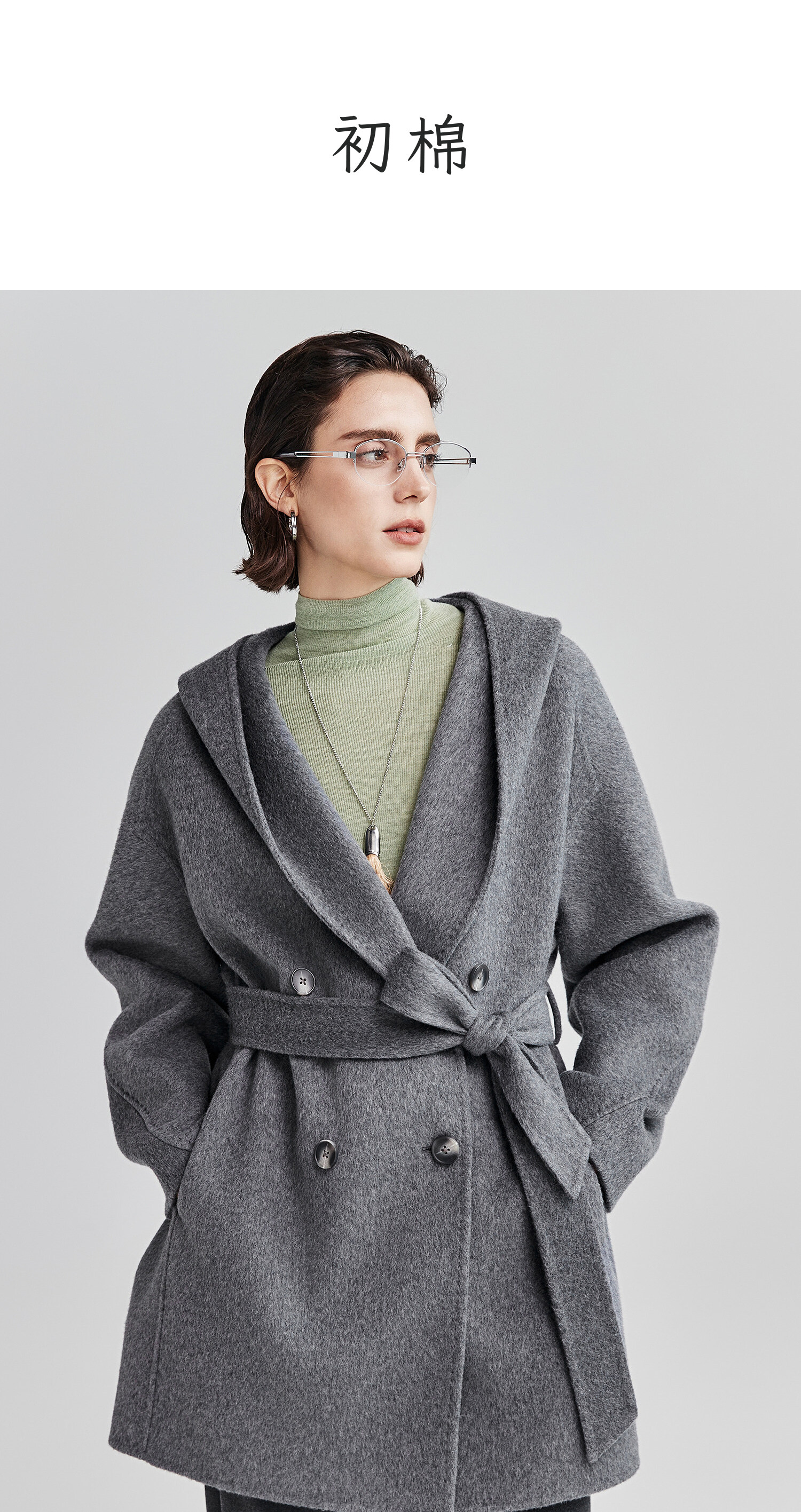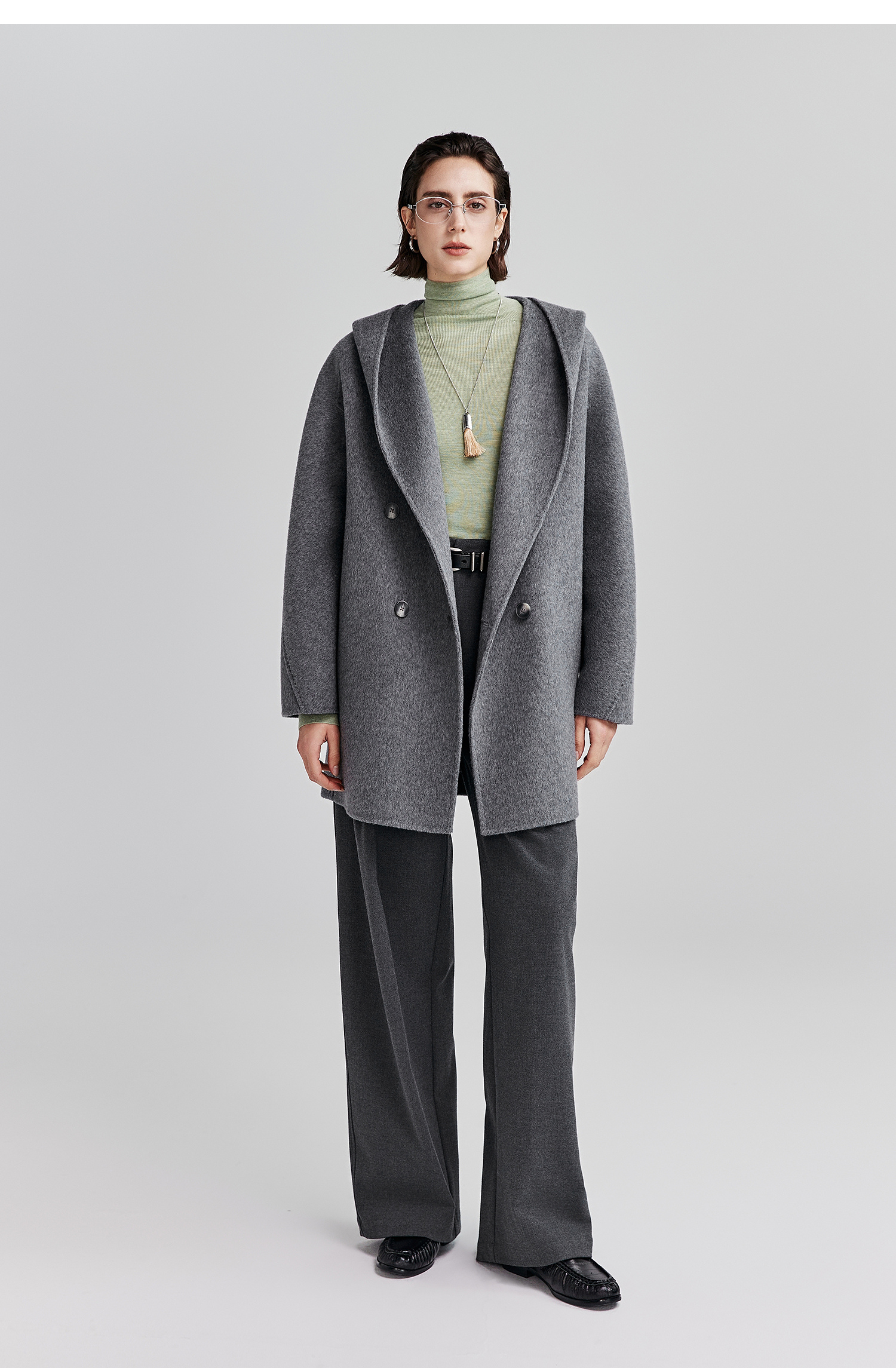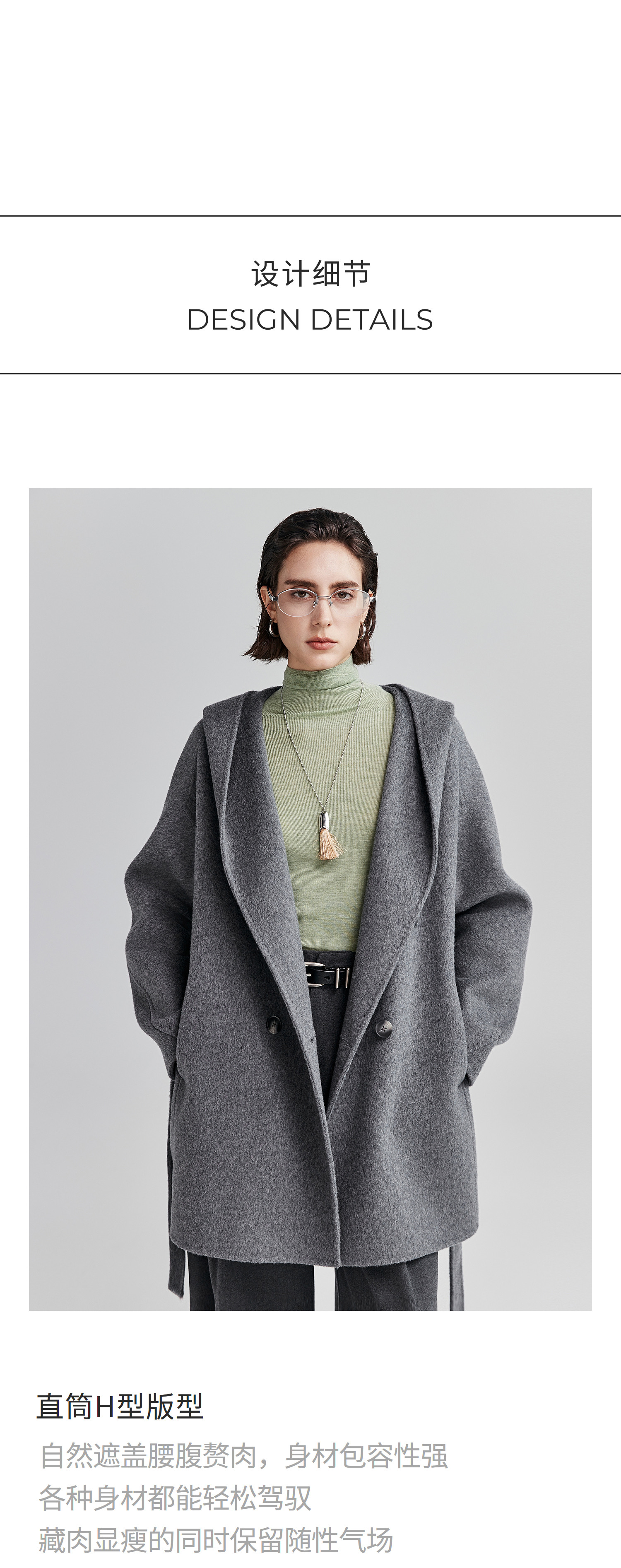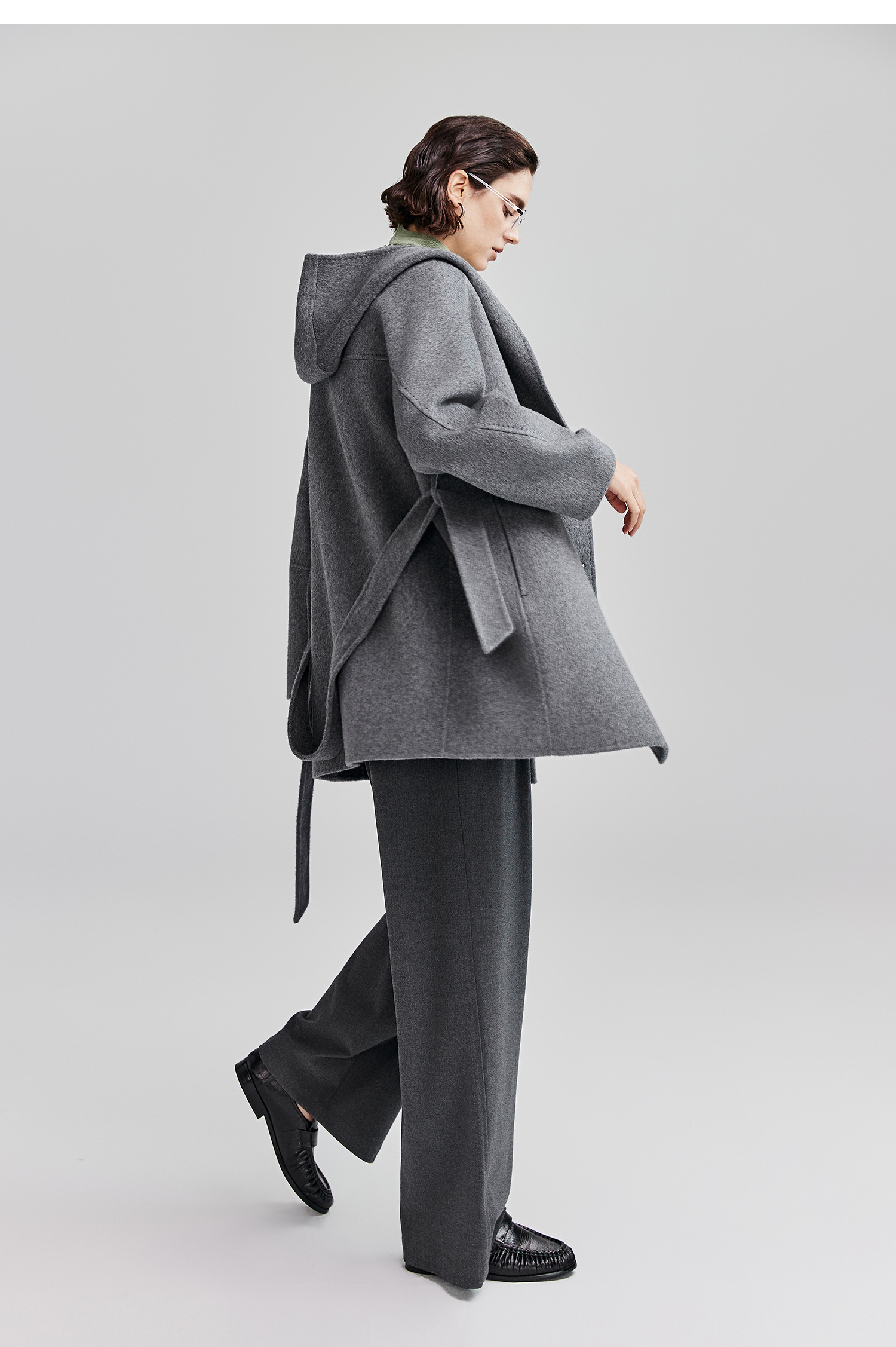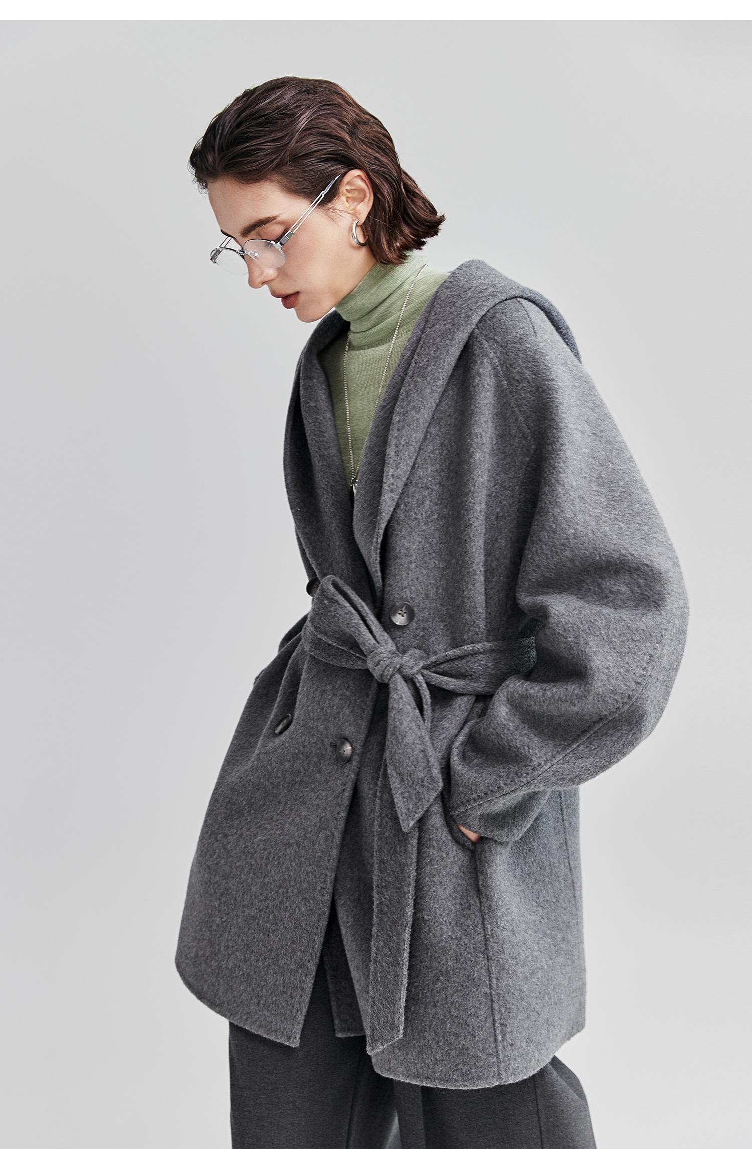 棉仓367666006-连帽大V领休闲感毛呢外套