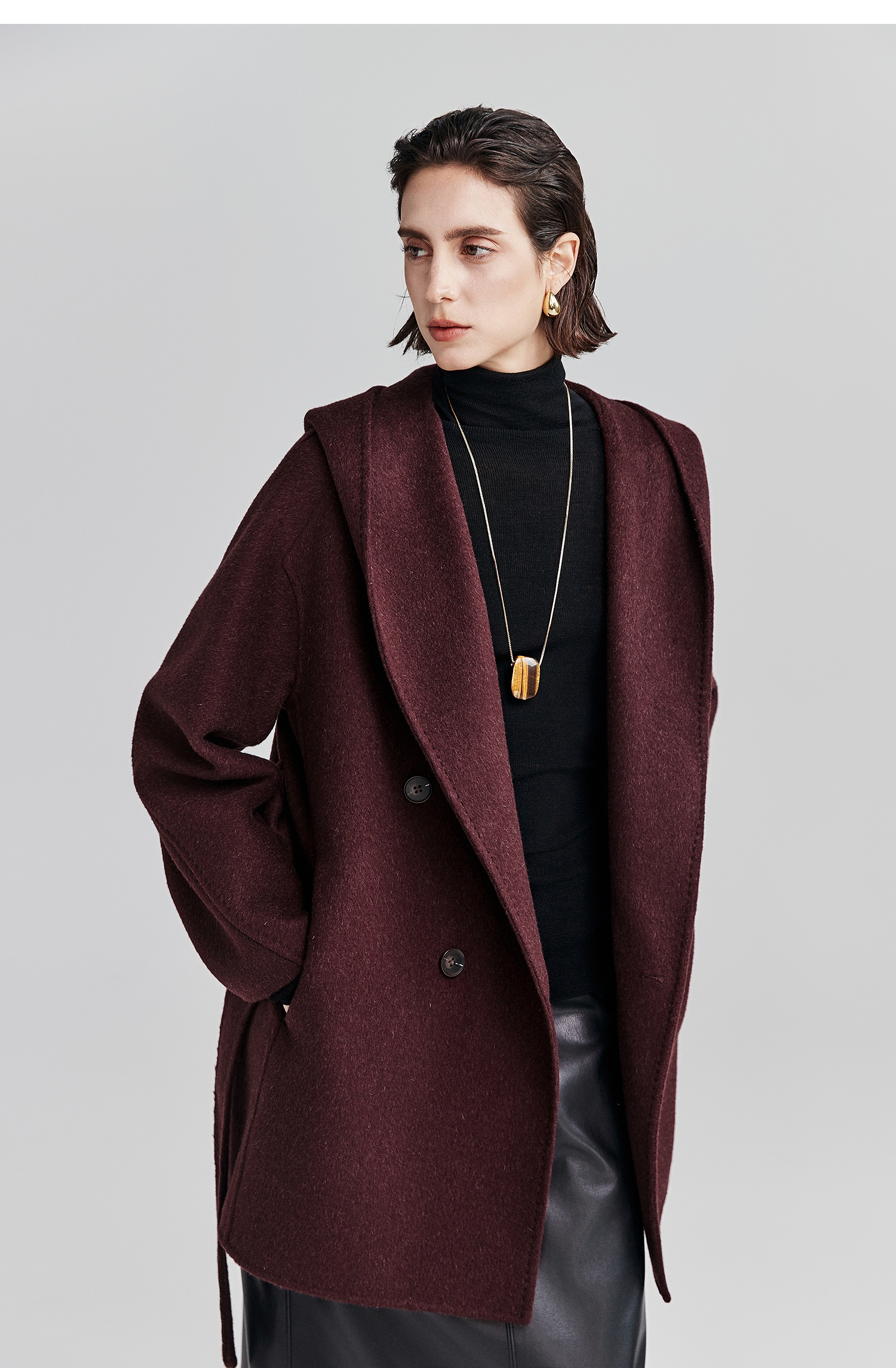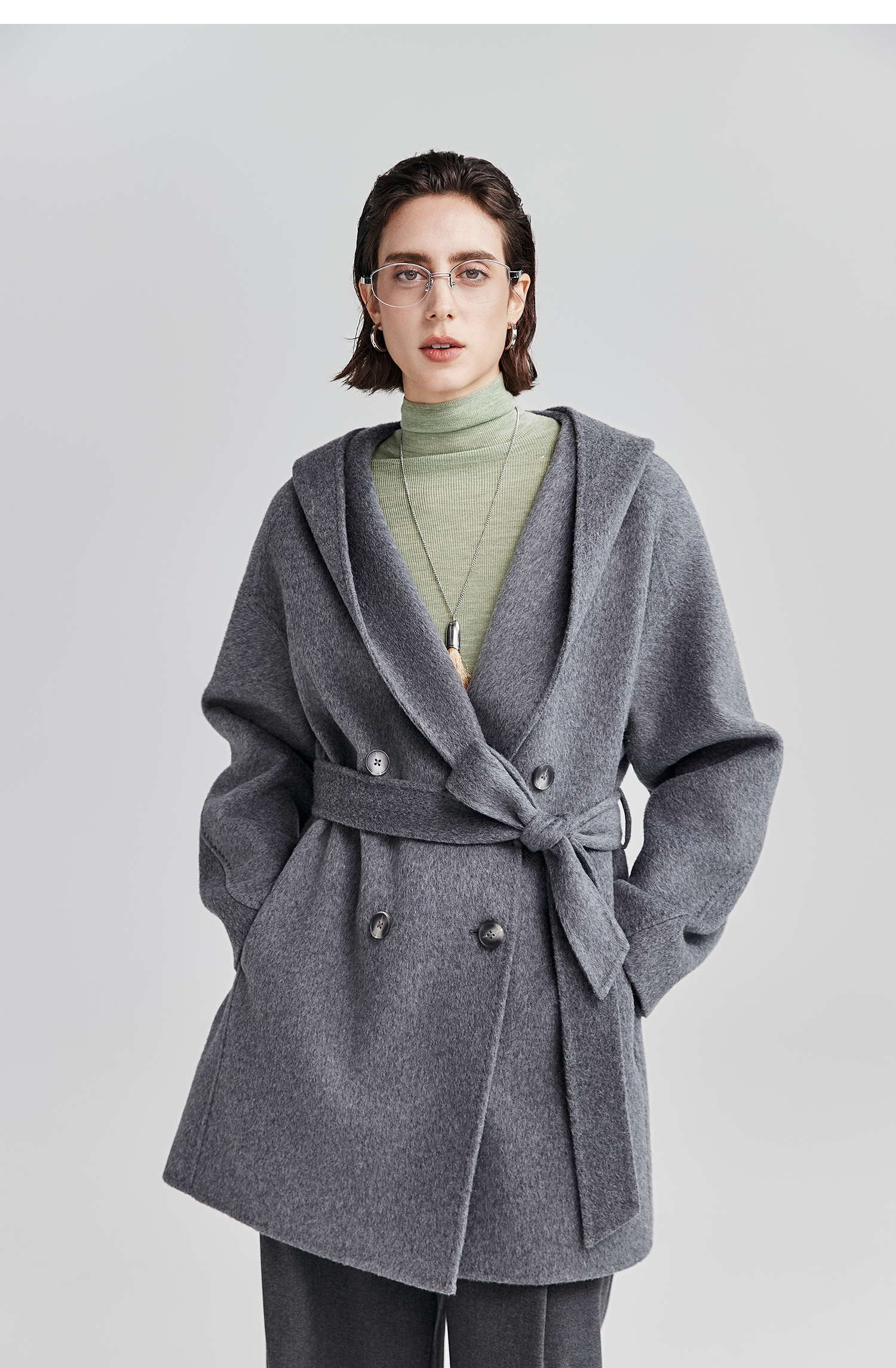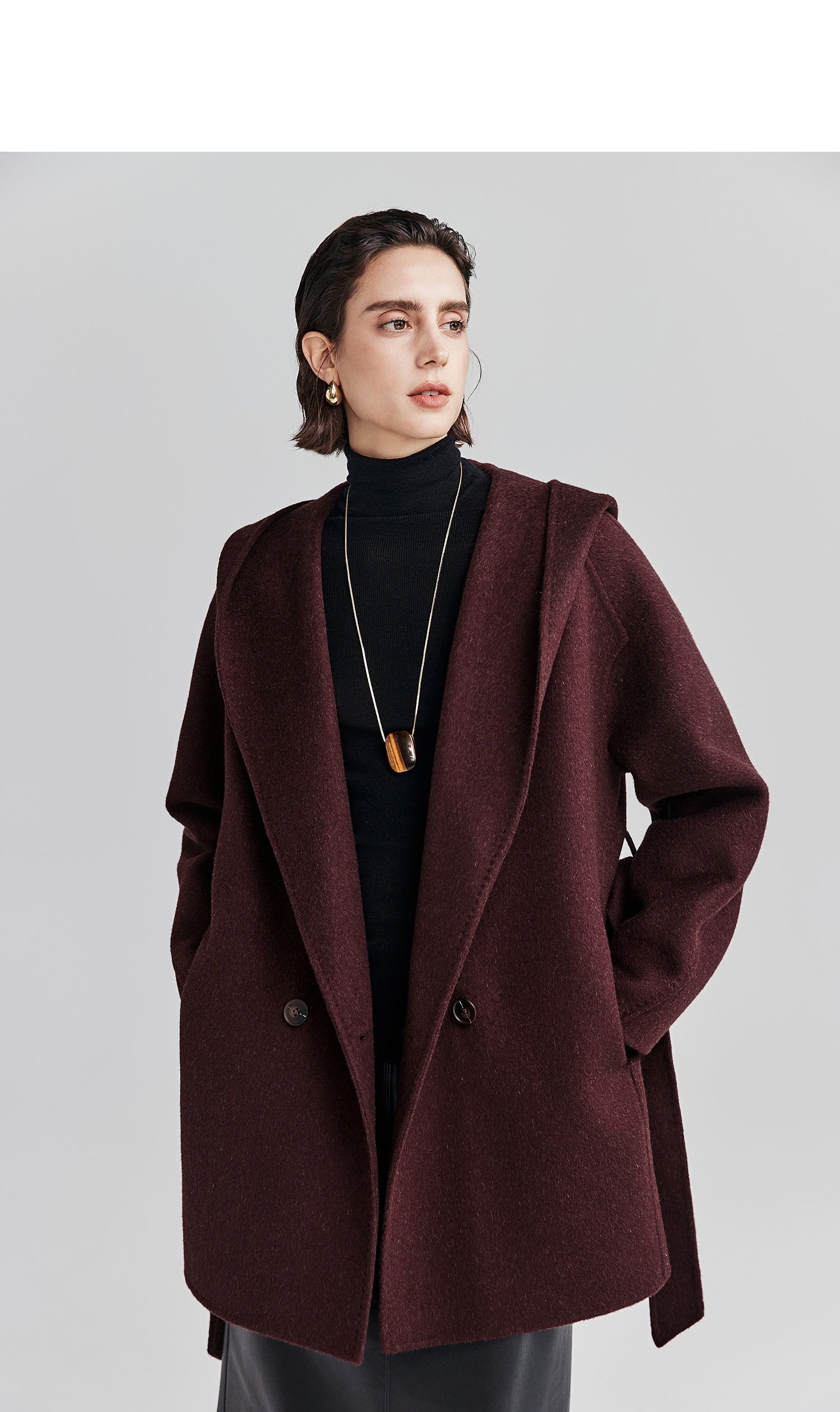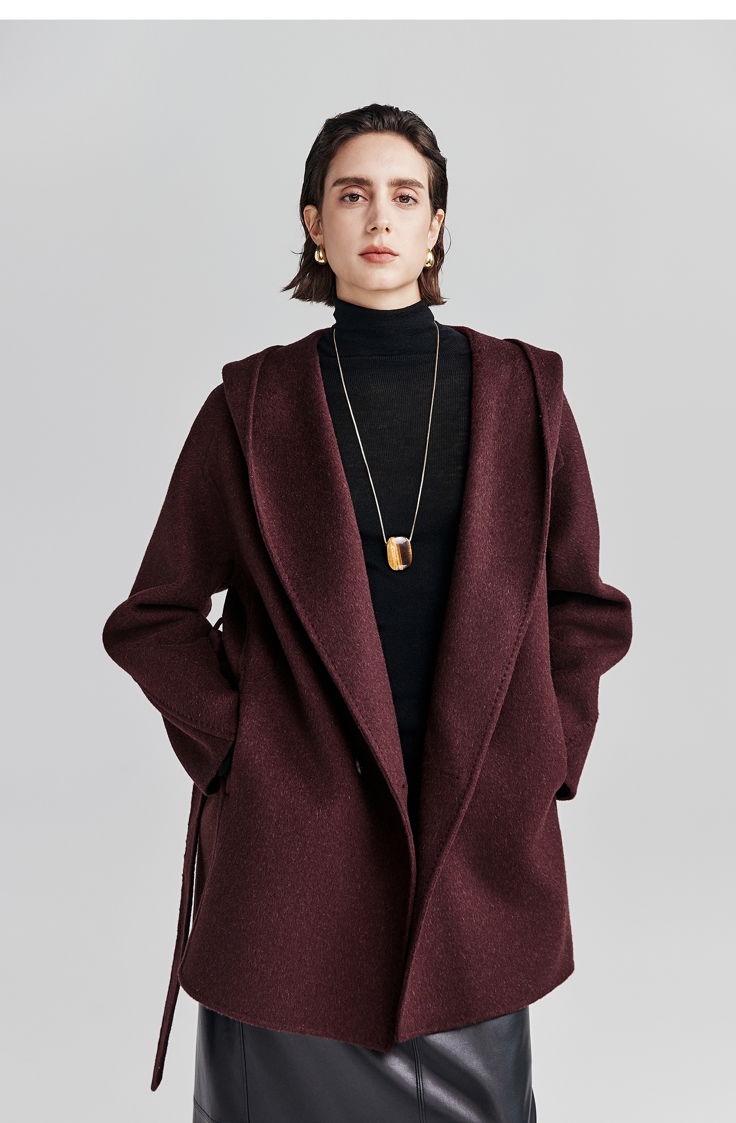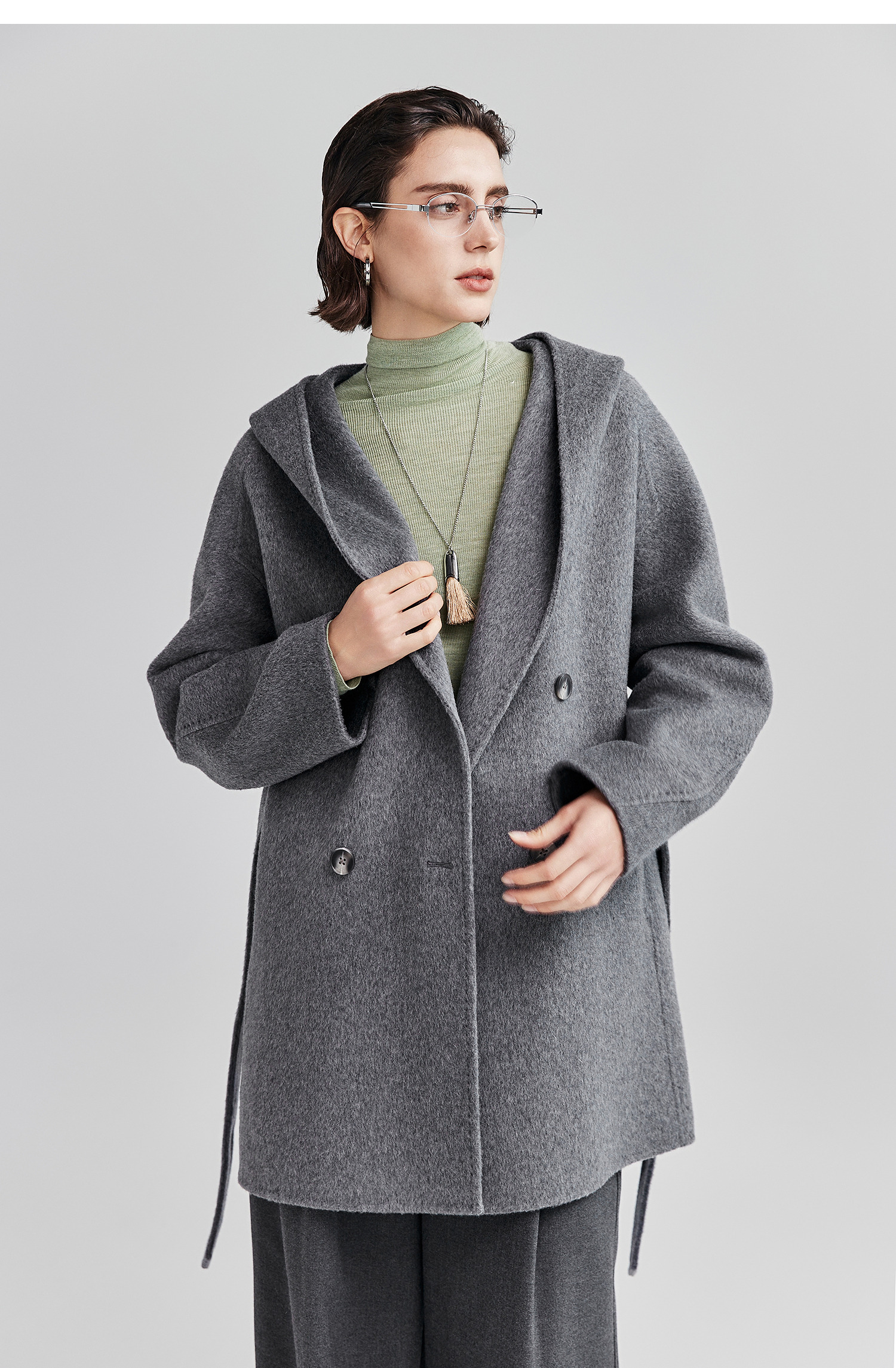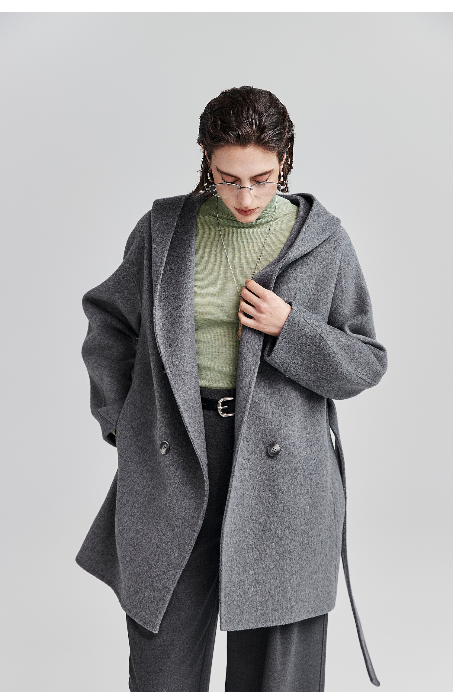 棉仓367666006-连帽大V领休闲感毛呢外套