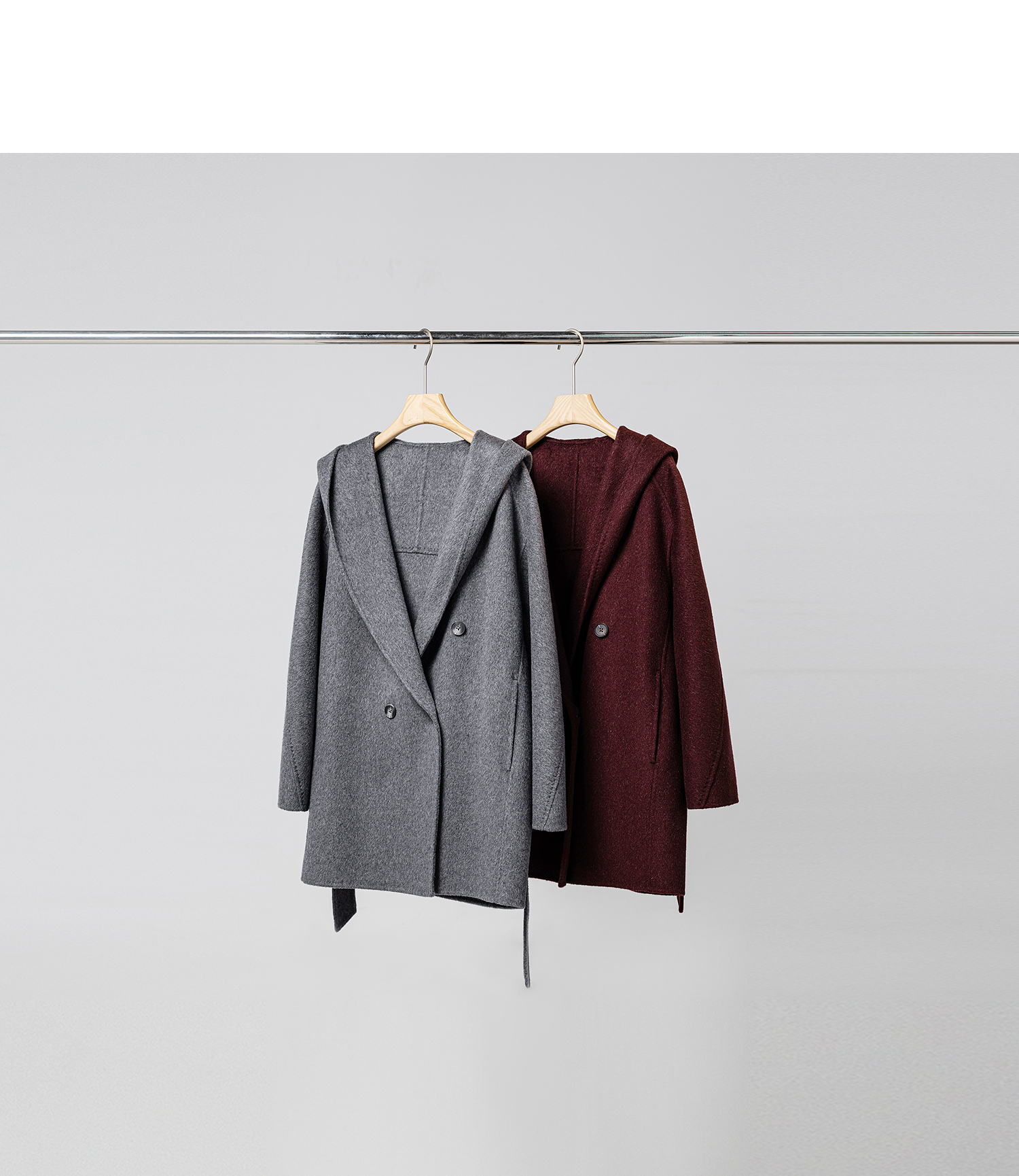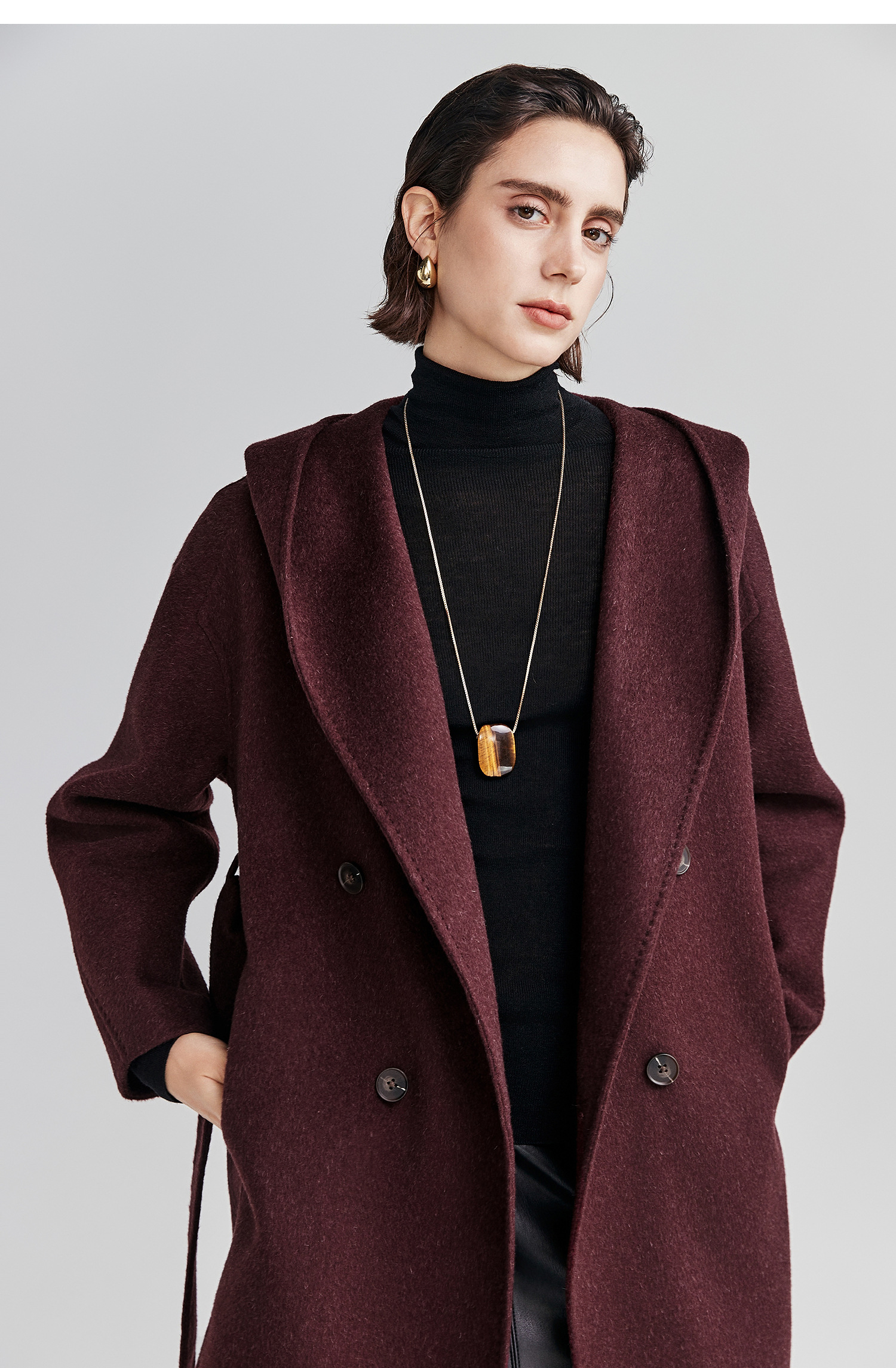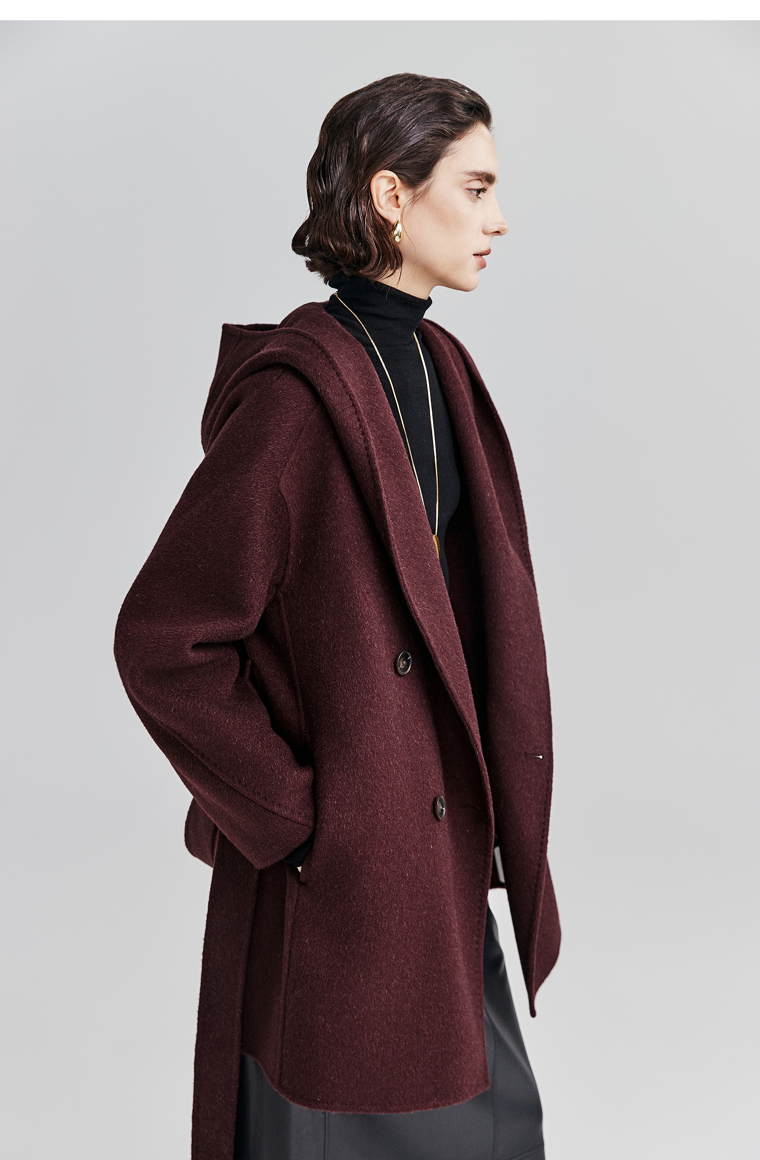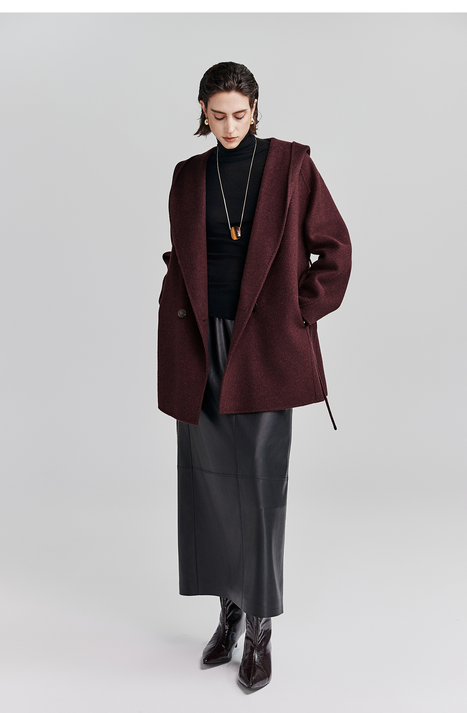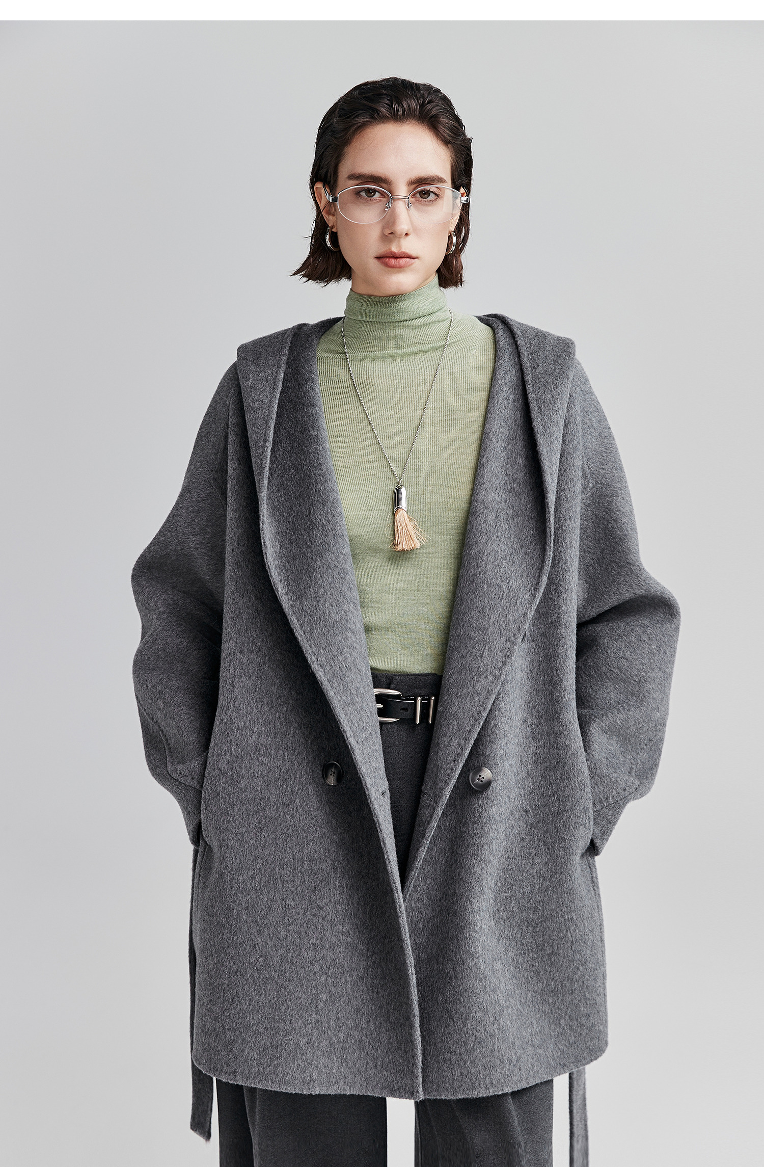 棉仓367666006-连帽大V领休闲感毛呢外套