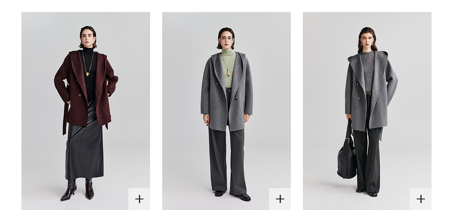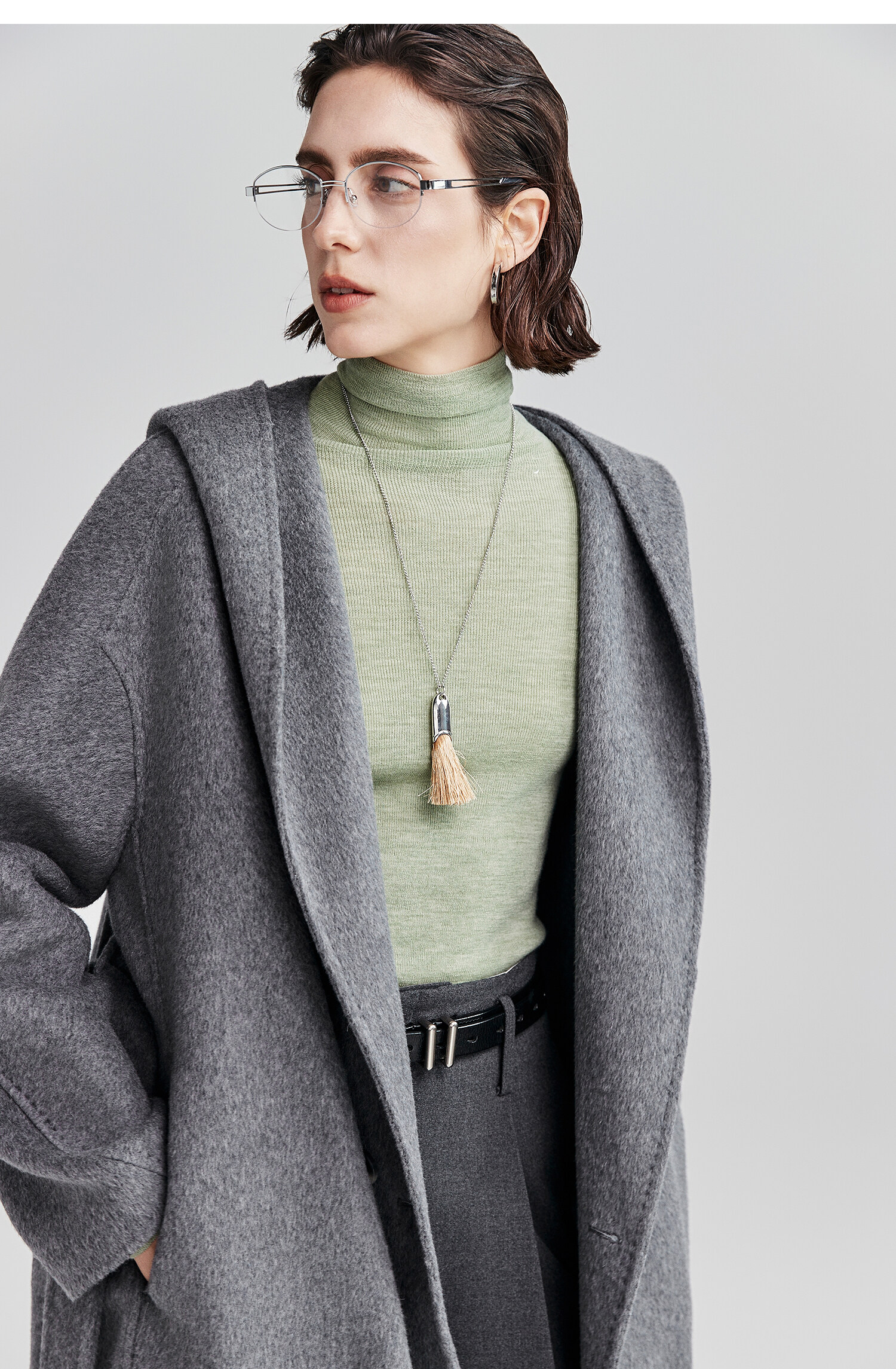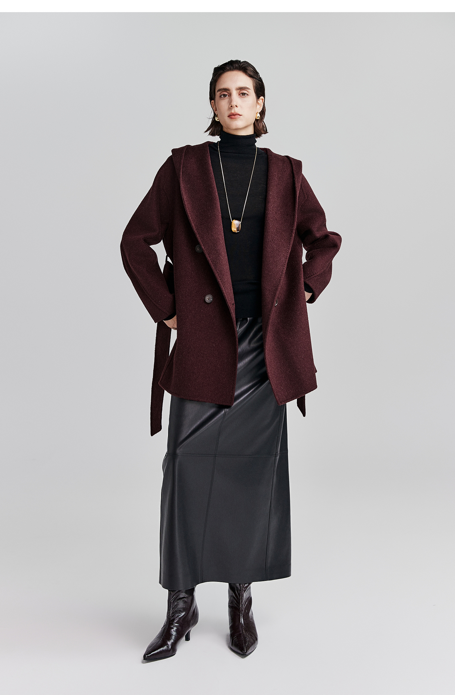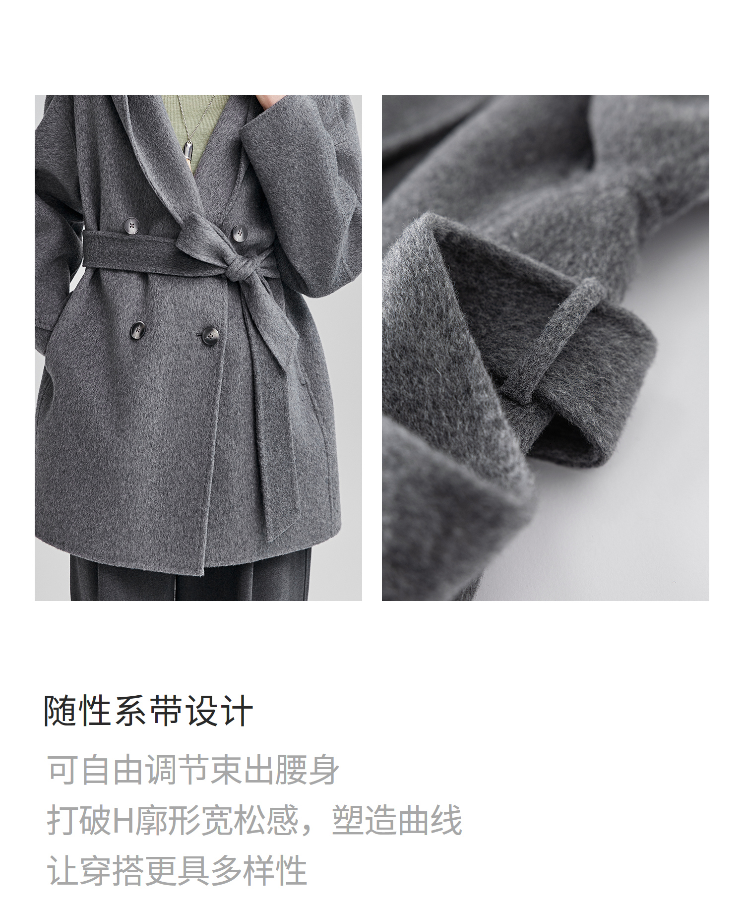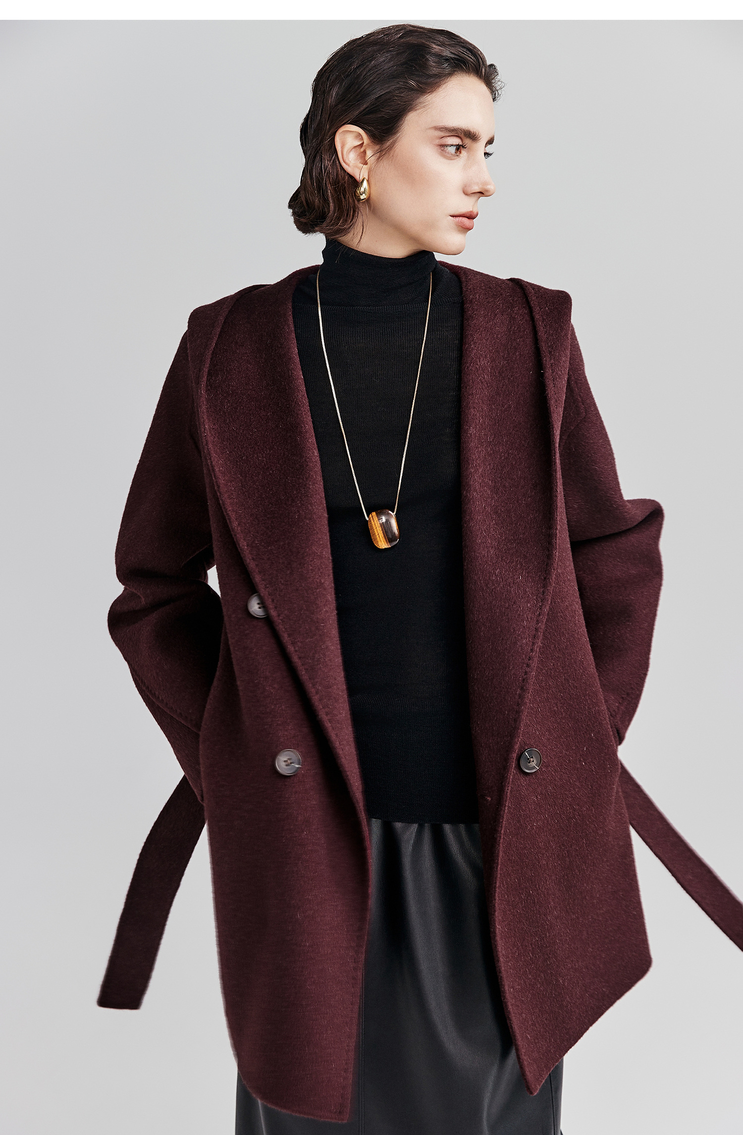 棉仓367666006-连帽大V领休闲感毛呢外套