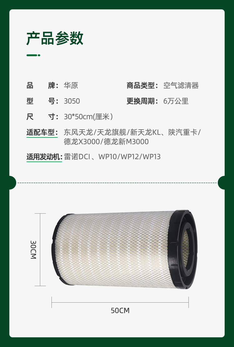 华原 3050 空气滤清器 6万公里 东风天龙/陕汽重卡/X3000/新M3000乘龙H7
