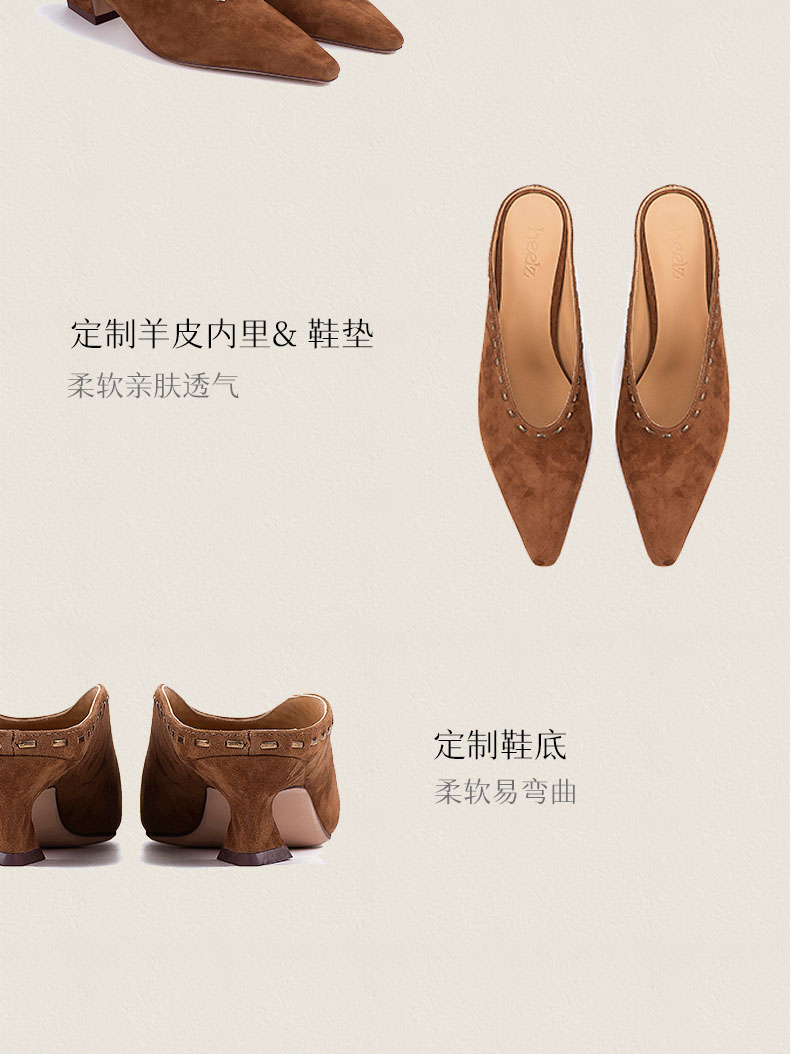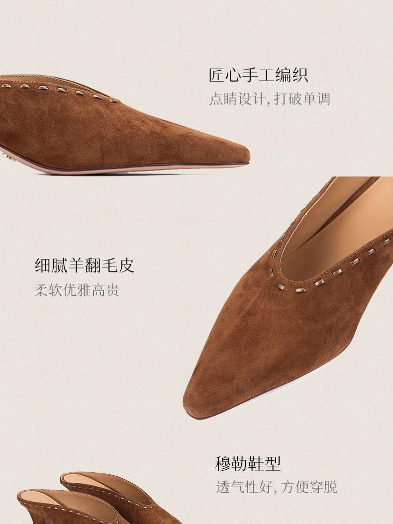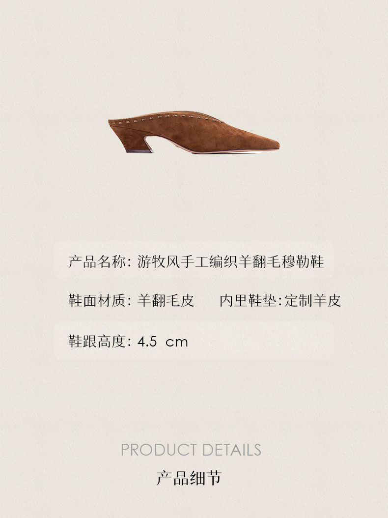heelz 艺术工坊系列|游牧风手工编织羊翻毛穆勒鞋4.5公分