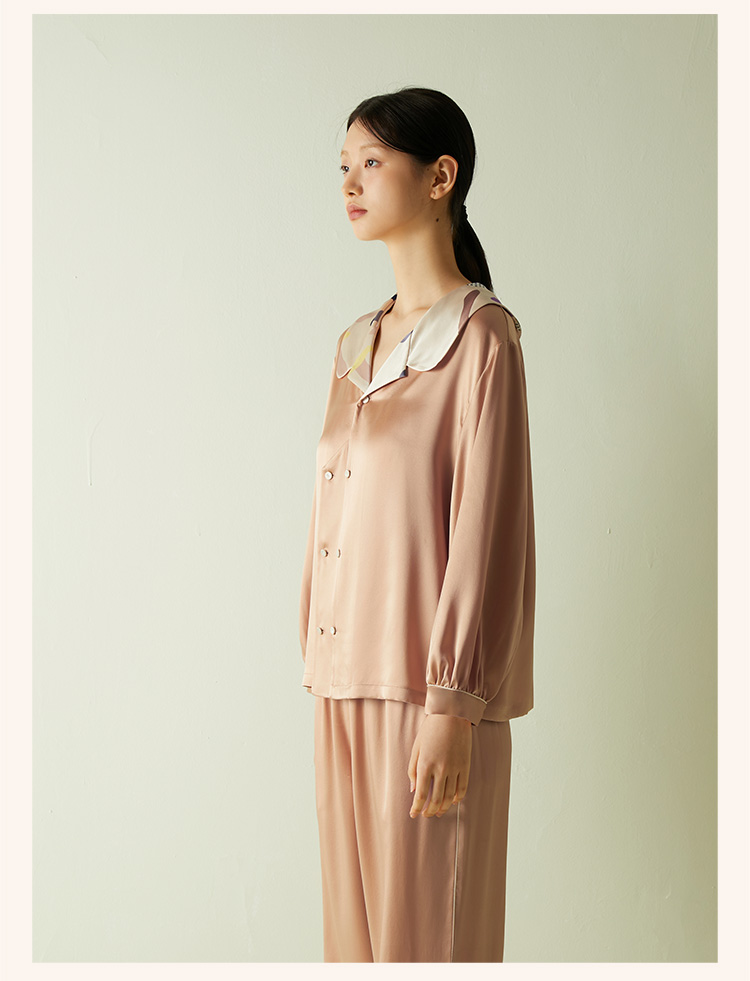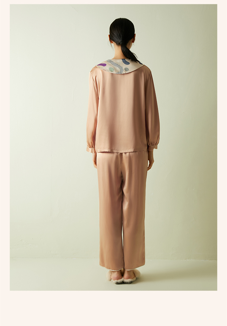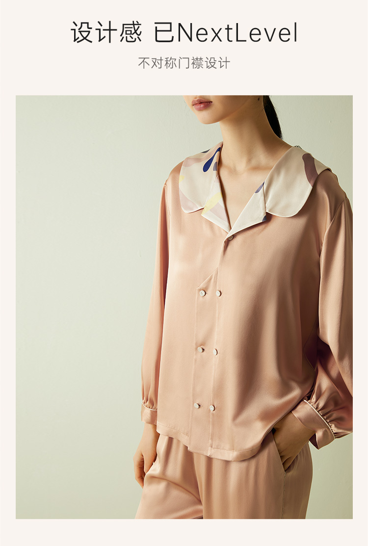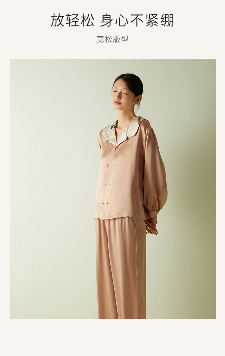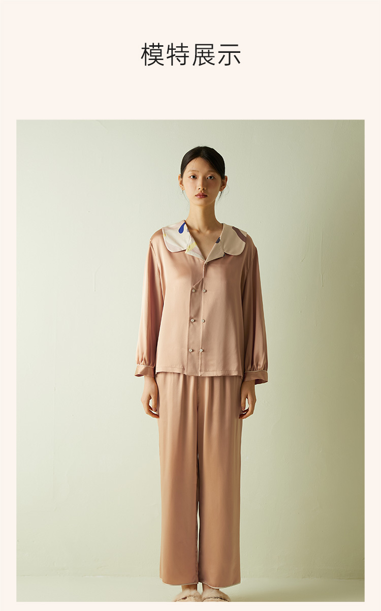 快乐源泉】桑罗糖霜印花多巴胺真丝睡衣套装女印花长袖宽松两件套