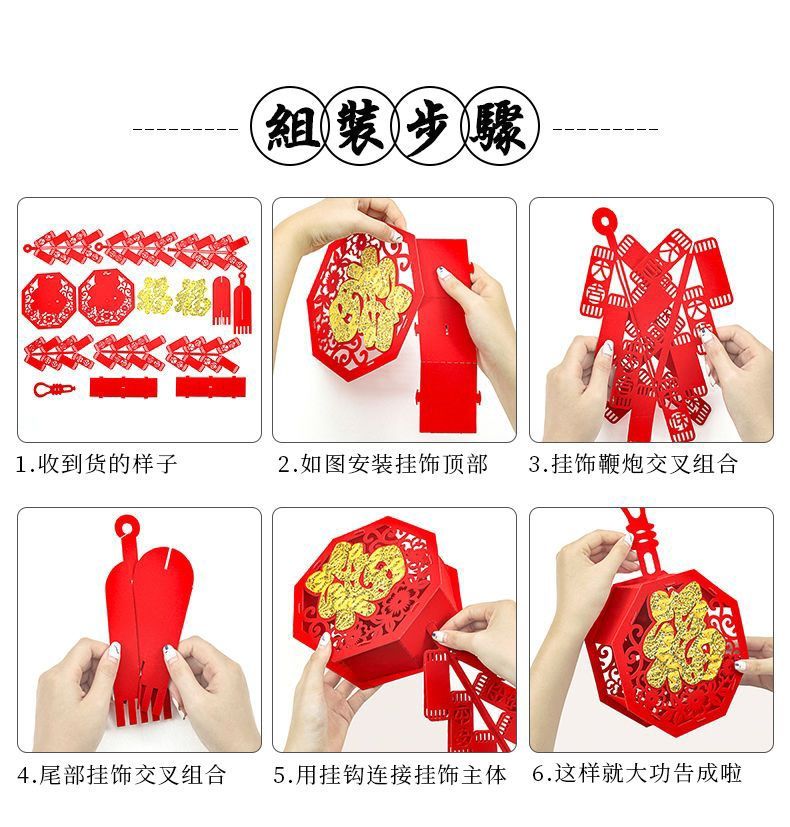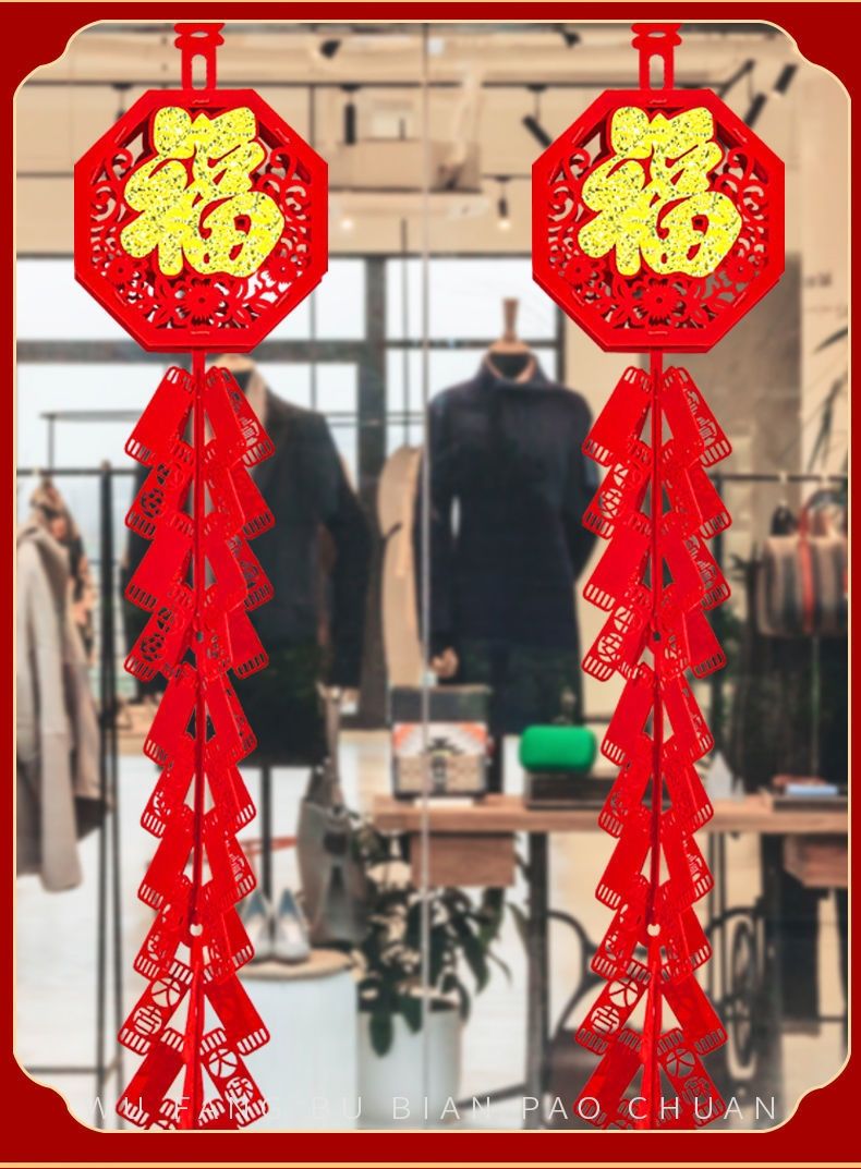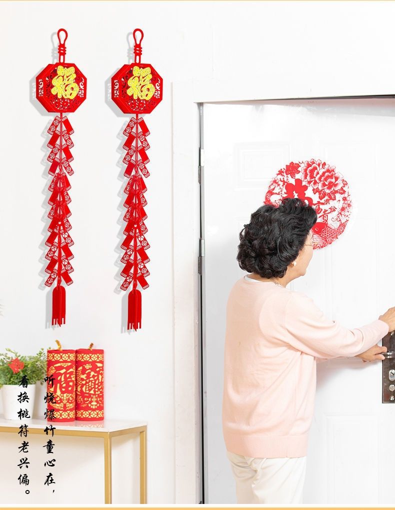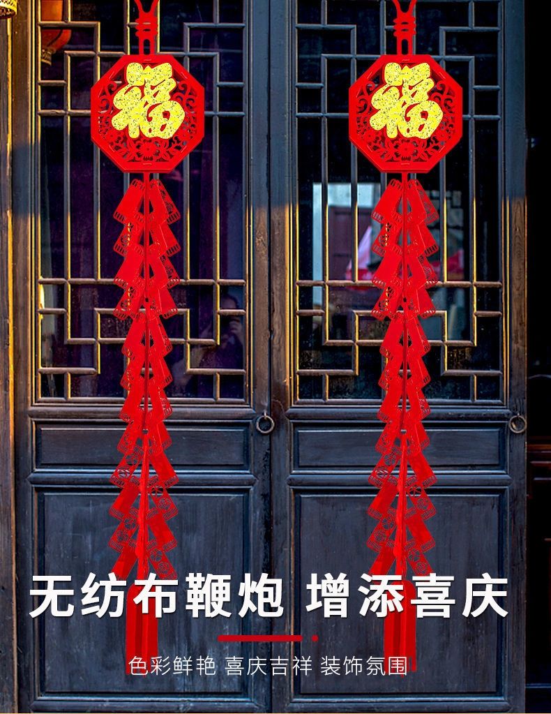 过年装饰挂件福字鞭炮春节新年装饰品2023兔年元旦大门口布置挂饰