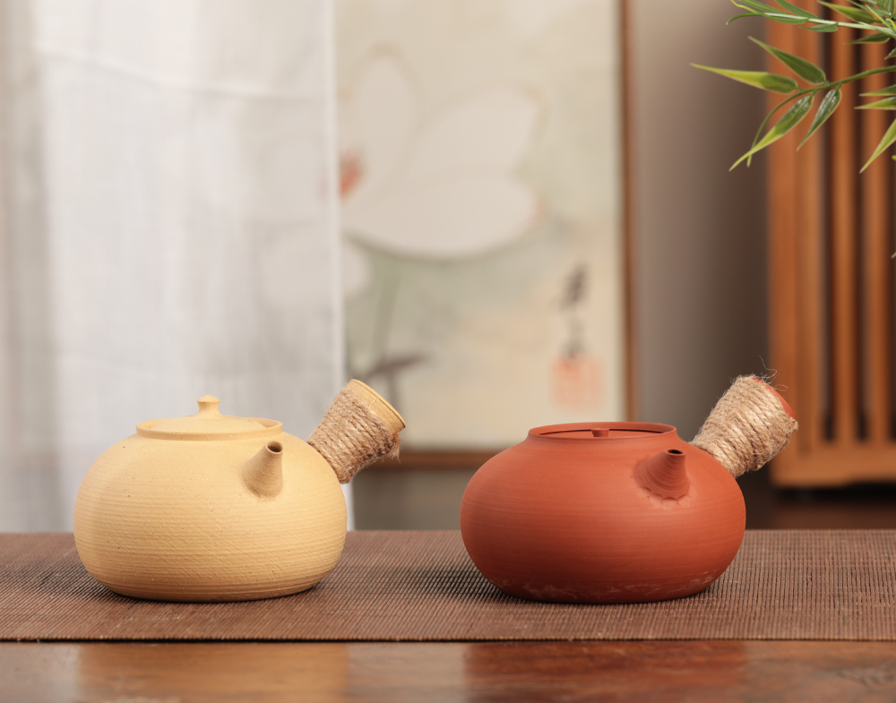 这两款采用的分别是潮州当地的红泥和白泥,朱砂壶手感更为细腻光滑;月光壶采用了加沙设计,手感上更为粗糙,有磨砂感。相较于朱砂壶,月光壶因为加沙的缘故会更厚更重一些,清友们可以根据自己的喜好进行抉择。