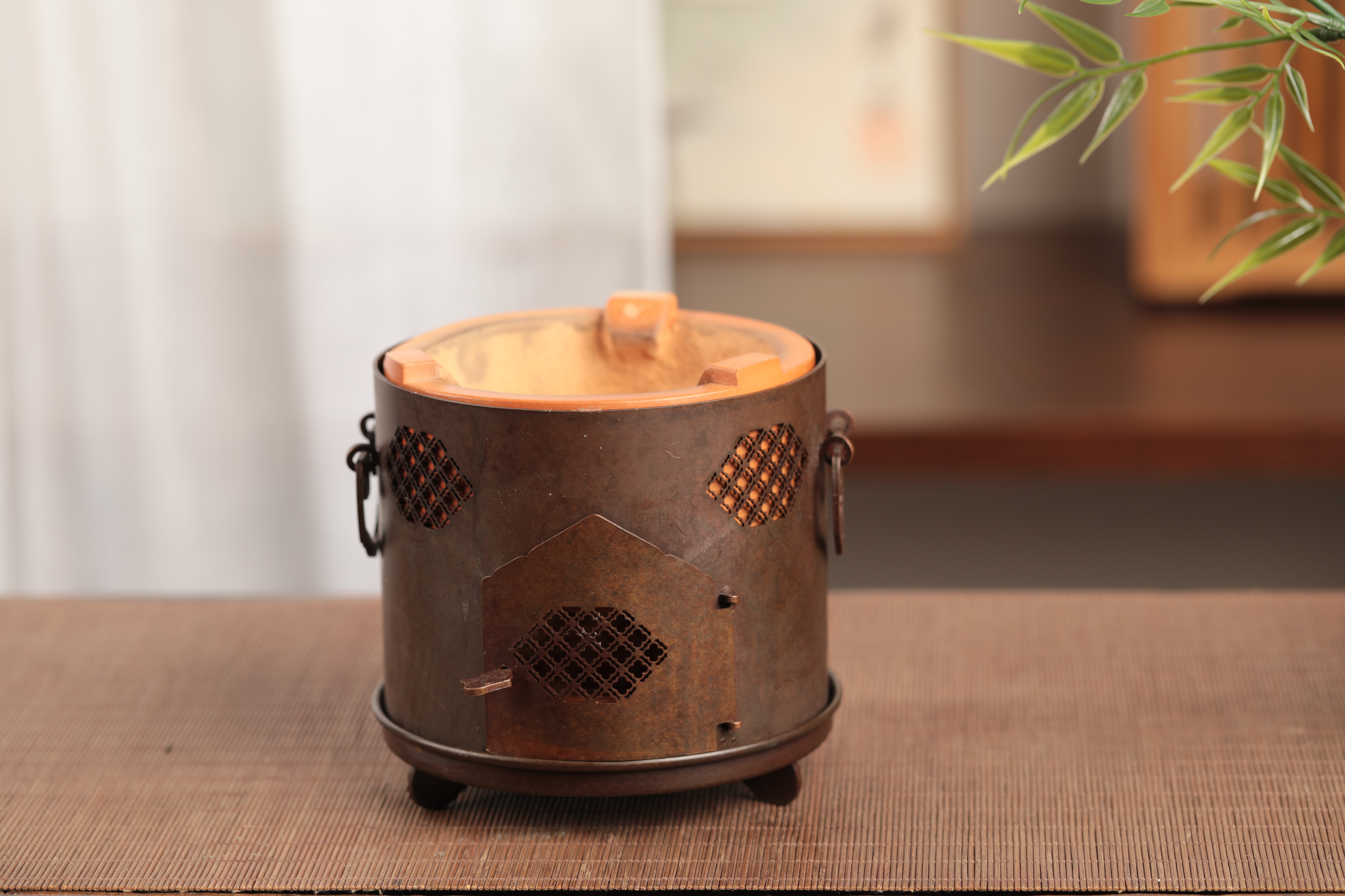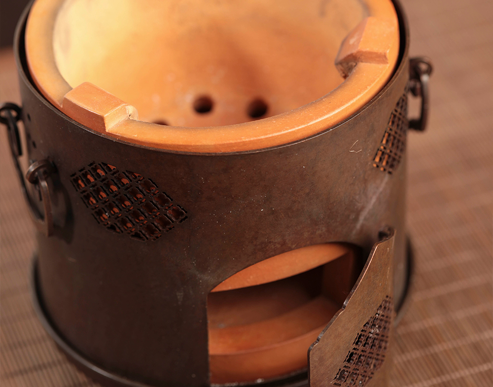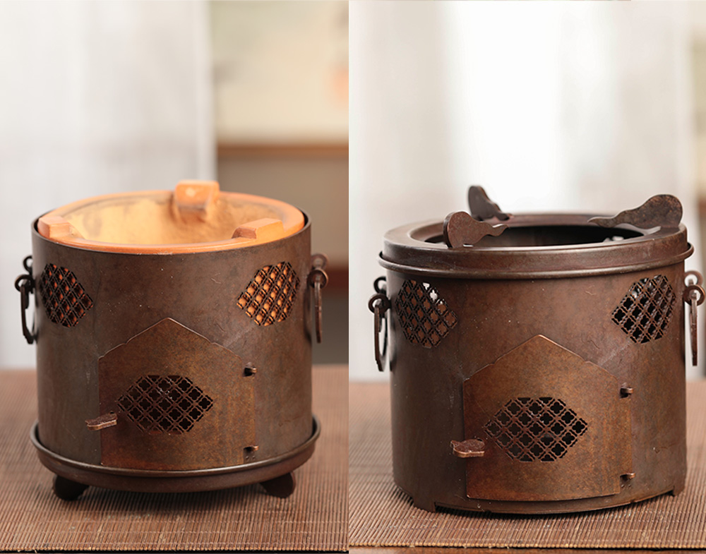 将它内里的红泥炉去掉,把它的底座挪上来,又是一个新炉子,在内里放置一个酒精灯或环保燃油罐煮茶,可以避免夏日用炉烧水带来的炎热,同时也更适合外出携带。