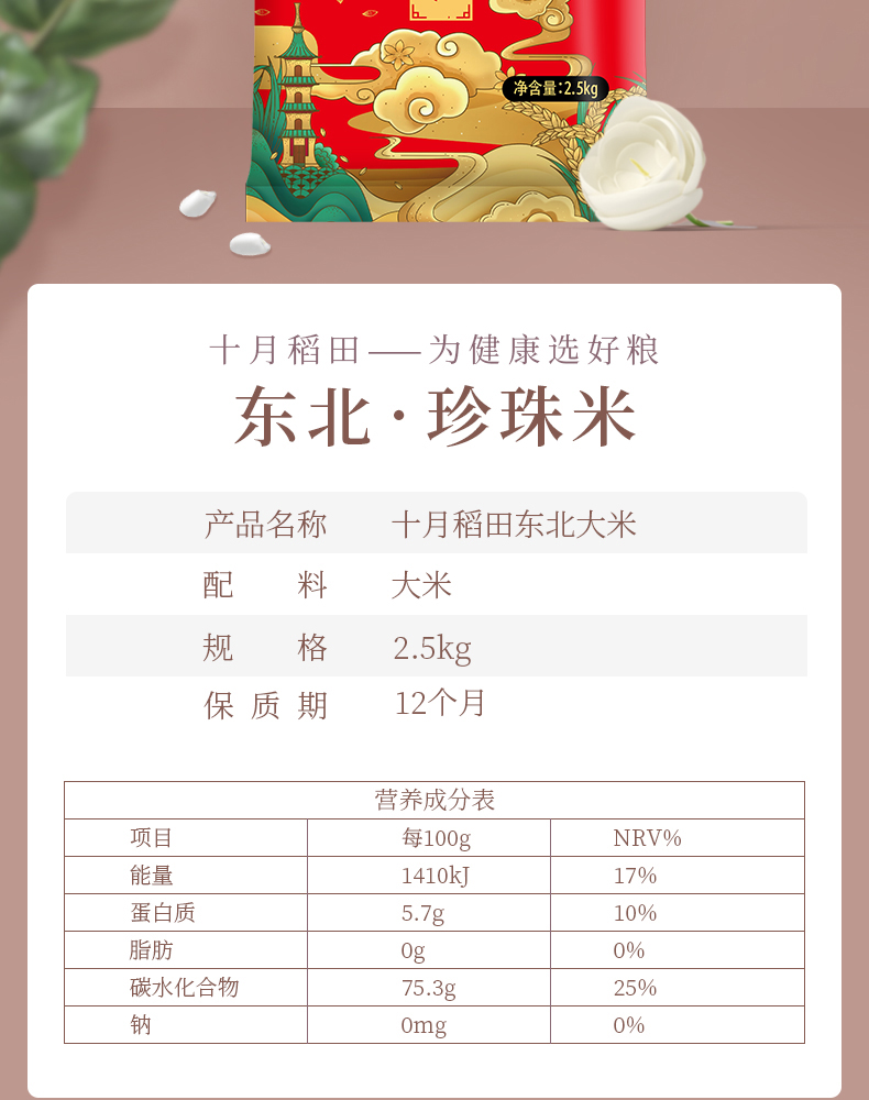 (新老包装随机发)十月稻田 东北优质大米2.5kg/袋 东北圆粒米寒地珍珠米【CZ】