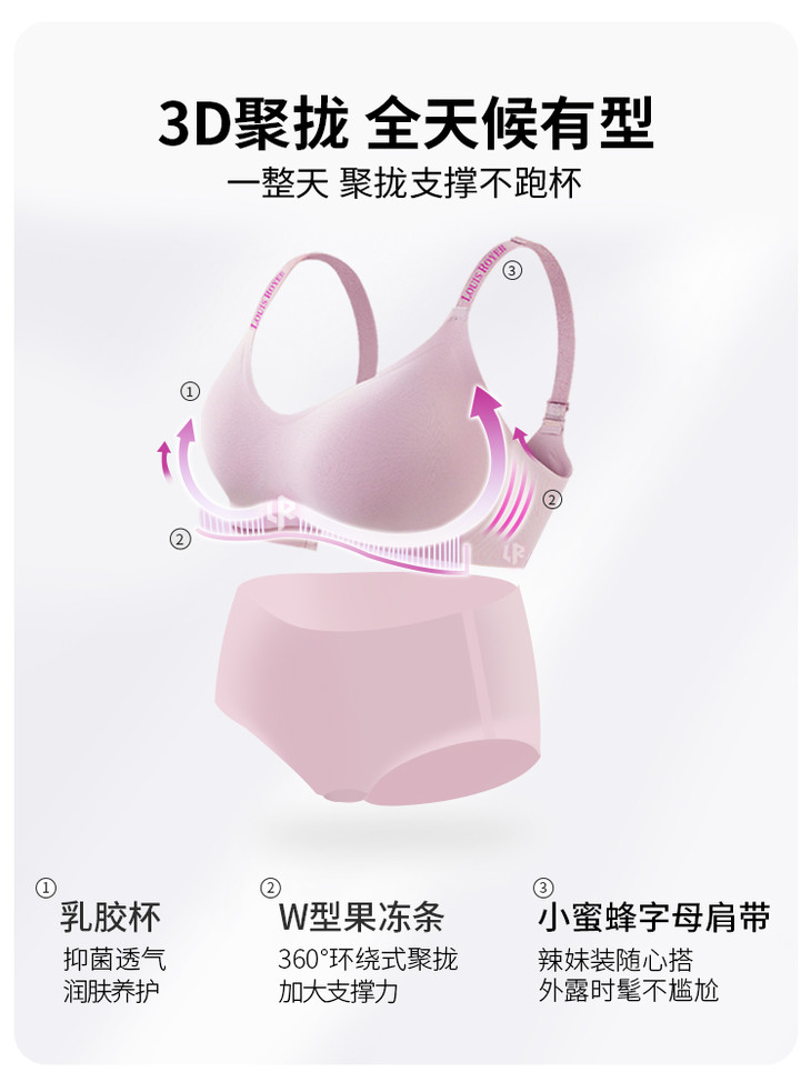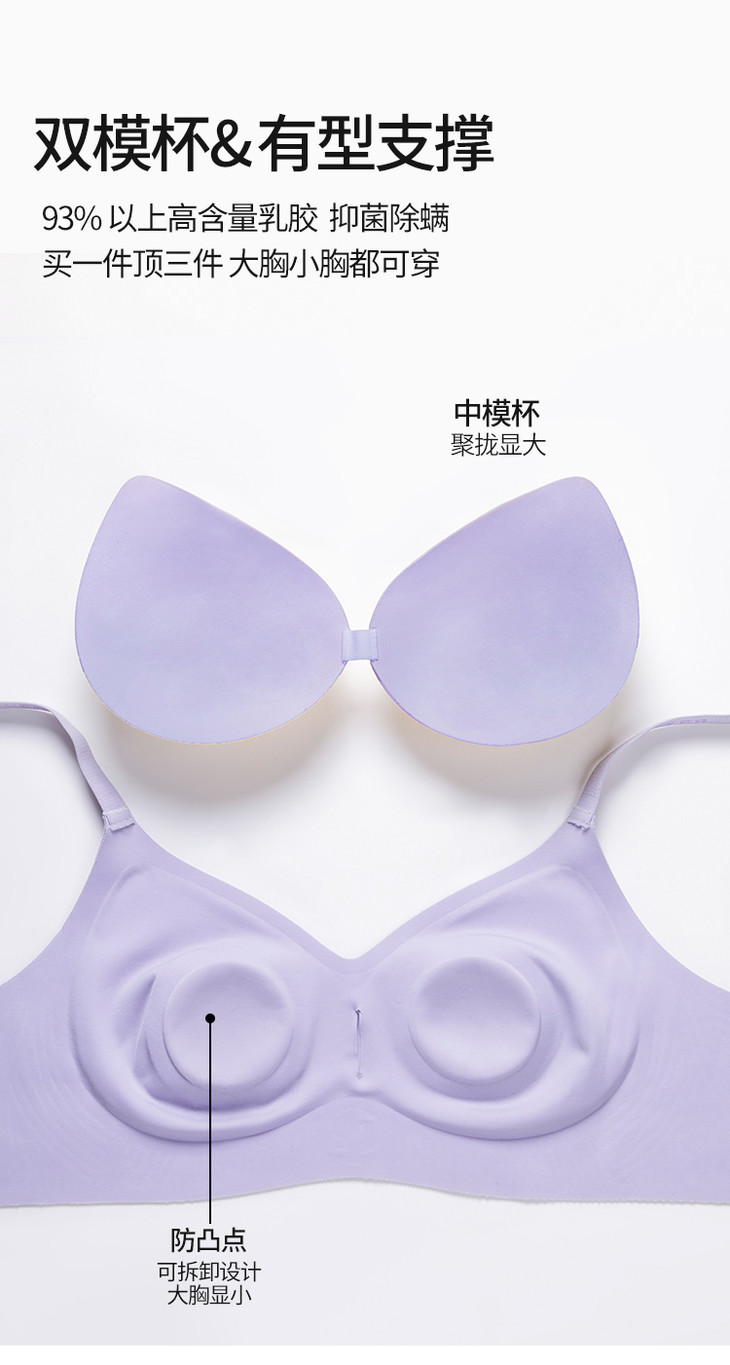 利蜂轻运动内衣以行业首创的双模杯设计颠覆传统认知,防凸点与中模杯组合可巧妙聚拢塑形,塑造饱满迷人的胸部轮廓。中模杯兼顾玲珑小胸与丰满需求,防凸点的mini杯,自在舒适,大胸显小;创新3D聚拢技术实现多角度立体承托,搭配天然乳胶的柔软透气,温柔包裹每一寸肌肤;W型果冻条360°环绕支撑结构,即使剧烈运动也能提供稳定托举效果。肩带融入小蜜蜂字母元素,高弹防滑落,外露也美貌!