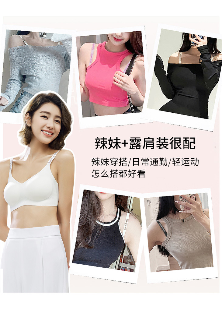 利蜂有出轻运动内衣套装啦!肩带超好看,是字母的,露出来也美美的,不会尴尬。。。但最厉害的还是特别的双模杯,一个是普通的芒果杯,承托聚扰,还有一个是薄薄小圆形,可以盖住小樱桃,防凸点,大胸胸超友好,透气轻盈,自由!还都能拆卸哎!