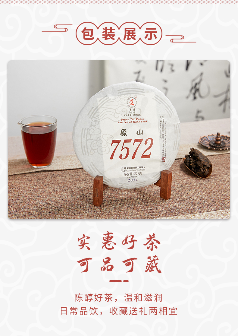 爻牌丨象山 7572 云南熟普 普洱熟茶 熟普2014年 357g