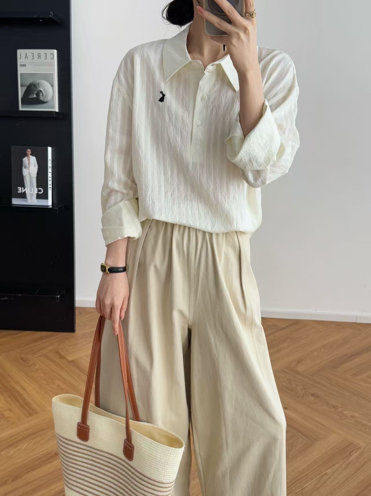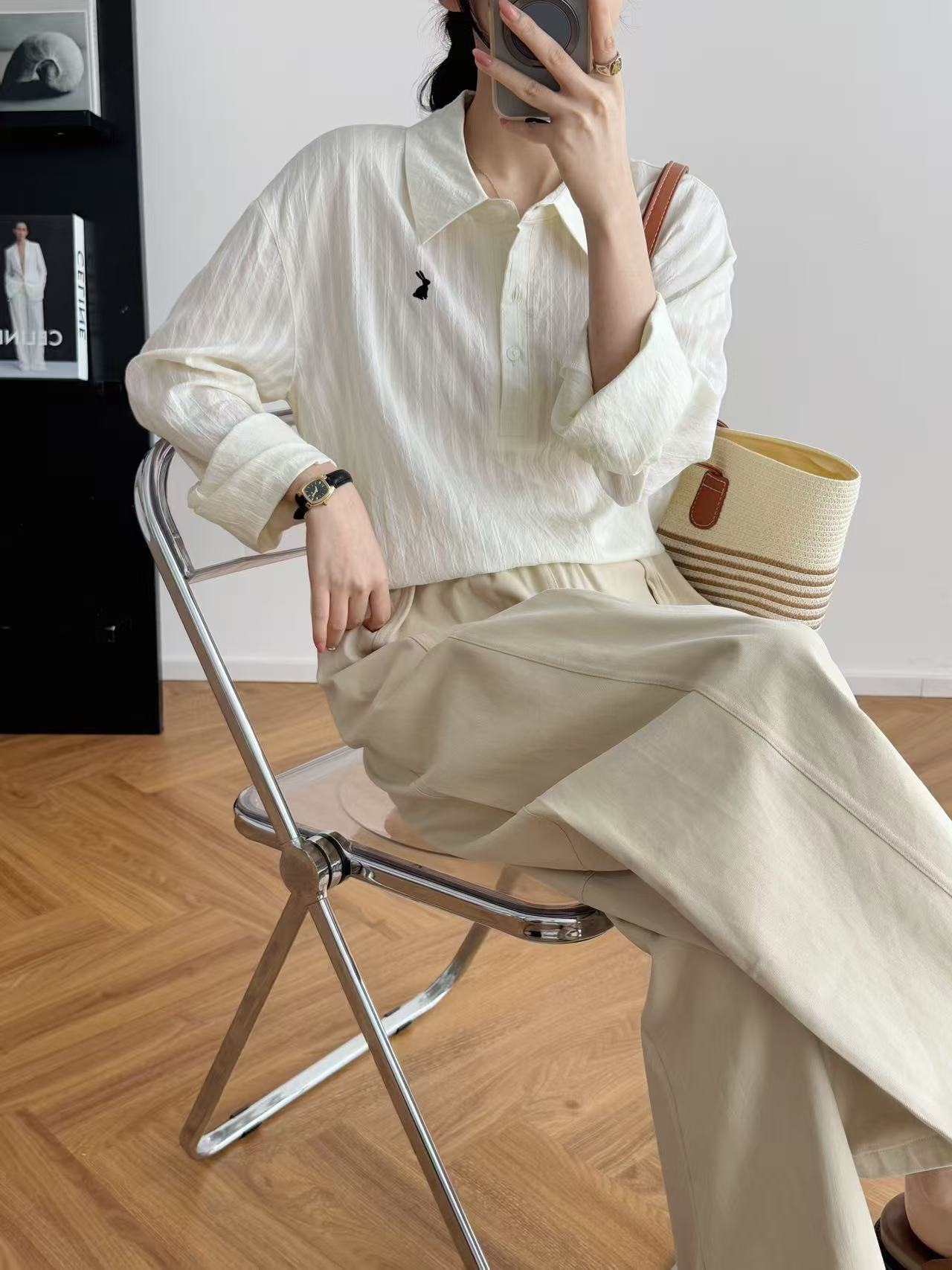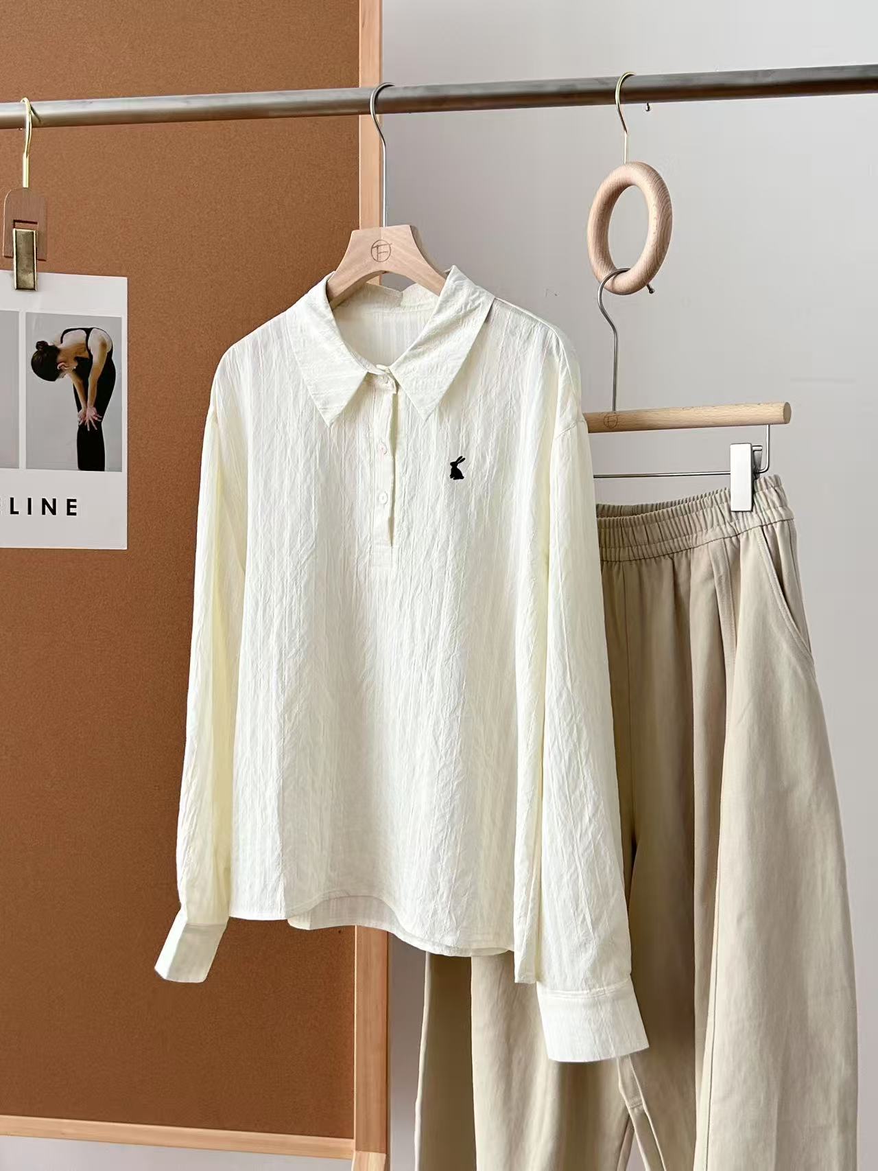 早秋衬衫 小兔刺绣长袖POLO衬衫 提花暗纹在阳光下若隐若现 半开襟POLO领修饰颈部线条