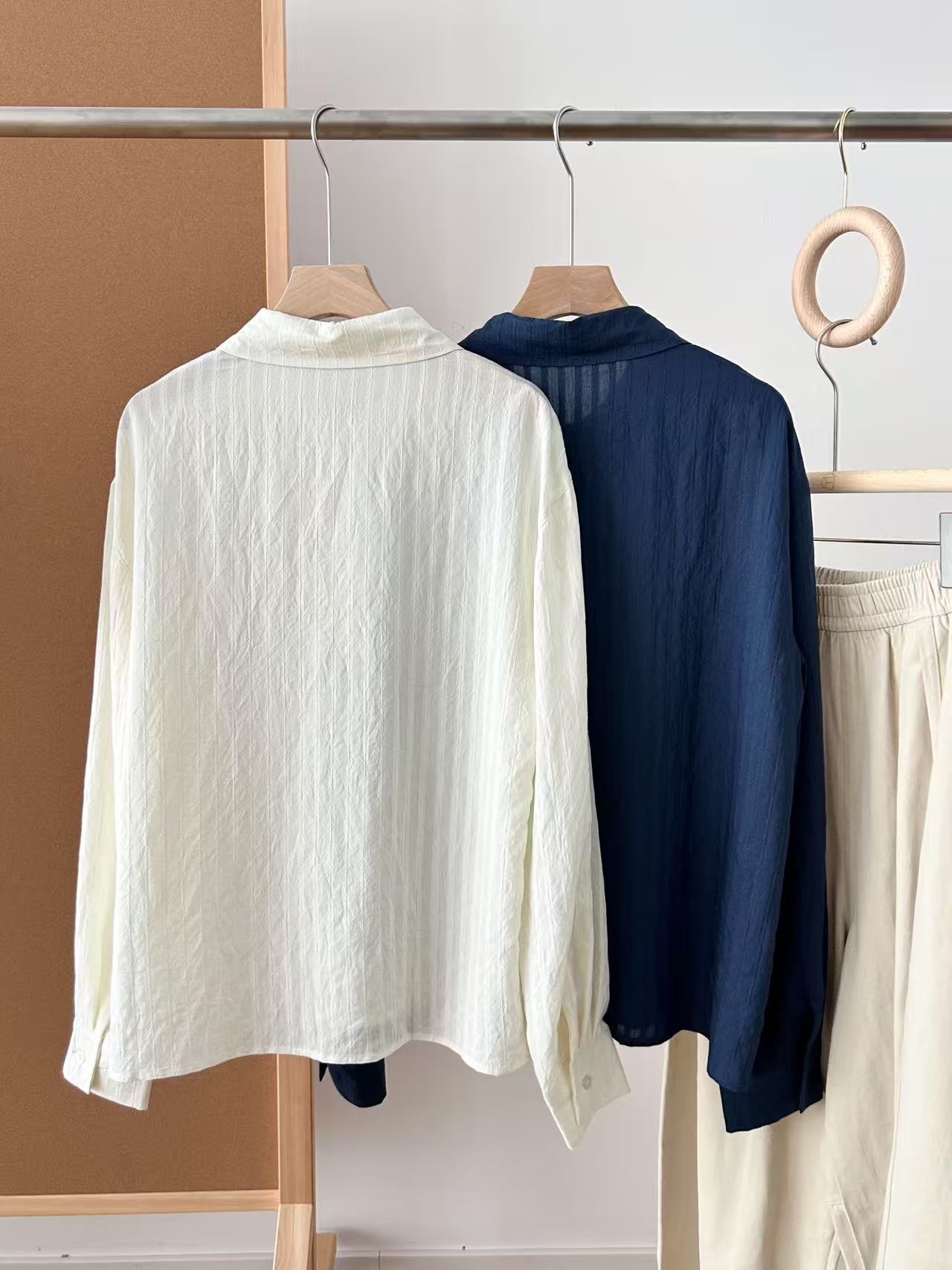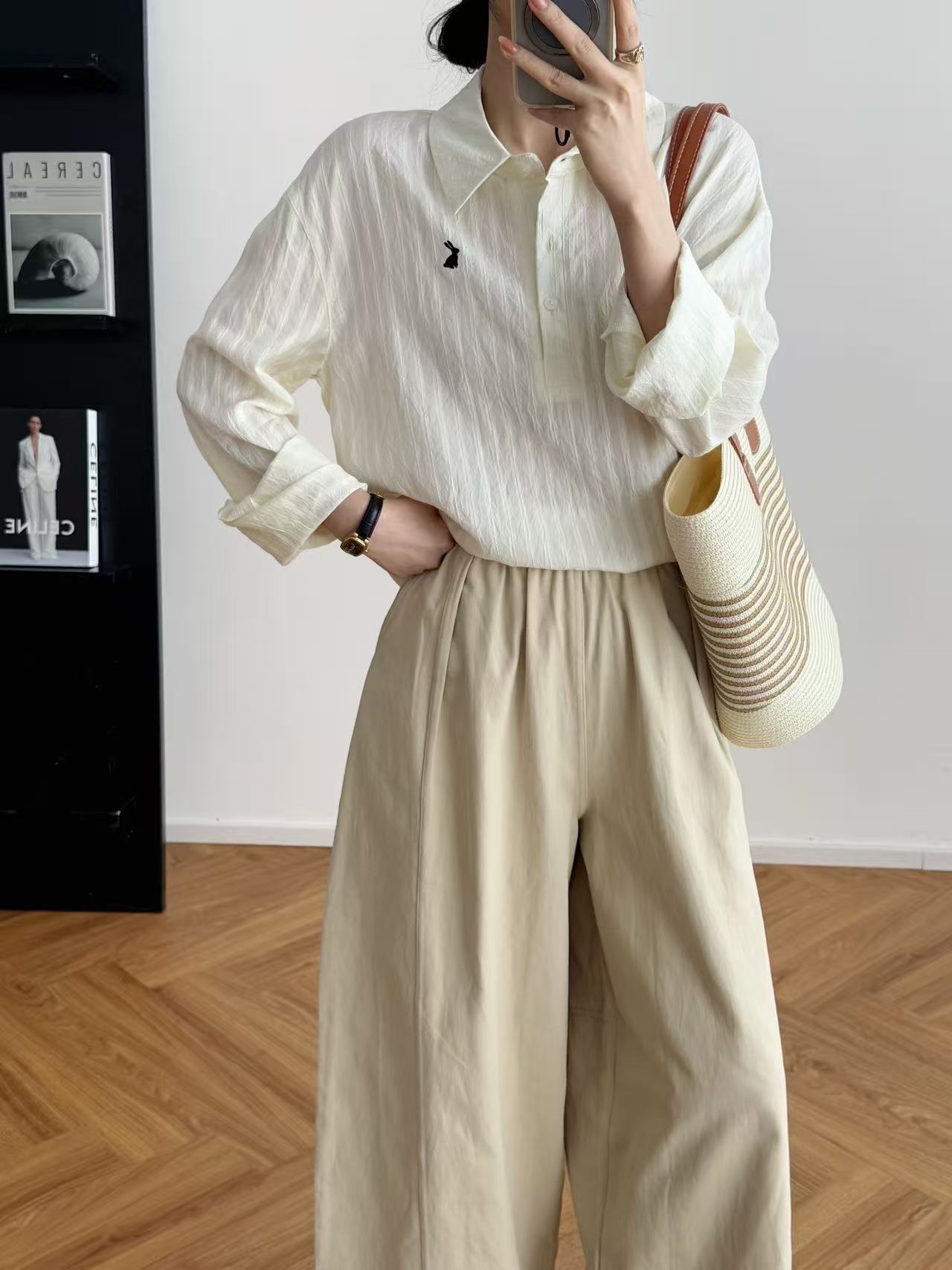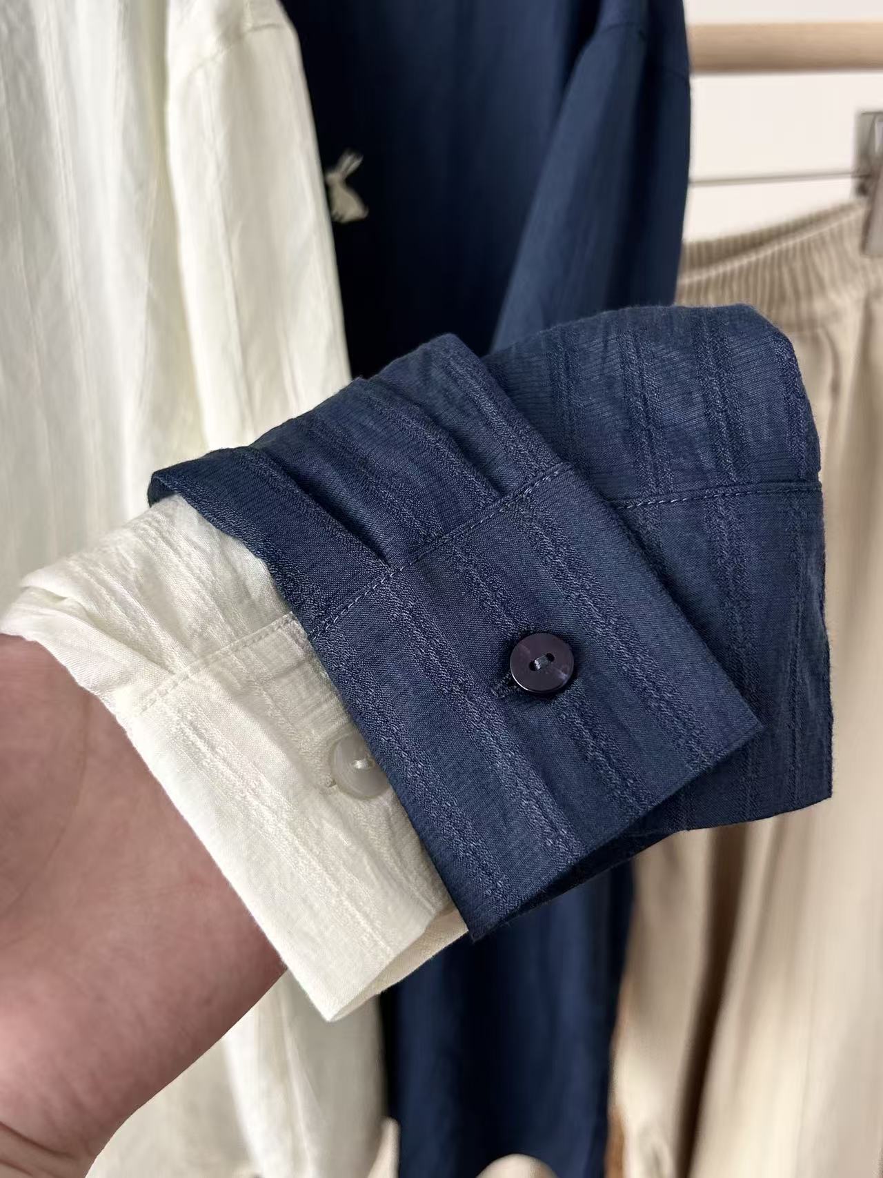 早秋衬衫 小兔刺绣长袖POLO衬衫 提花暗纹在阳光下若隐若现 半开襟POLO领修饰颈部线条