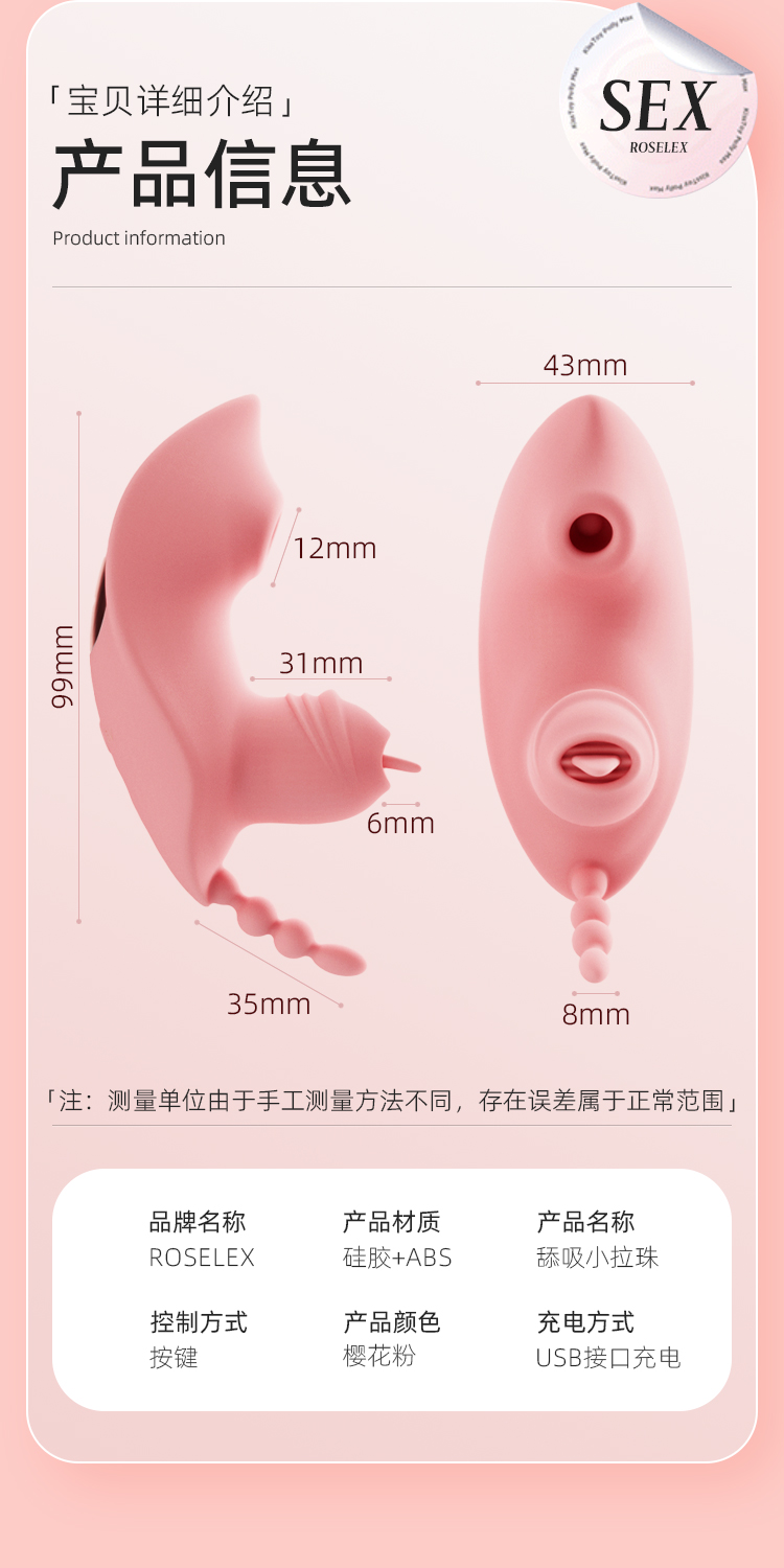 ROSELEX劳乐斯 吸吮舔巢穿戴跳蛋女吸吮舌舔
