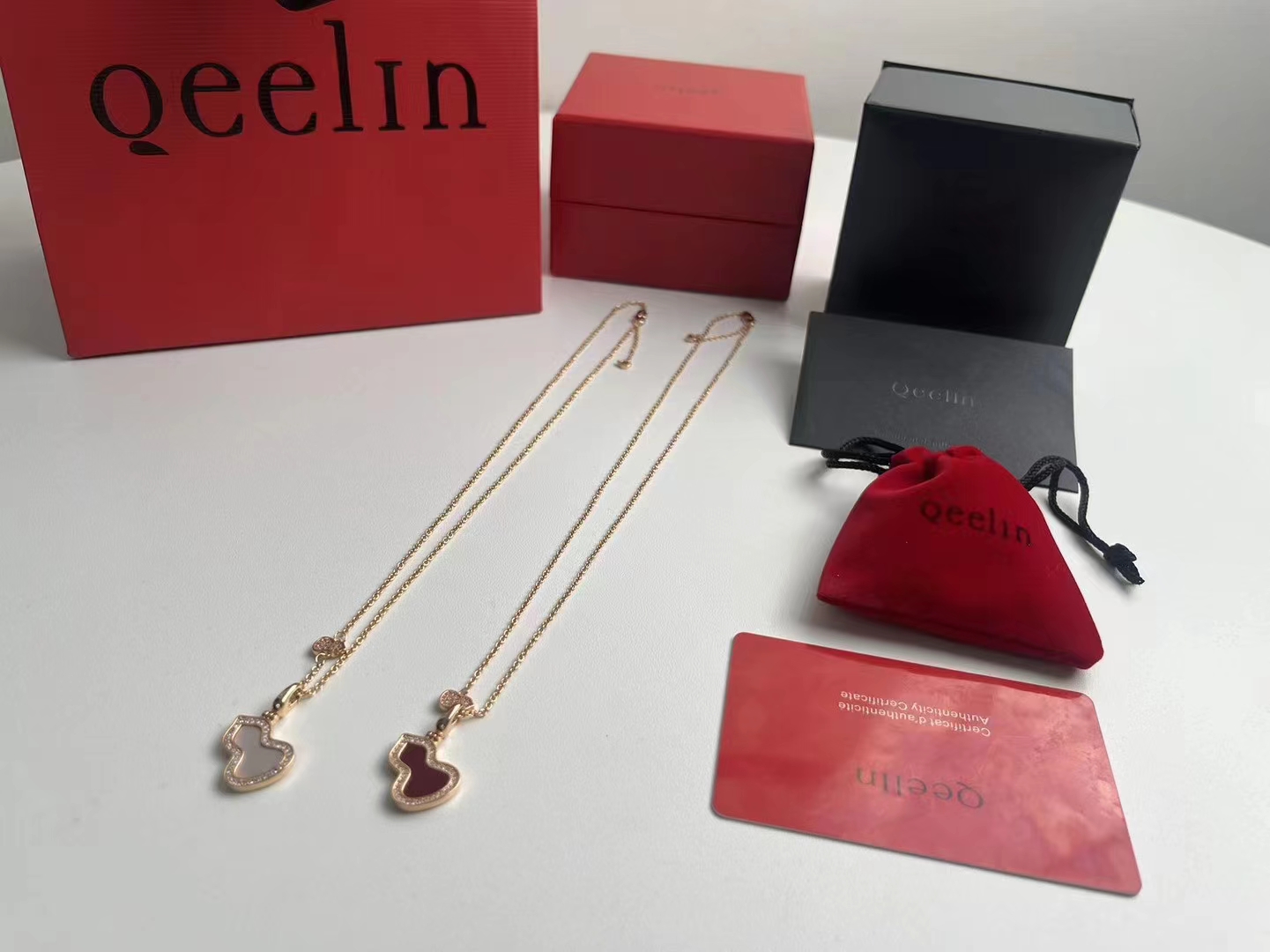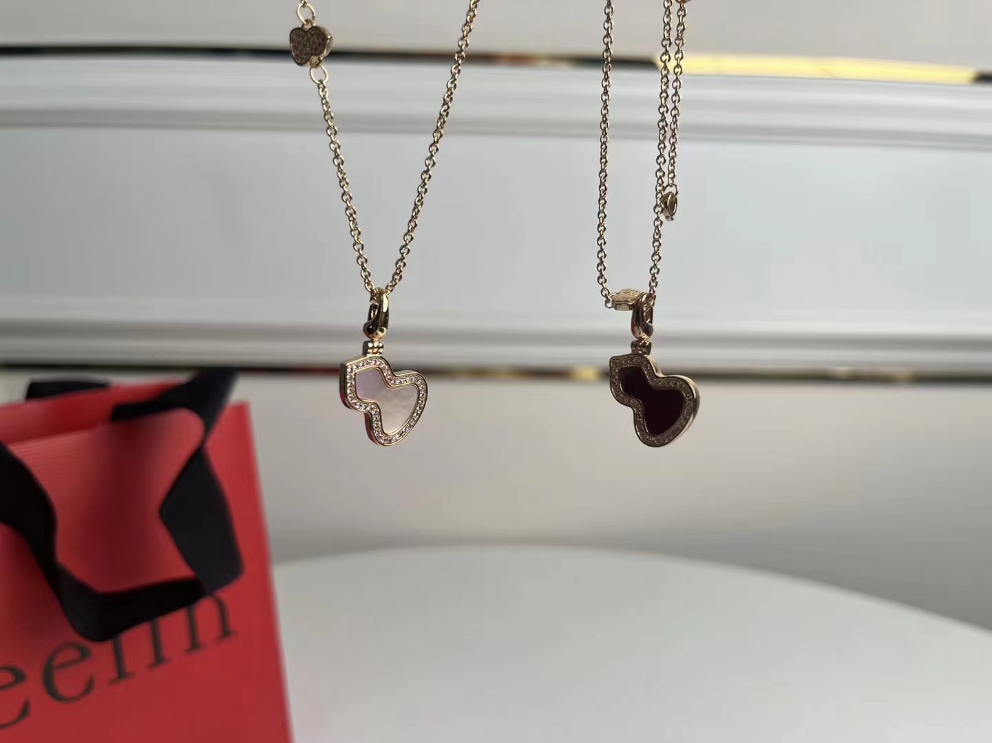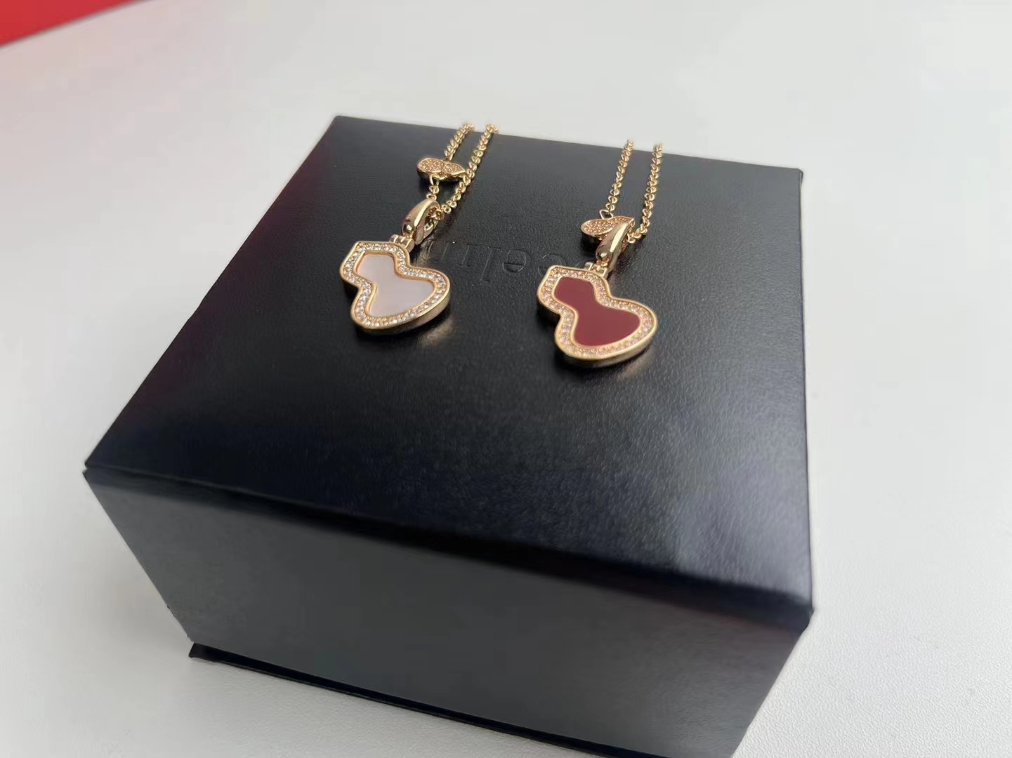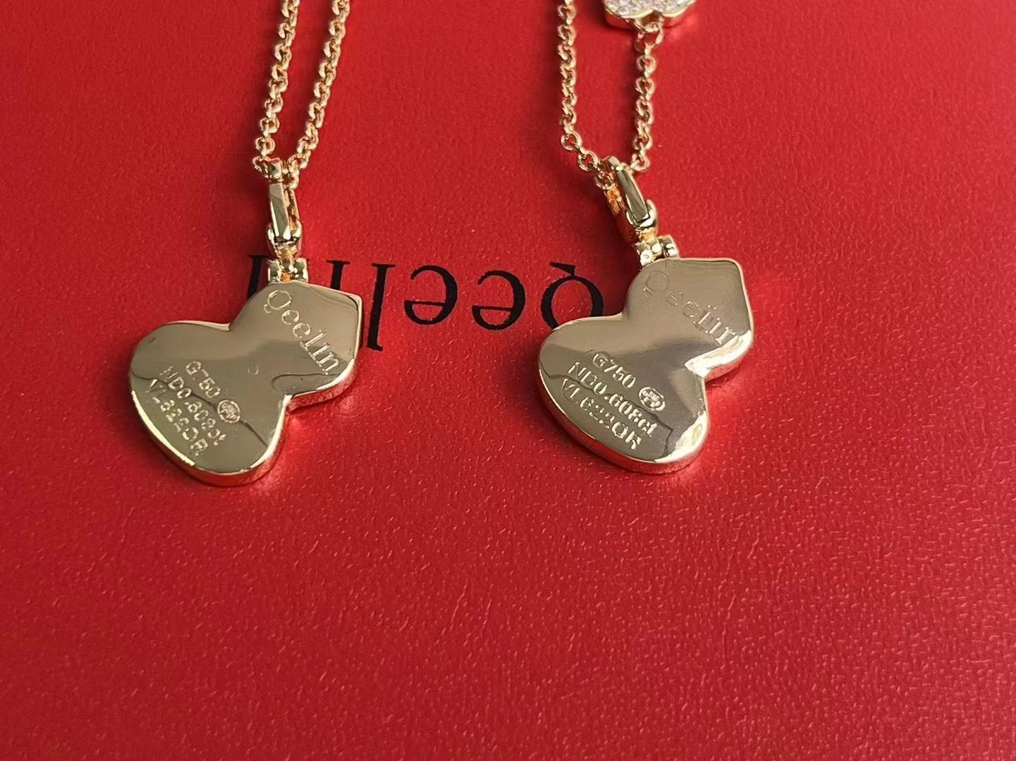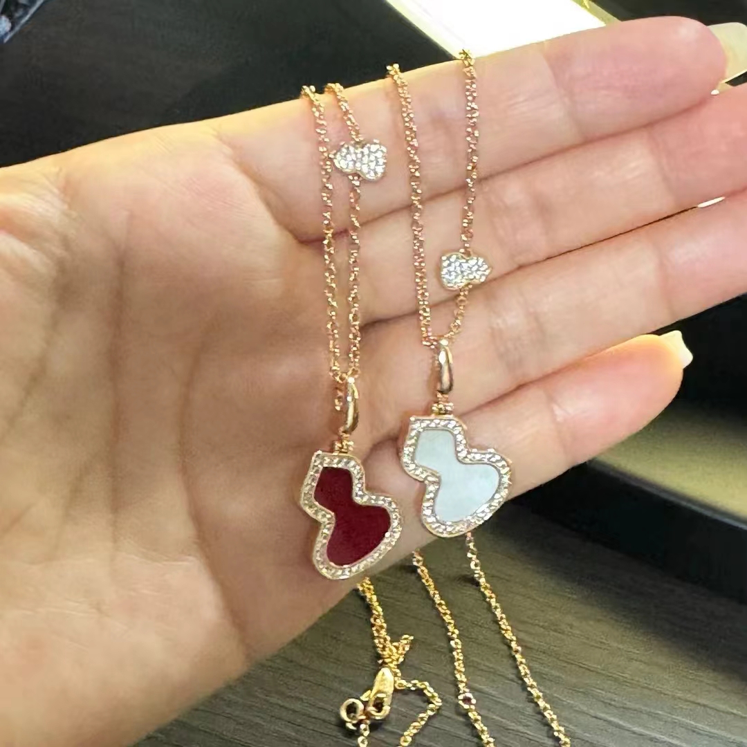 V金材质 糕级贝母天然孔雀石麒麟中号双葫芦项链,高颜值 上身效果很赞 很百搭哦 镀厚金 真金质感一 流的 八心八箭高碳钻 小而精 致 戴出去就说是真金的