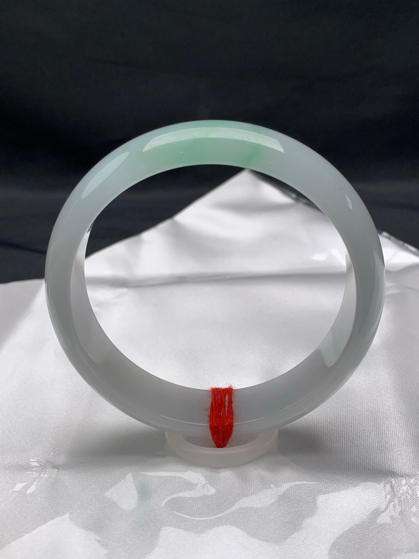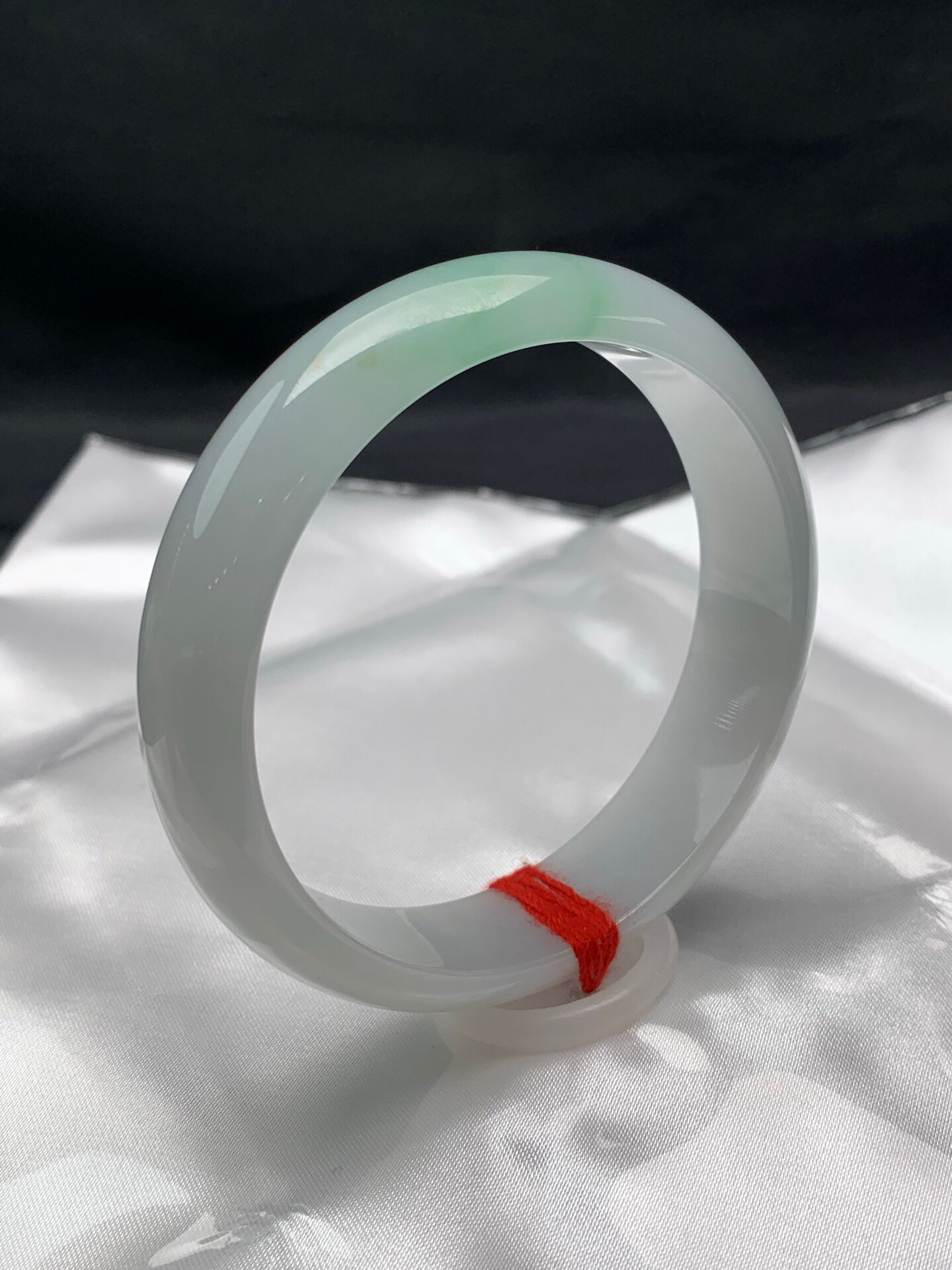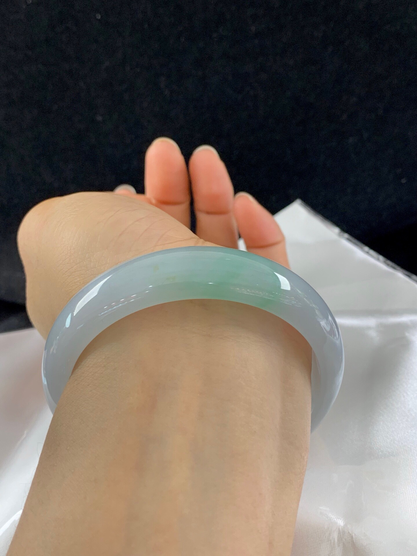 612673,60圈口,冰飘绿正圈平安镯,宽版大圈口,白底飘甜绿花,底子细润,完美无裂,尺寸:60-15.3-7.1,超值价💰34500 #优石客珠宝#香玉荟萃