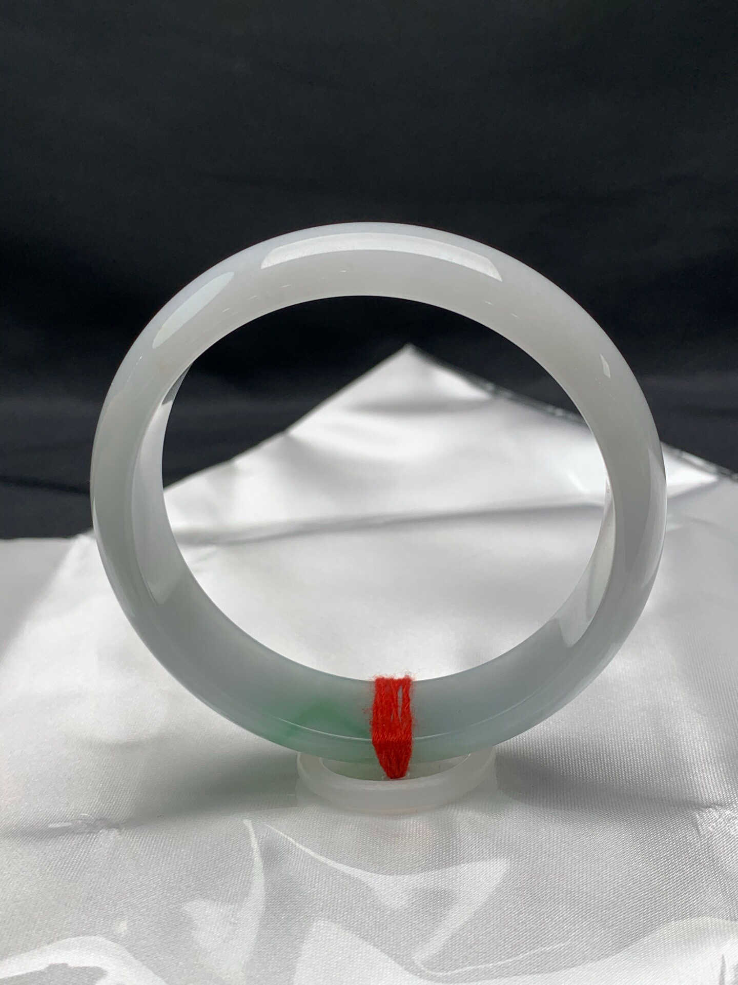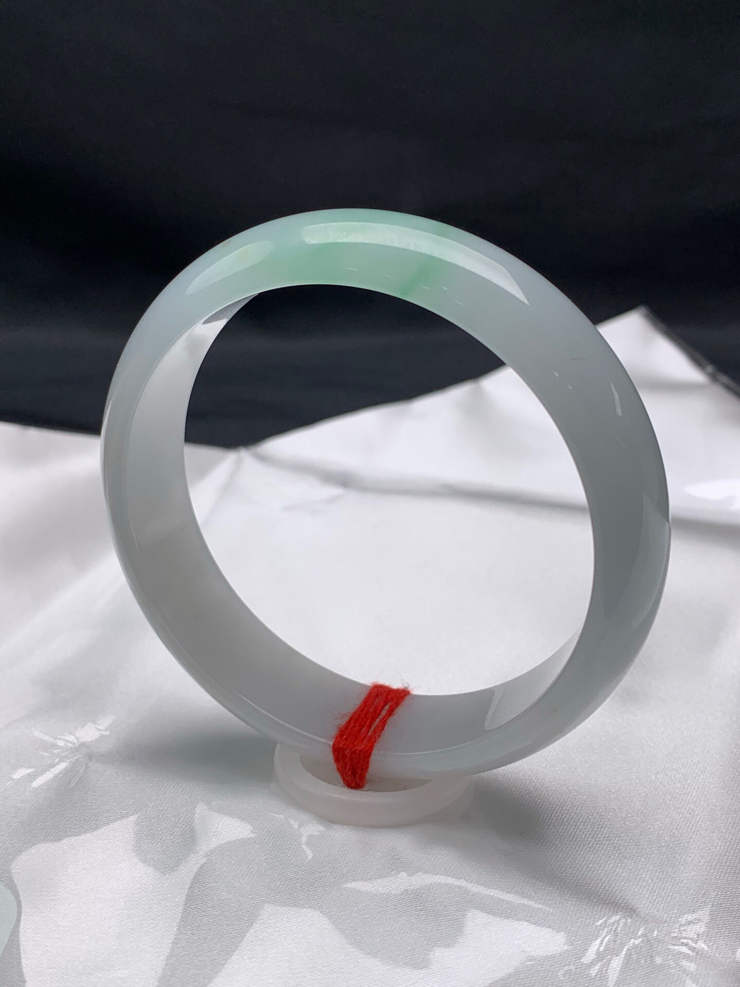 612673,60圈口,冰飘绿正圈平安镯,白底飘甜绿花,底子细润