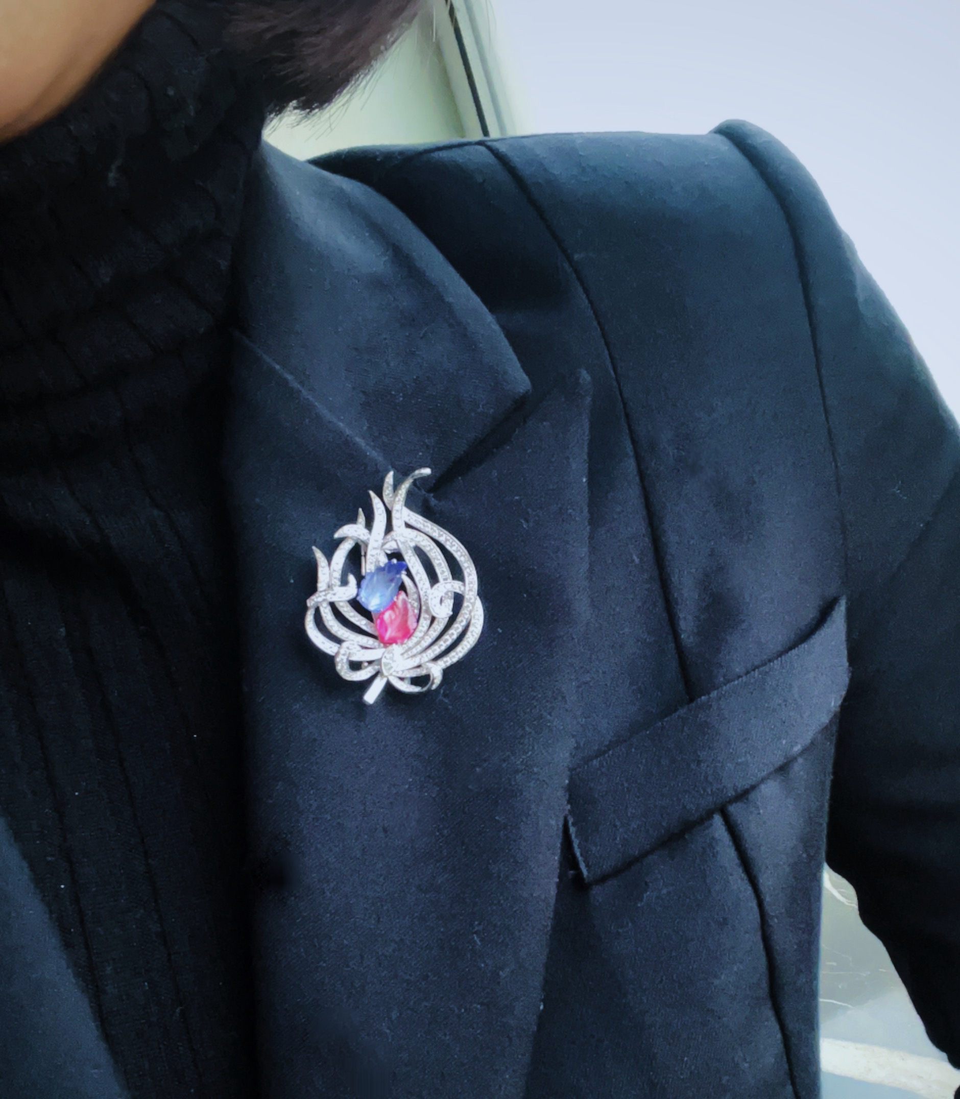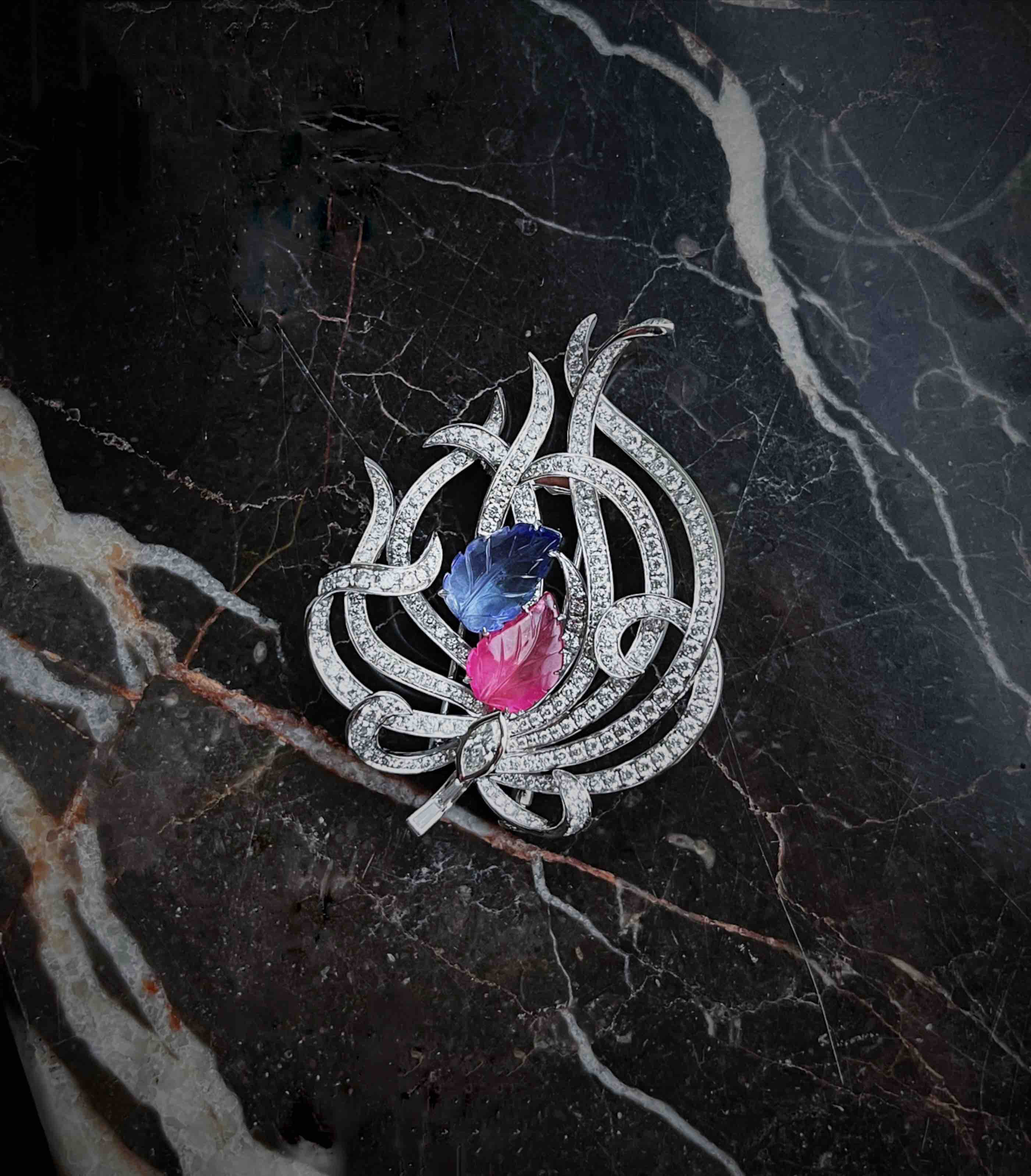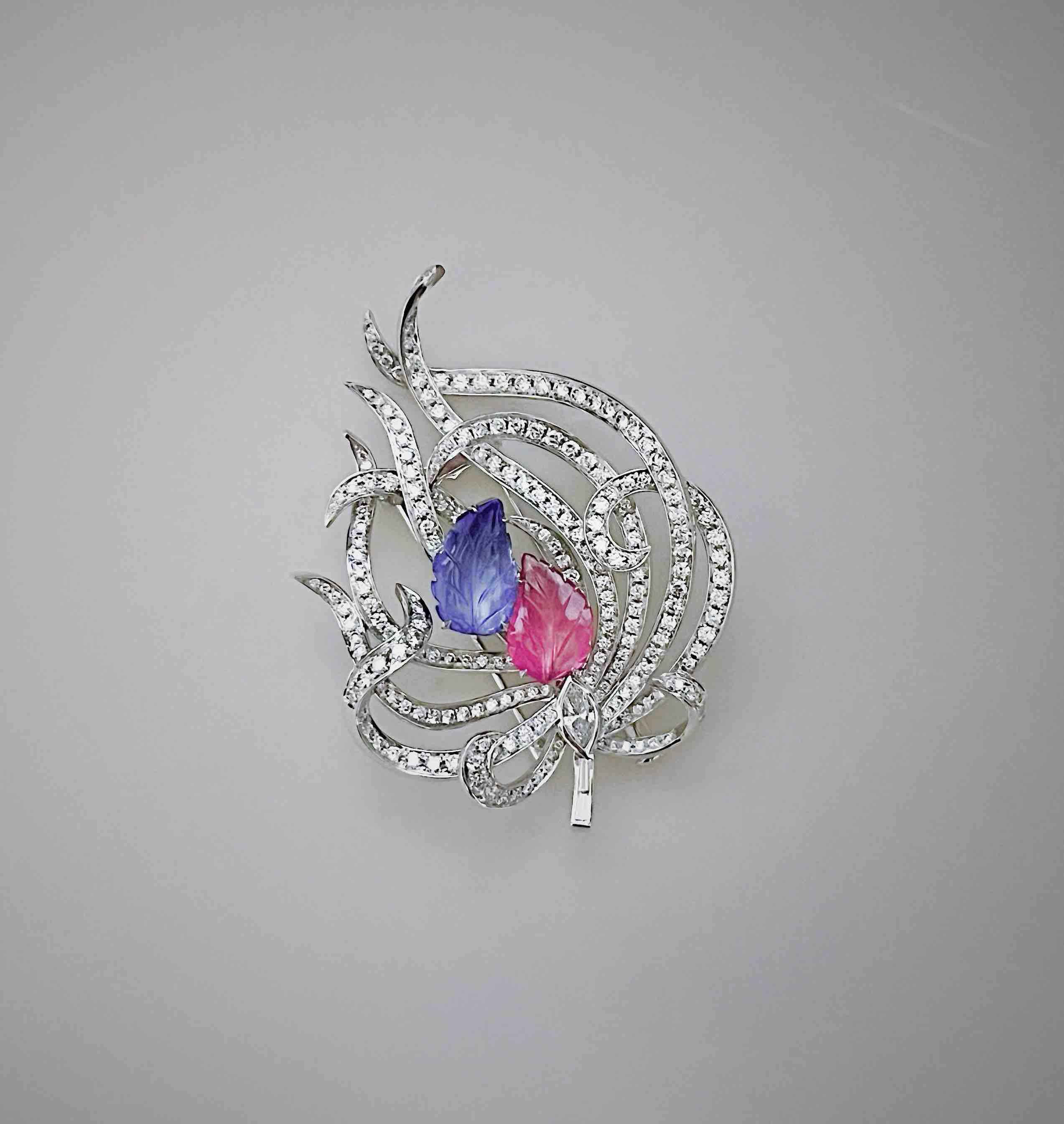 作品名称:18K镶钻石、坦桑石和碧玺 胸针
