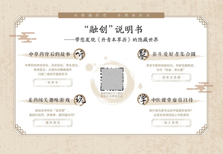 《丹青本草历》是一本能“听”的健康日历!以“丹青”为骨,“本草”为心,精选明代珍本医籍53幅精美本草工笔画作,配以中医药文化科普内容。一本日历+一部手机,带您体验集有声书、中医趣味游戏、读者交流圈等多种功能于一体的融合出版日历产品。