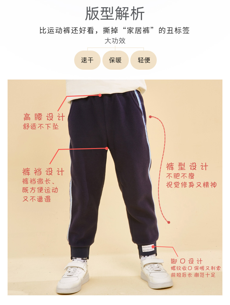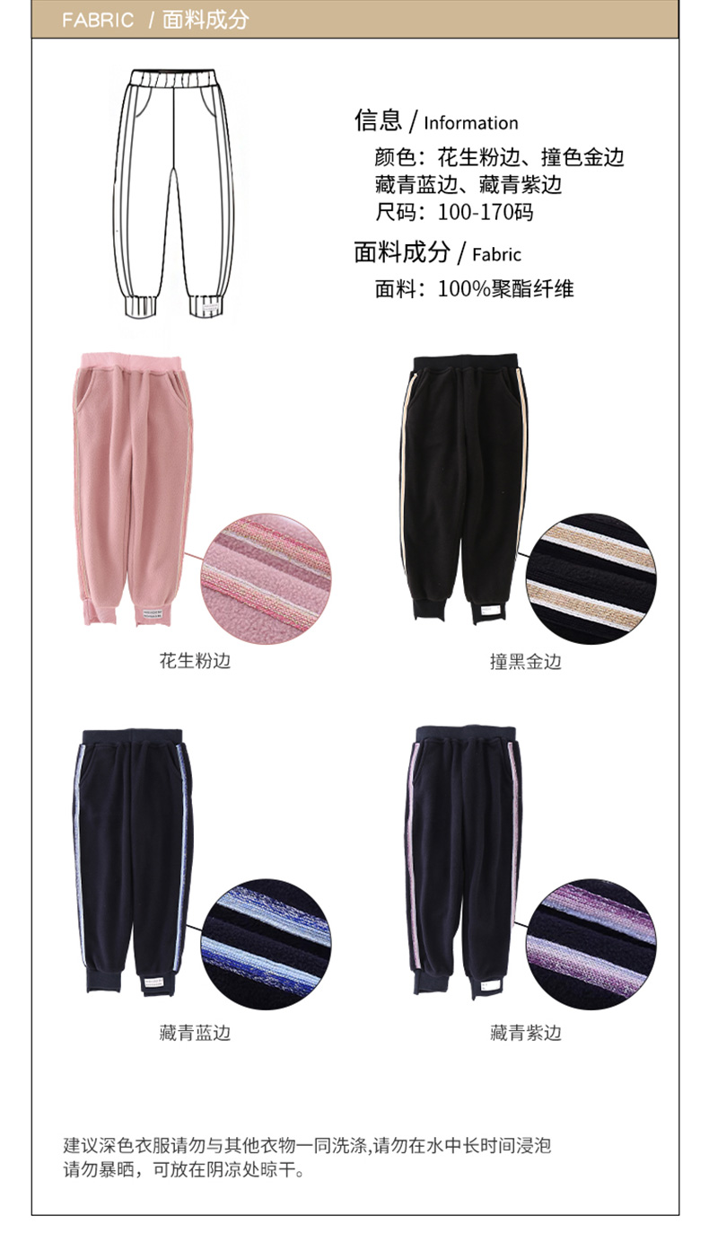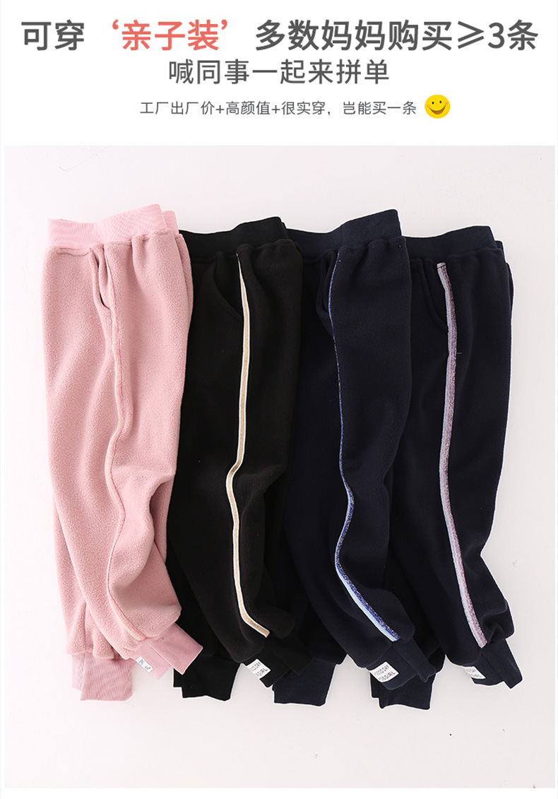 【2025反季抄底清仓】19.9元龙之涵 亲子款闪亮条摇粒绒卫裤 儿童贴边摇粒绒卫裤 中大童早春保暖长裤 抗静电 A类标准 热卖爆款