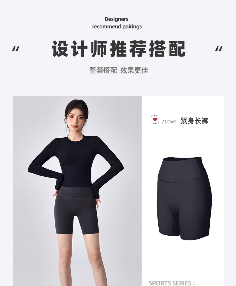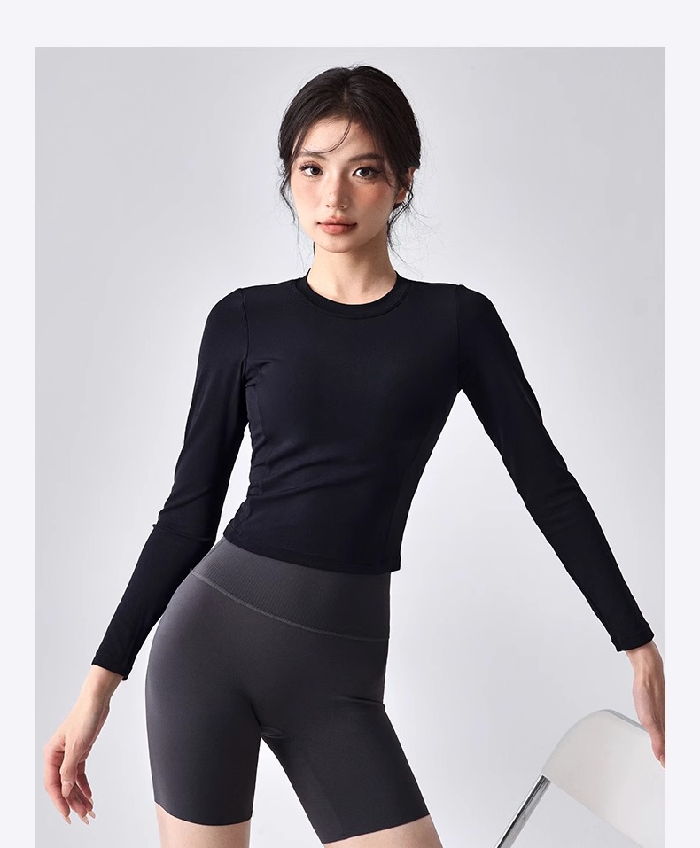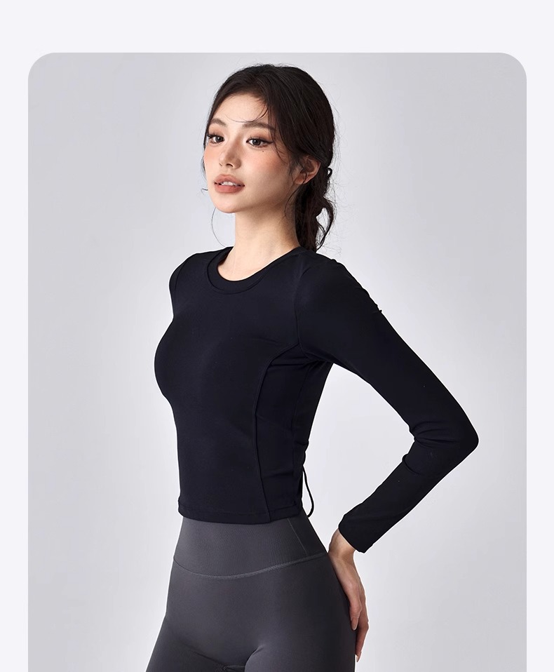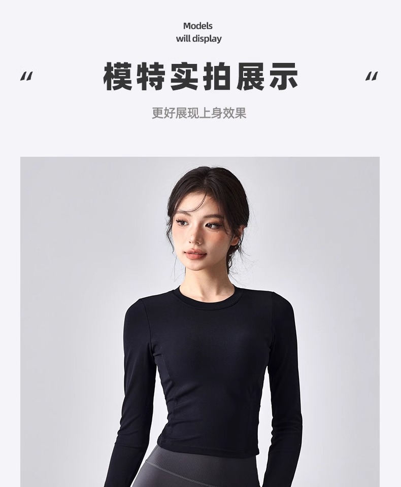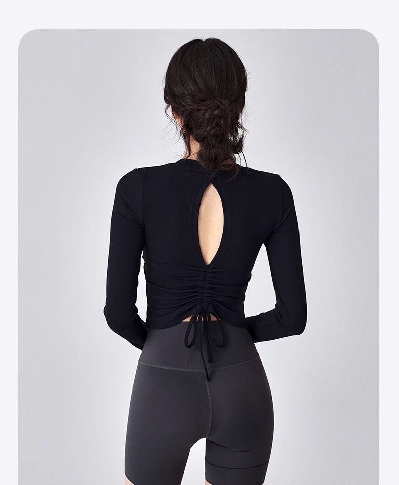 跃牌【瑜堂系列】新款美背瑜伽服女褶皱修身健身上衣自带胸垫跑步运动长袖JYMC112