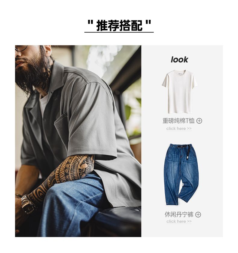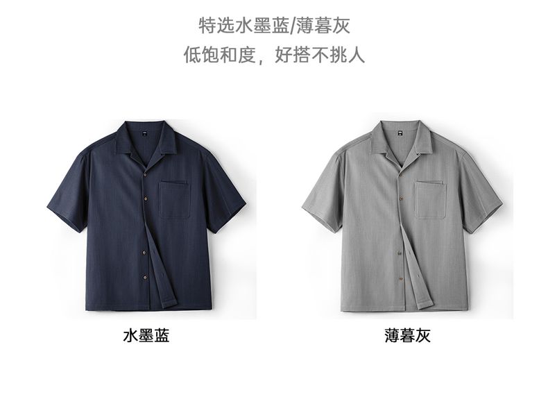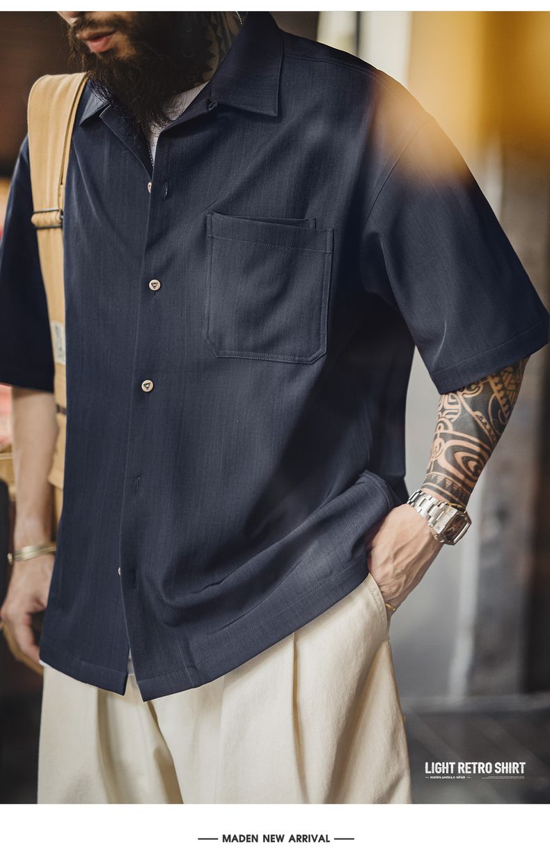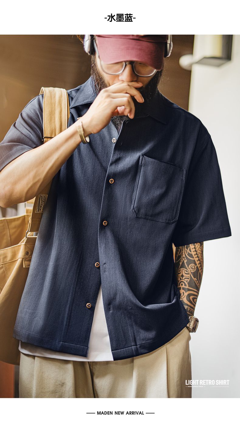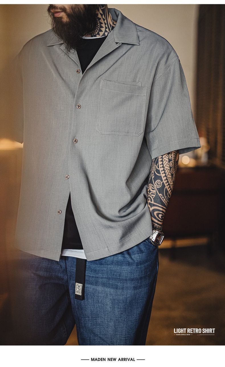 工装优选美式复古巴领衬衫老钱风宽松垂感cleanfit衬衣短袖外套男