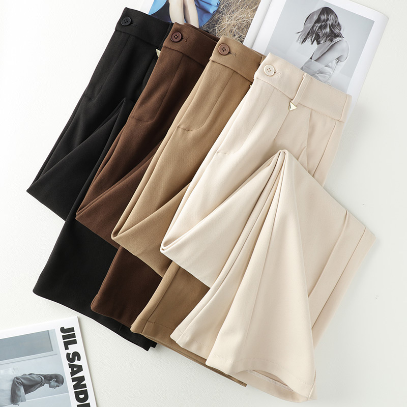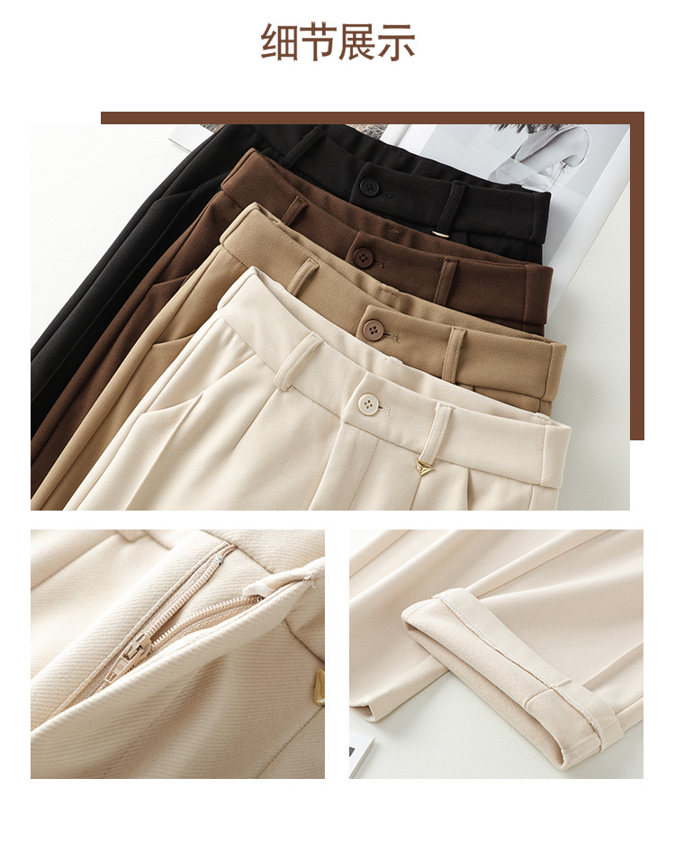 窄版直筒裤女秋冬新款高腰休闲裤显瘦呢子垂坠感阔腿女裤子💕