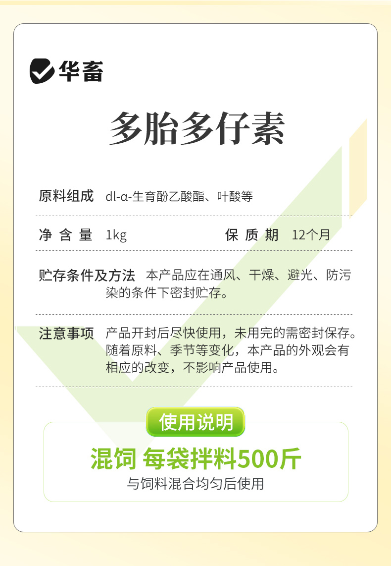 华畜多胎多仔素兽用母猪促排卵好配种叶酸生育酚维生素E发情粉剂