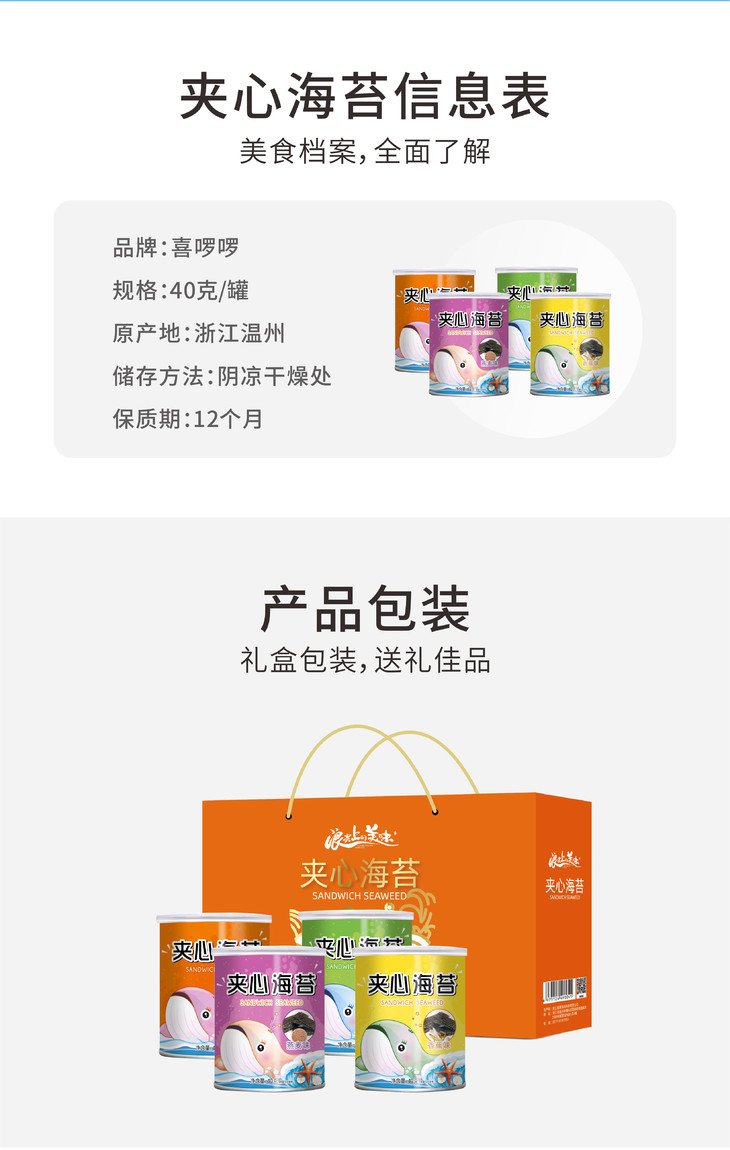 喜康食品(喜啰啰)夹心海苔 8罐礼盒装(共320克)【洞头特产】满88元顺丰江浙沪皖包邮