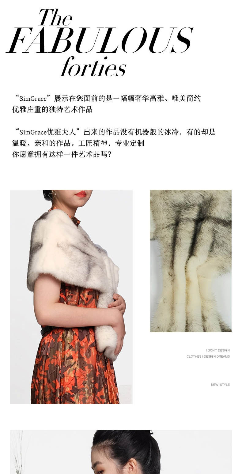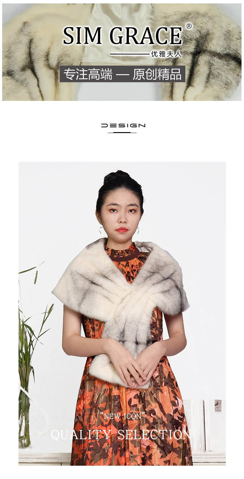 SIM GRACE优雅夫人 女士新品搭配晚礼服秋冬进口水貂毛保暖时尚