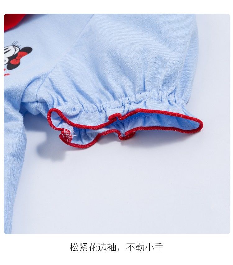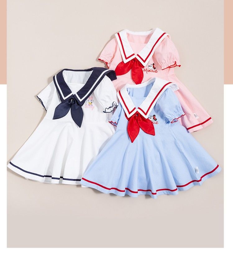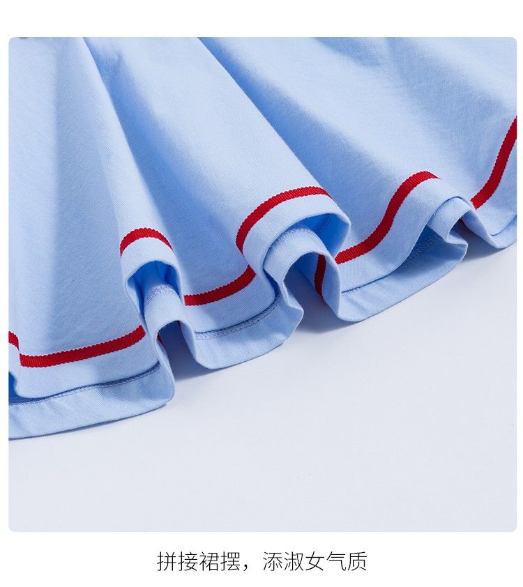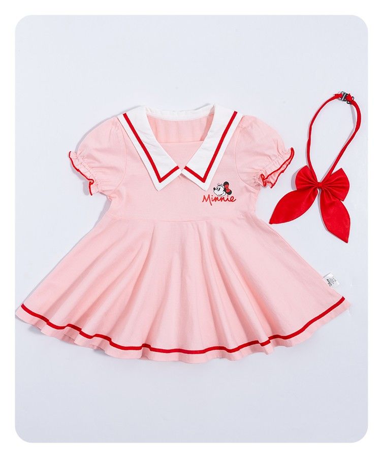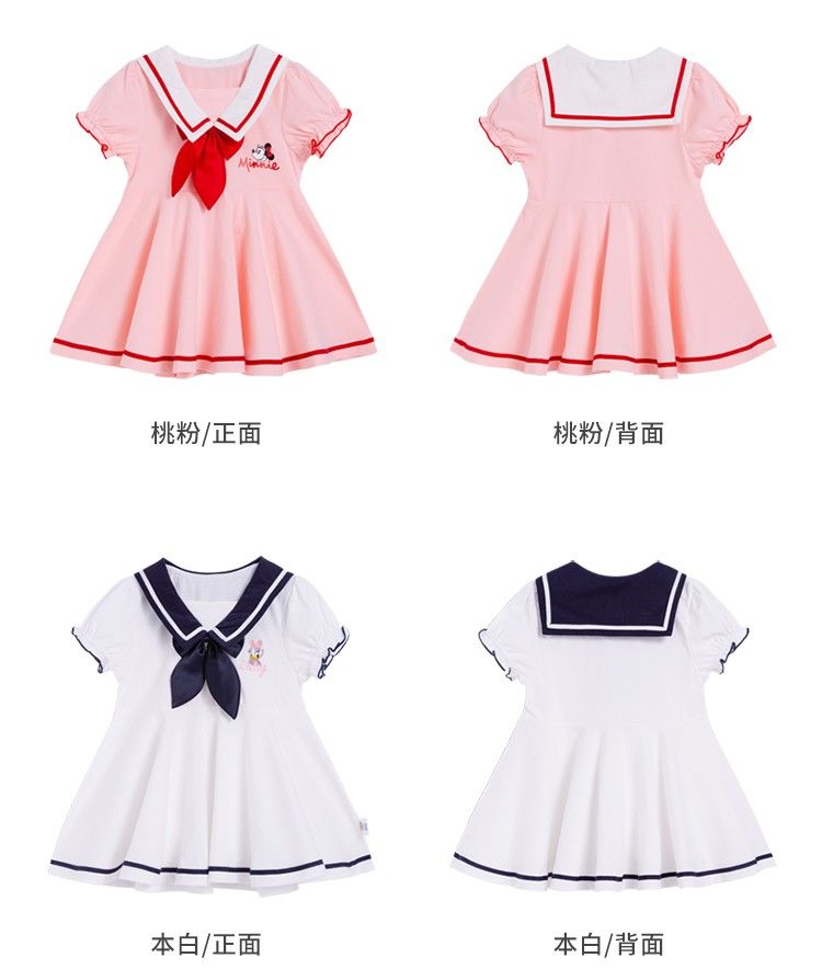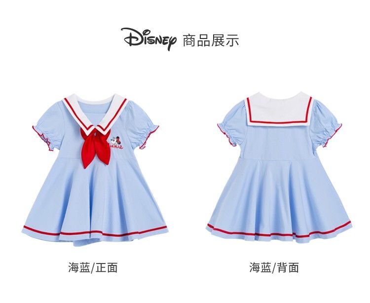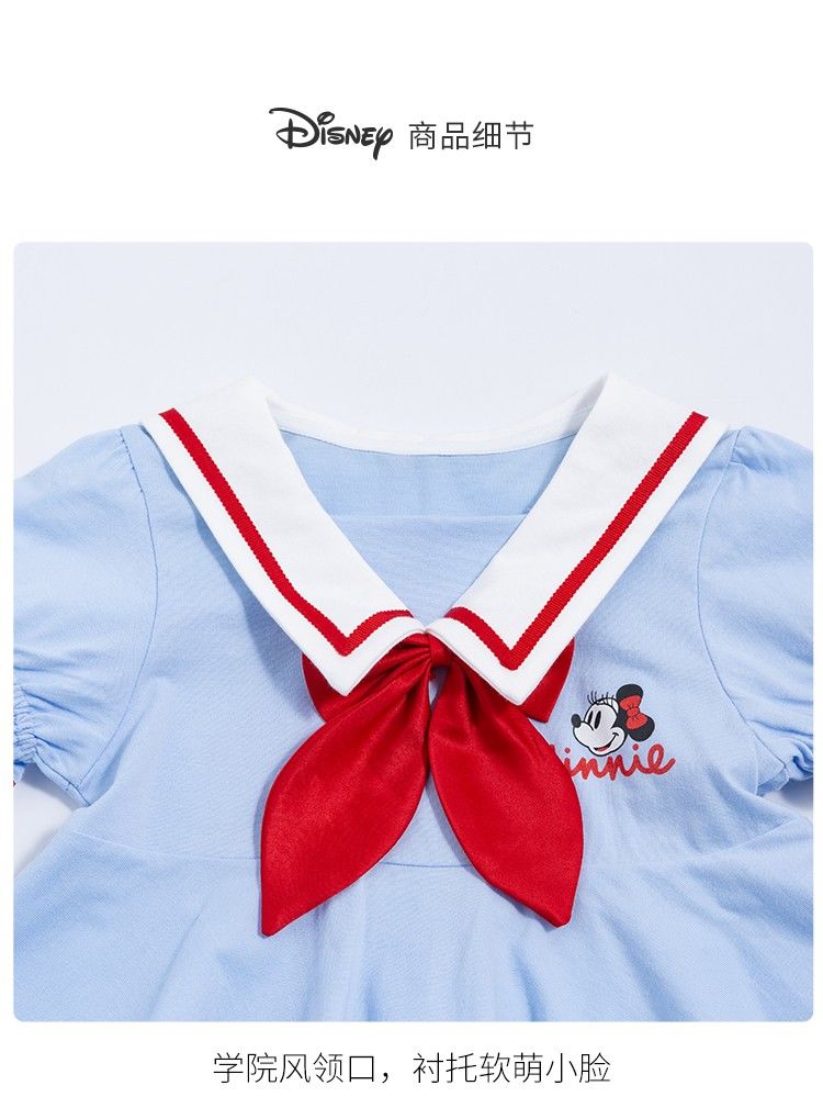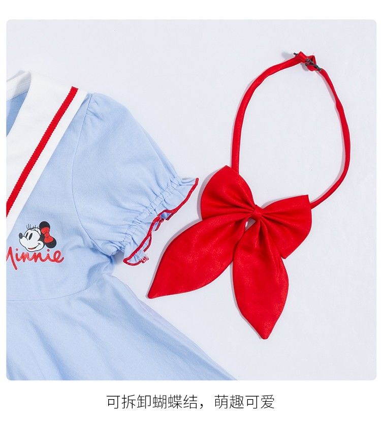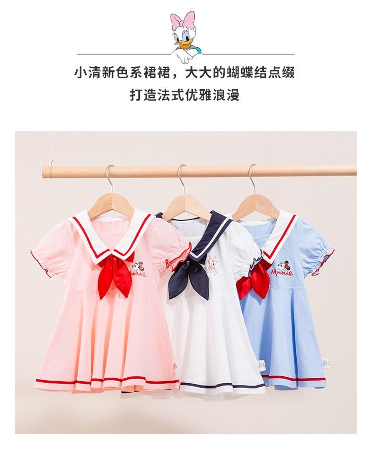 迪士尼童装 儿童连衣裙夏季新款女童学院风裙子短袖裙蝴蝶结
