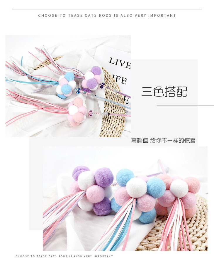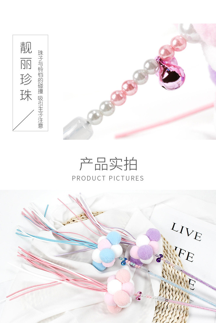 逗猫手工羽毛绒球流苏逗猫杆斗幼成猫宠物猫咪玩具仙女逗猫棒