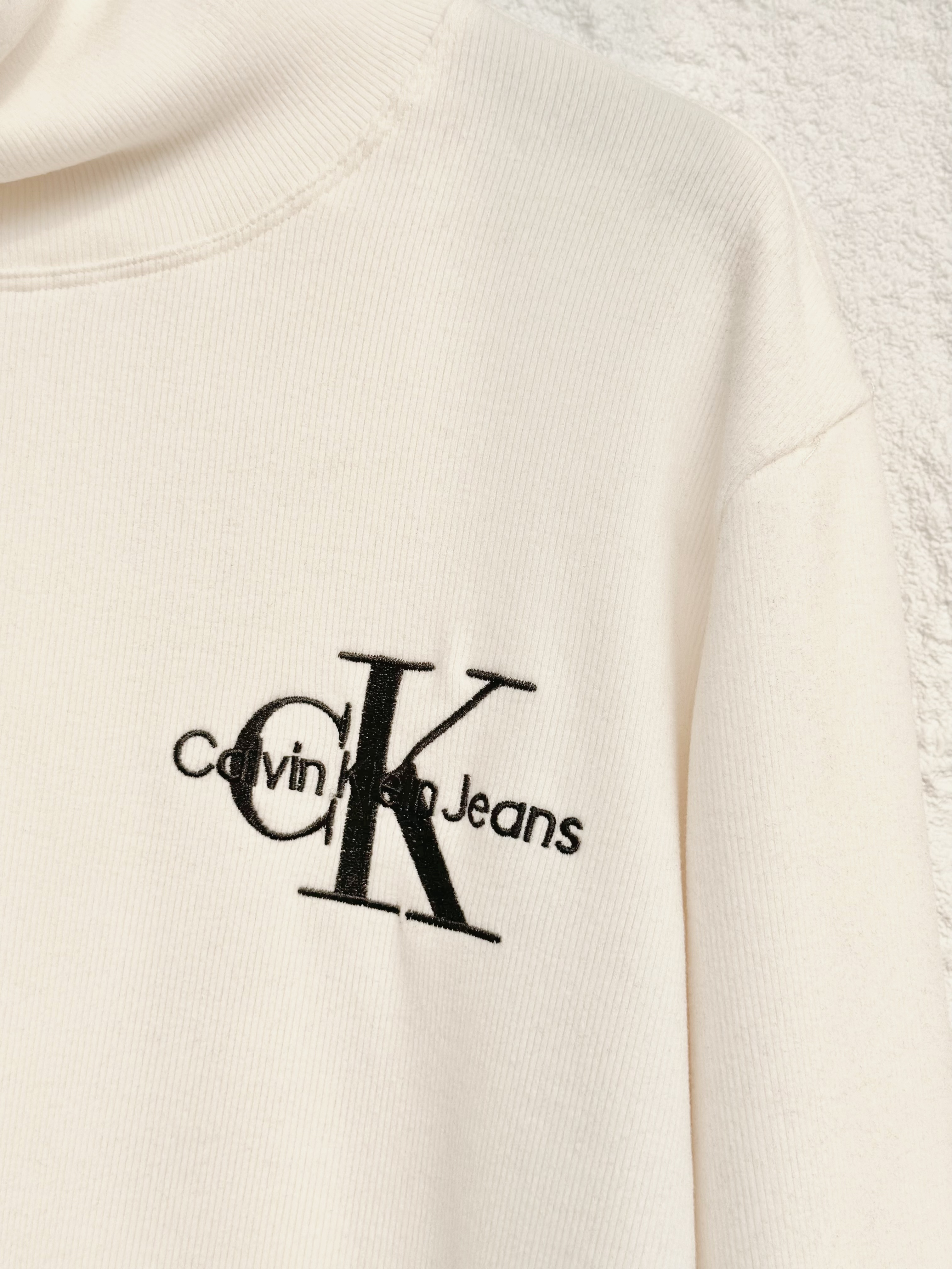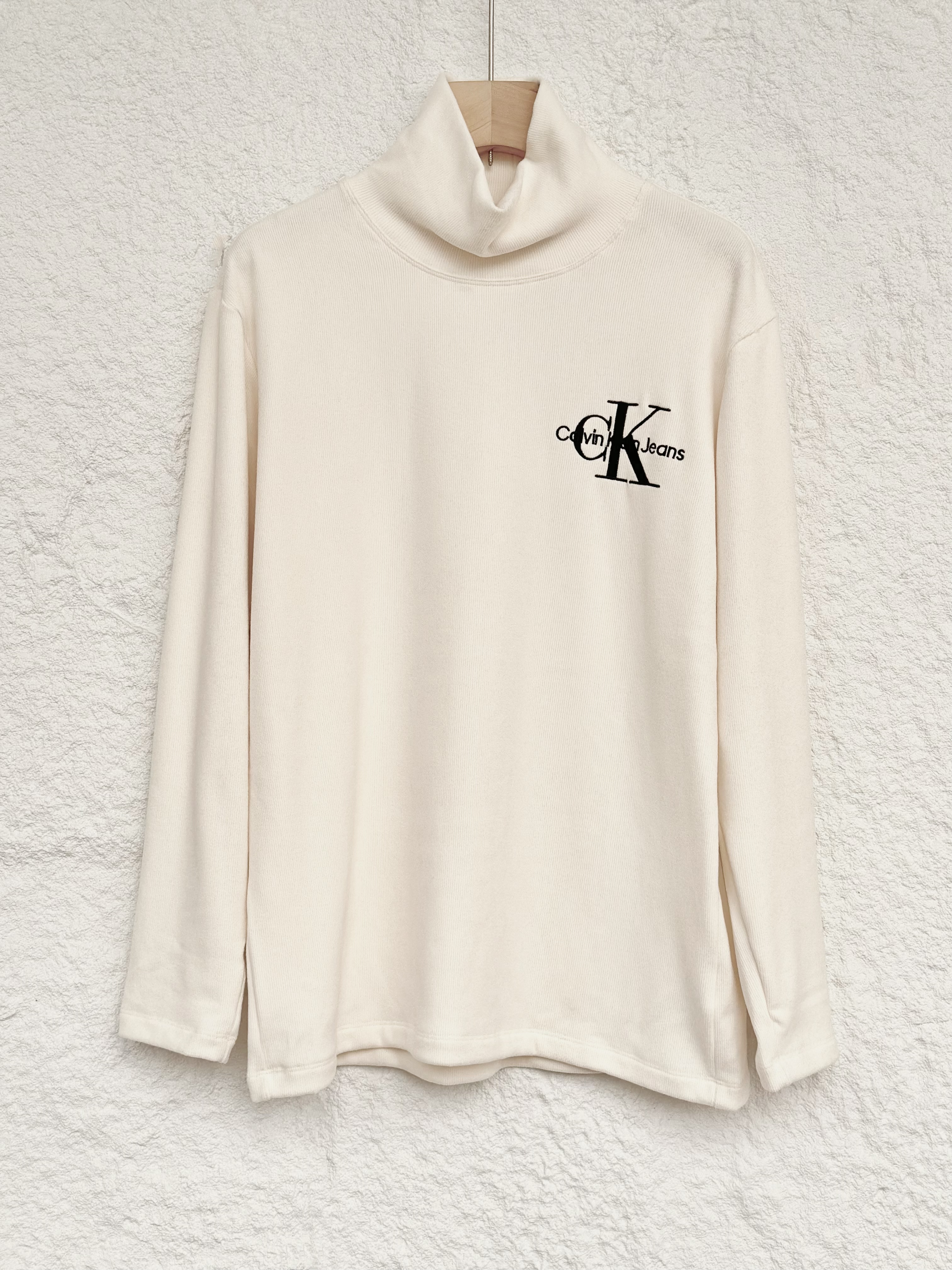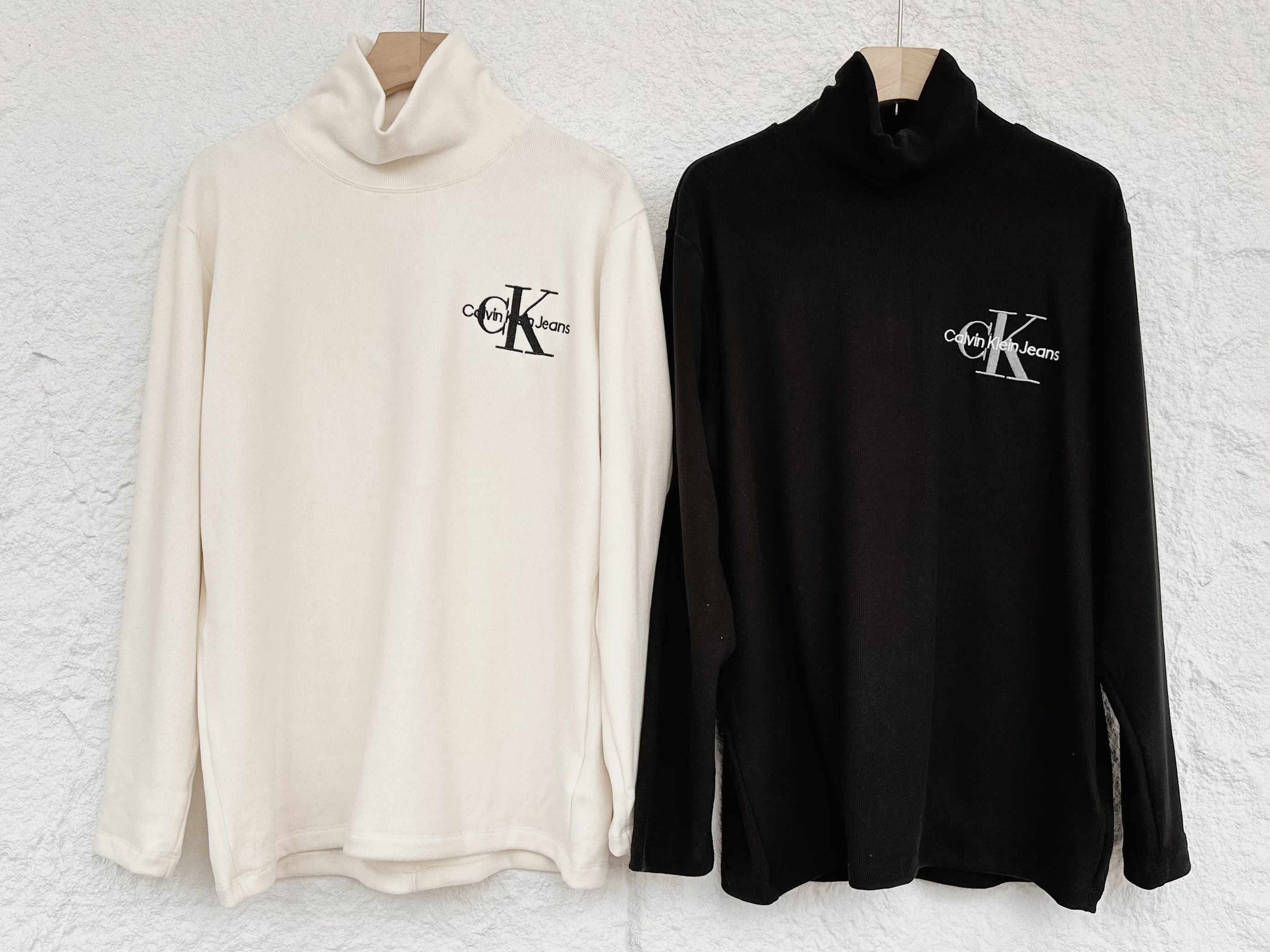 清仓,万能打底自好穿又百搭!!CK Jeans 男女同款高弹软糯字母刺绣高领竖条磨毛T恤打底衫
