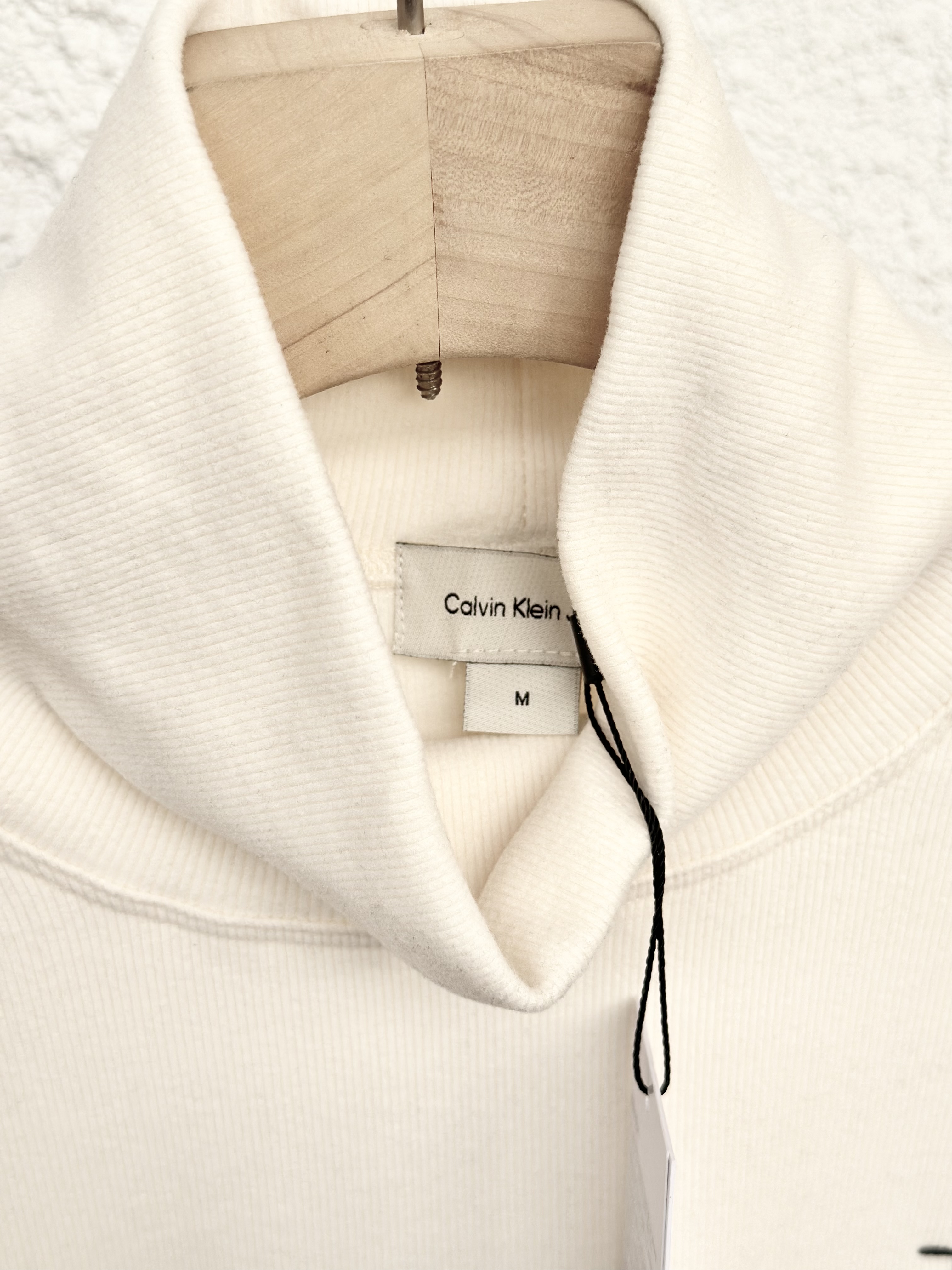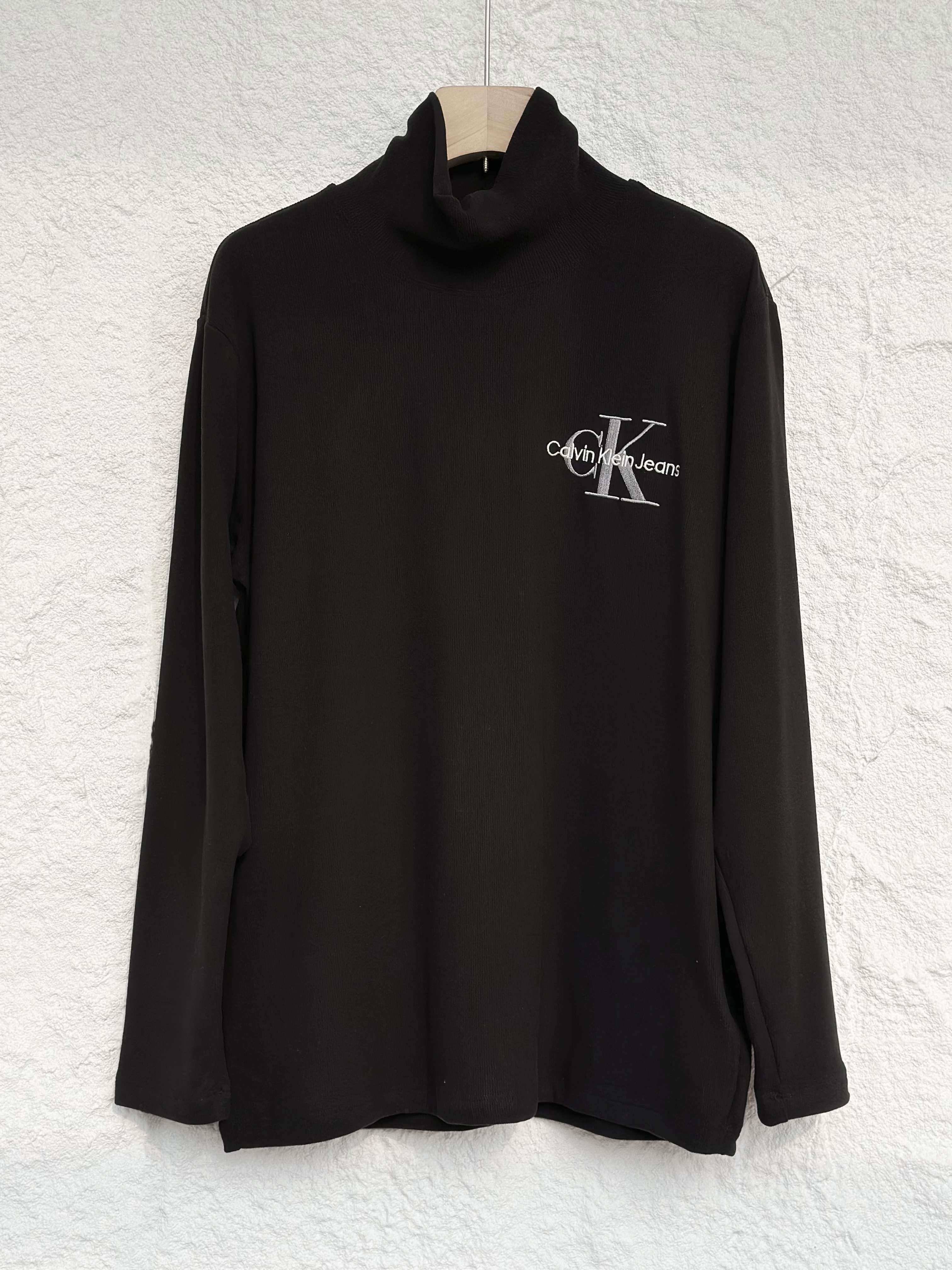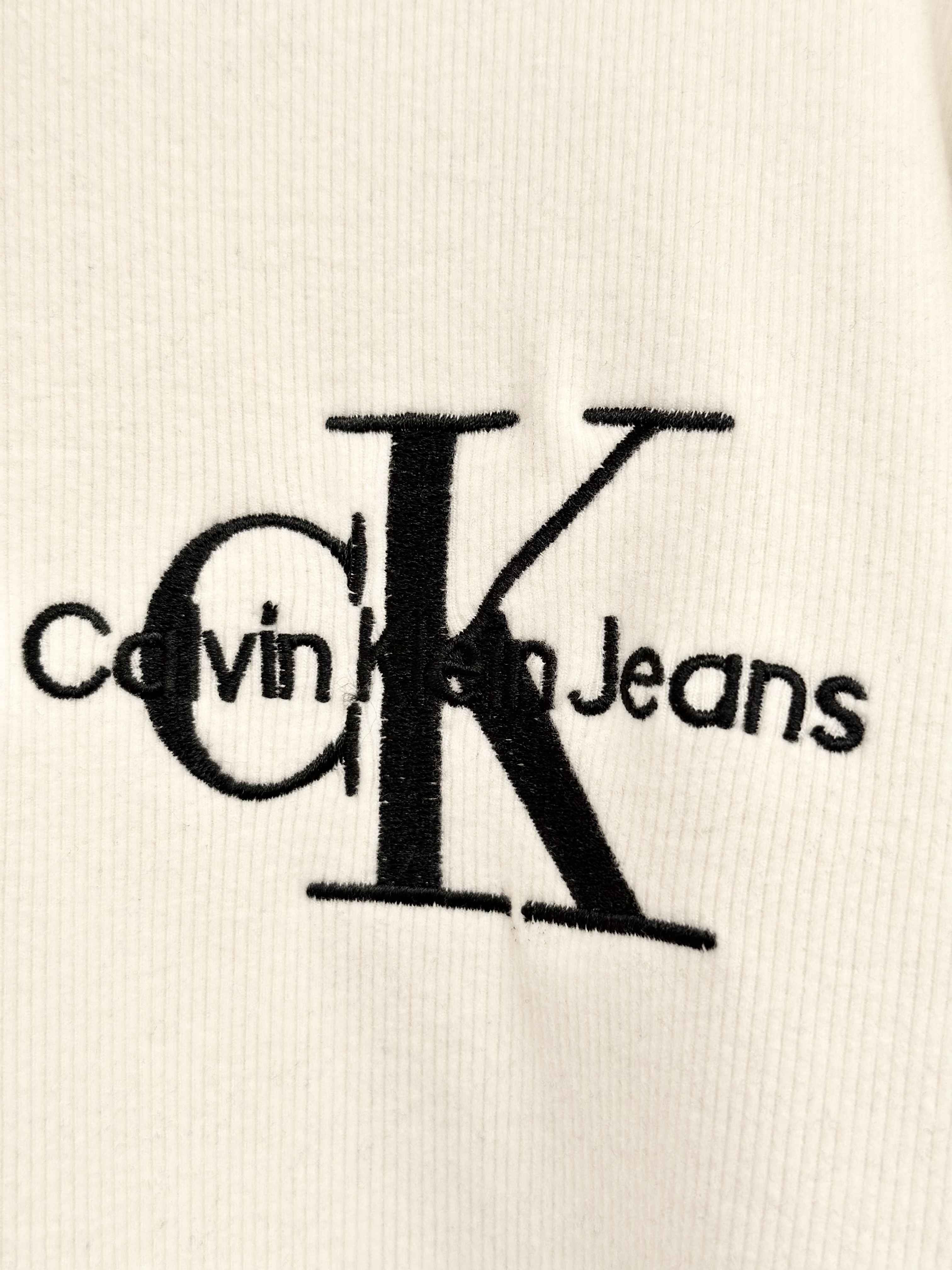 清仓,万能打底自好穿又百搭!!CK Jeans 男女同款高弹软糯字母刺绣高领竖条磨毛T恤打底衫
