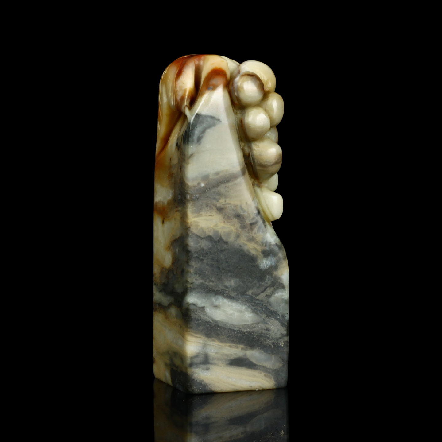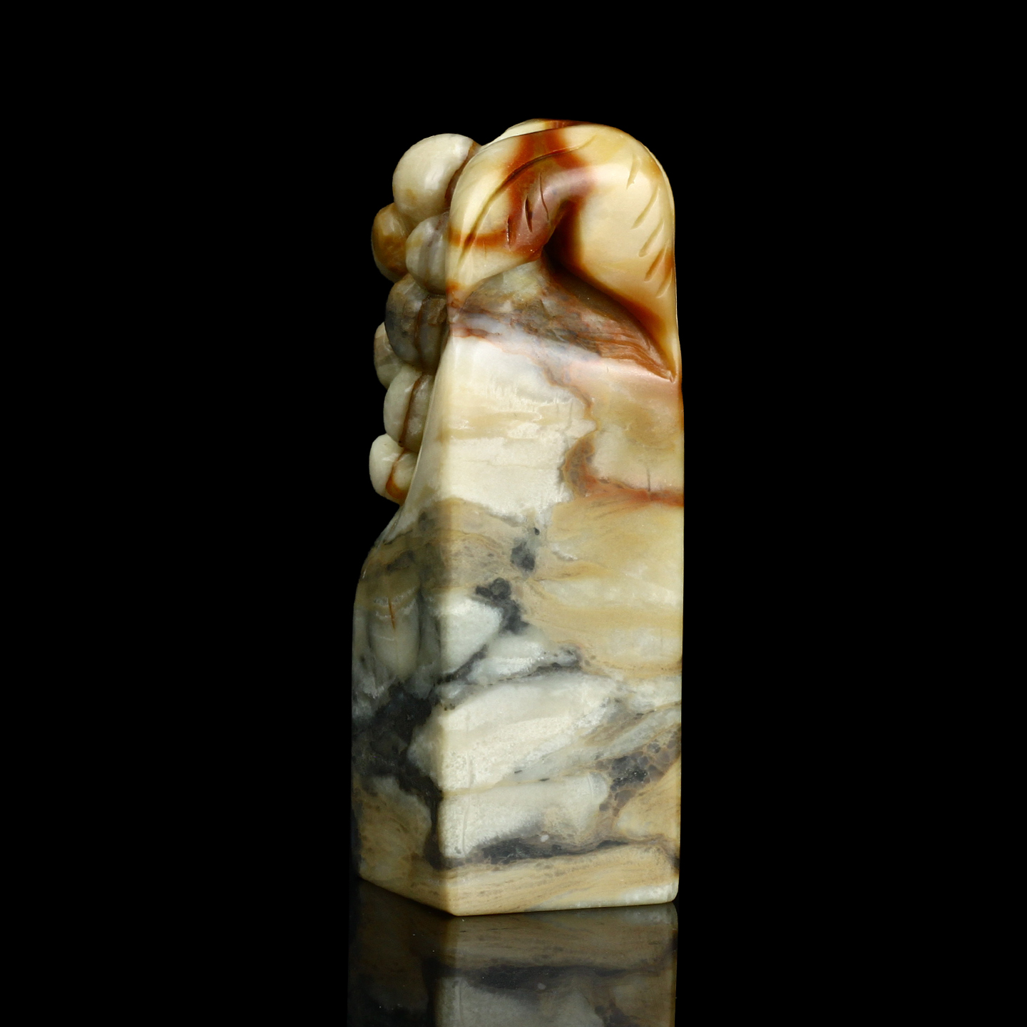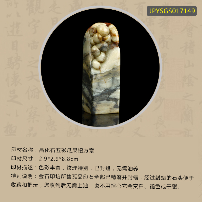 孤品017149-昌化石五彩瓜果钮方章-2.9*2.9*8.8cm
