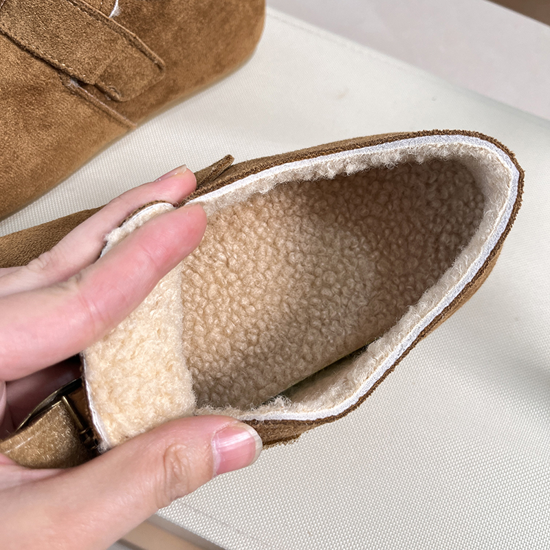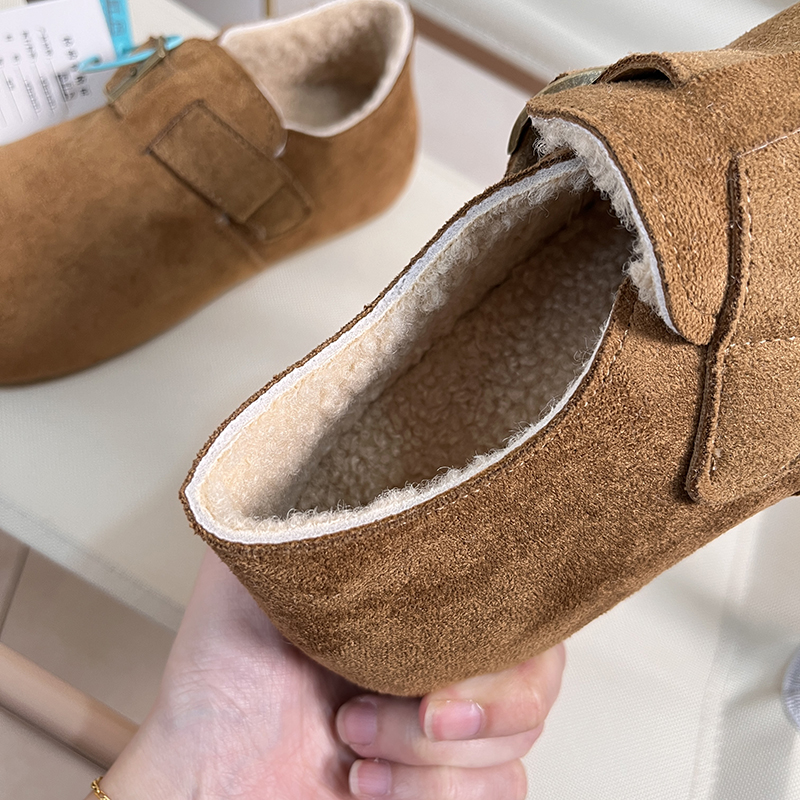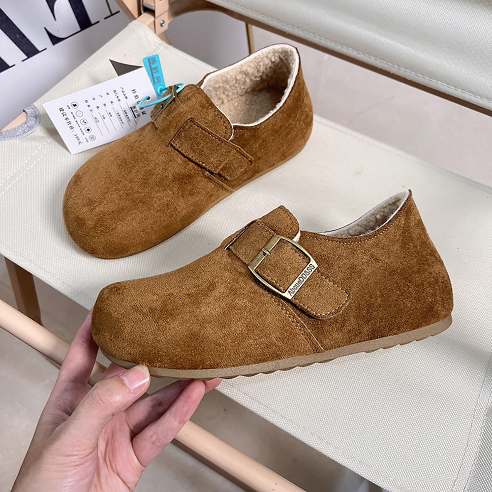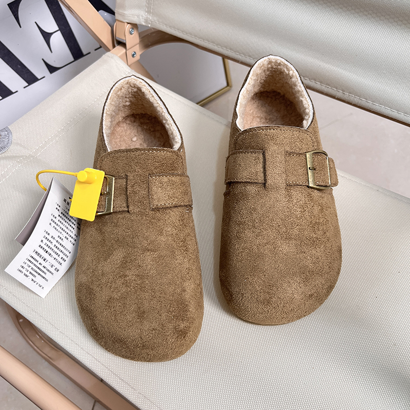 D111305冬季女士加绒加厚懒人一脚蹬休闲勃肯鞋棉鞋