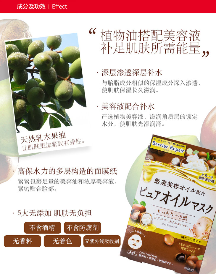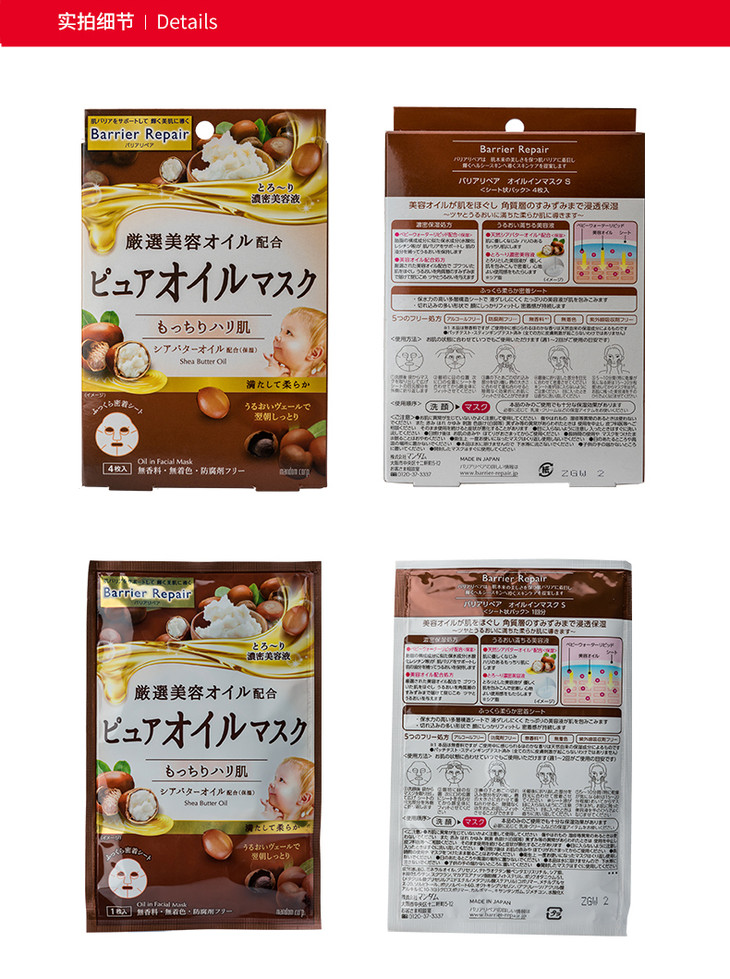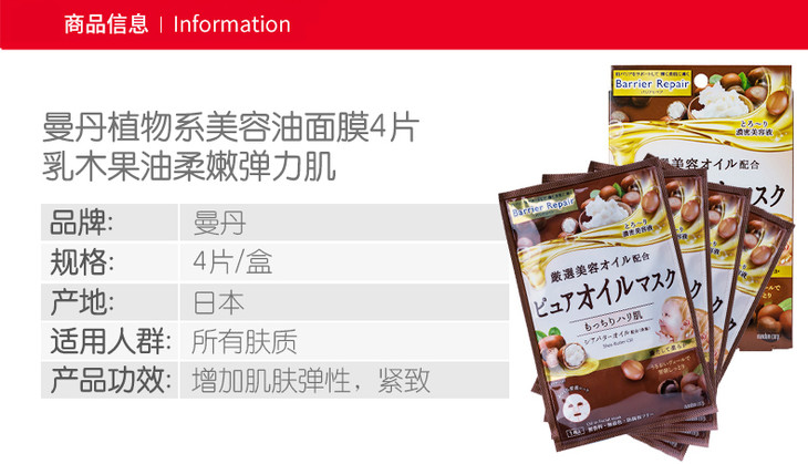 【乳木果油】日本 曼丹 植物系美容油面膜 4枚入 柔嫩弹力肌