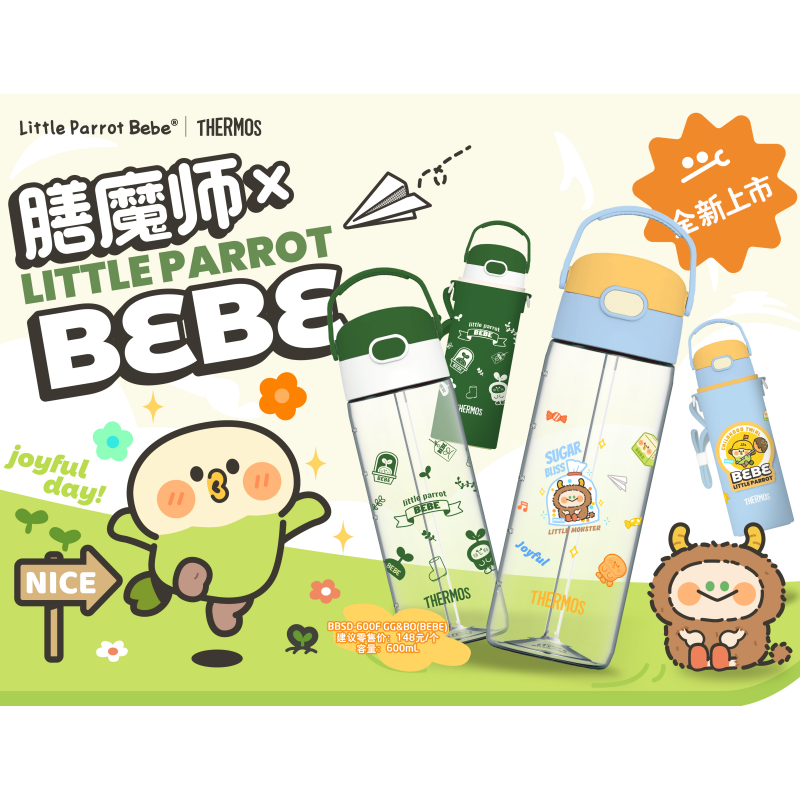 【春上新】9楼母婴生活馆 25年春夏新品膳魔师小鹦鹉Bebe联名Tritan材质吸管杯600mL含杯套 吊牌价:148元 活动价:108元
