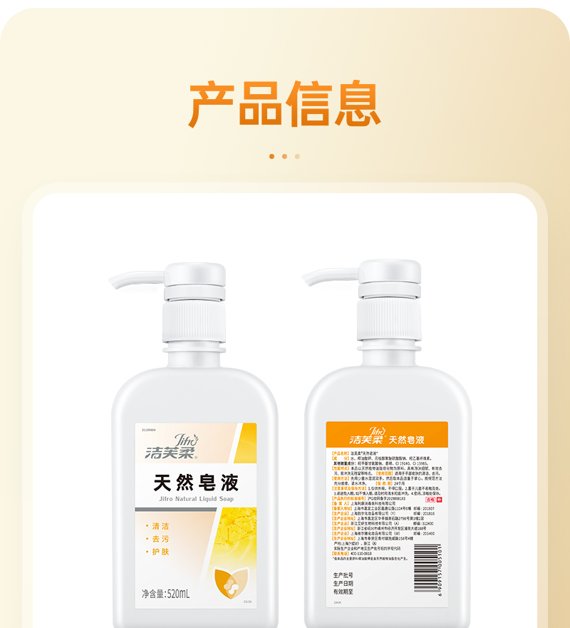 洁芙柔皂液洗手液医护级儿童家用天然植物液体香皂肥皂水去污无磷*24瓶整箱含税票证件全