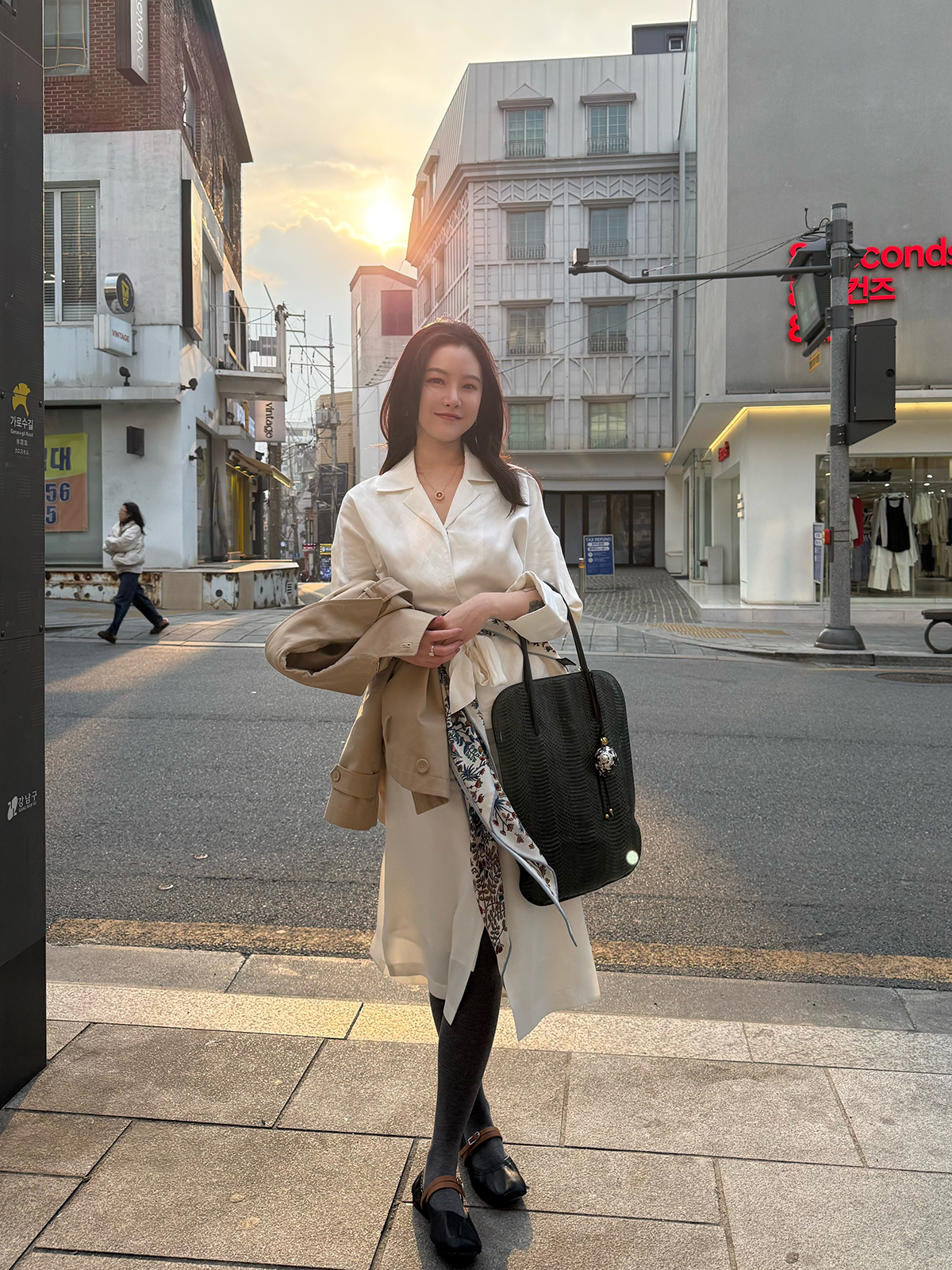 DUO智仙生 黑标 煎盐叠雪 白色粗花呢外套和背带连衣裙