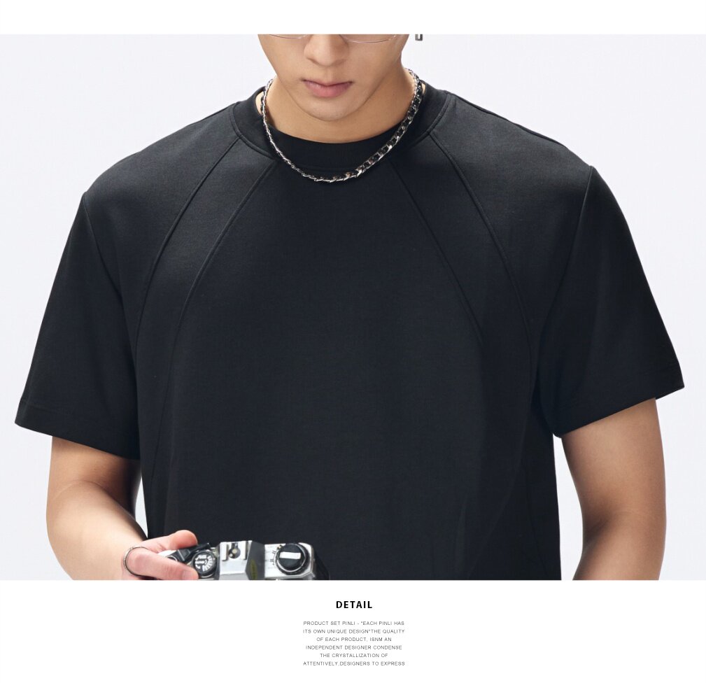 PINLI品立2026夏季新款男士纯色百搭圆领落肩袖短袖T恤上衣体恤潮GD262111041