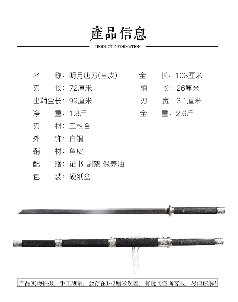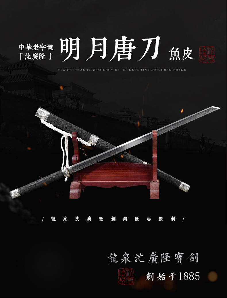 明月唐刀 鱼皮款 唐横刀剑 龙泉沈广隆一体刀剑传统刀剑 未开刃