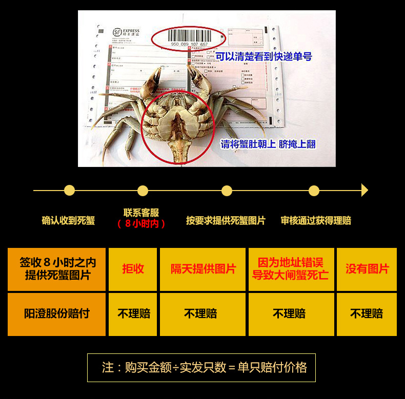 大闸蟹每工作日10:00前的订单今天捞蟹明天发出;10:00以后的订单明天捞蟹后天发货;节假日延顺。