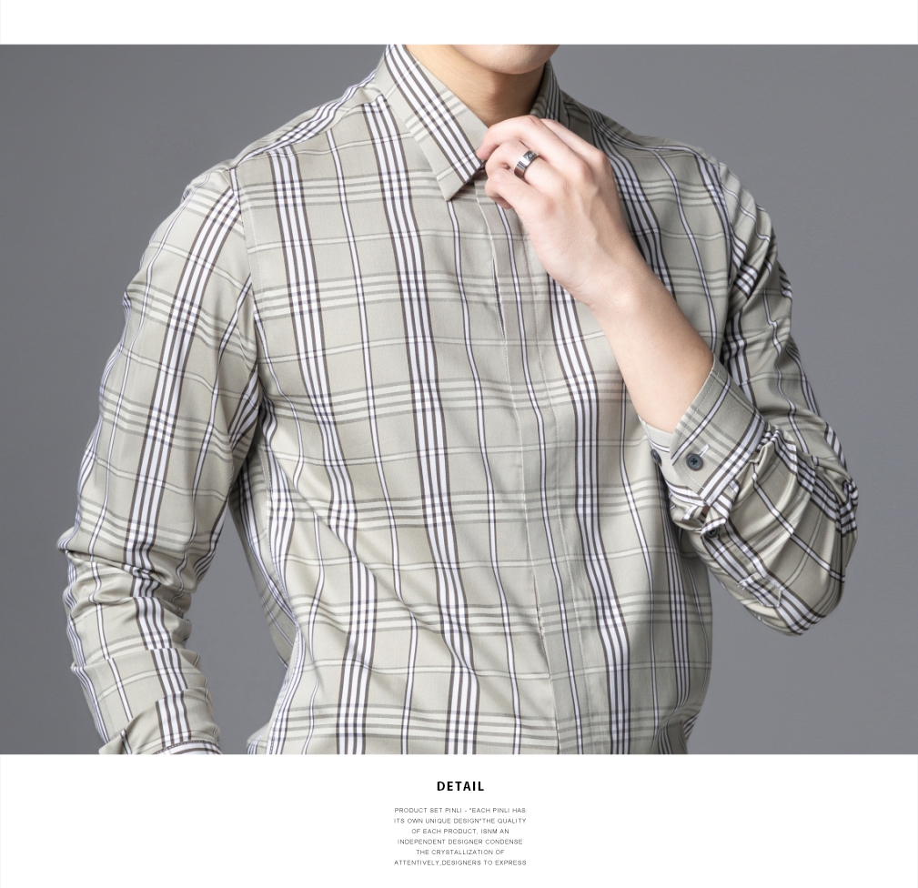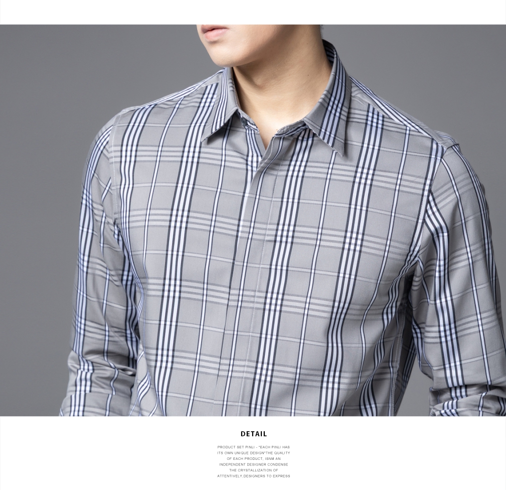 PINLI品立2025秋季新款男士修身商务格子长袖衬衫打底休闲衬衣潮GD253113055